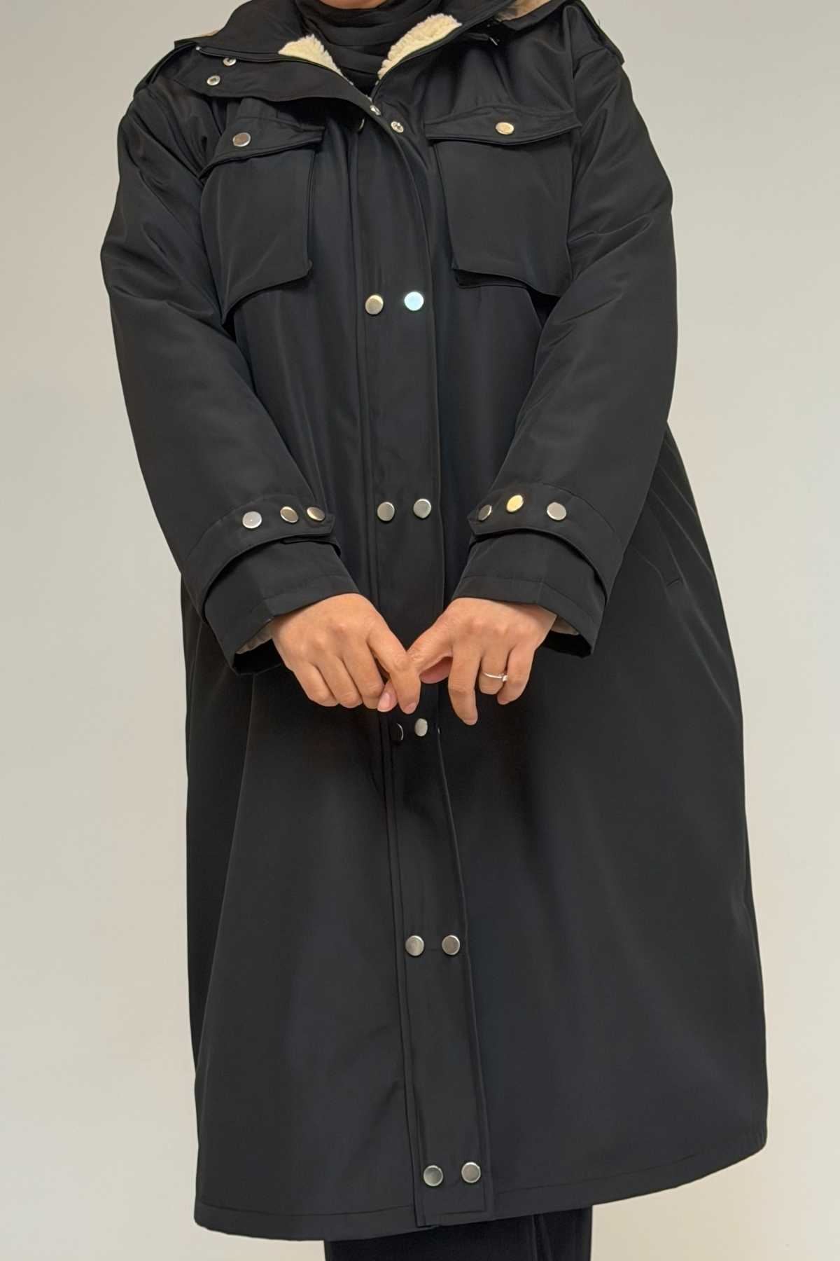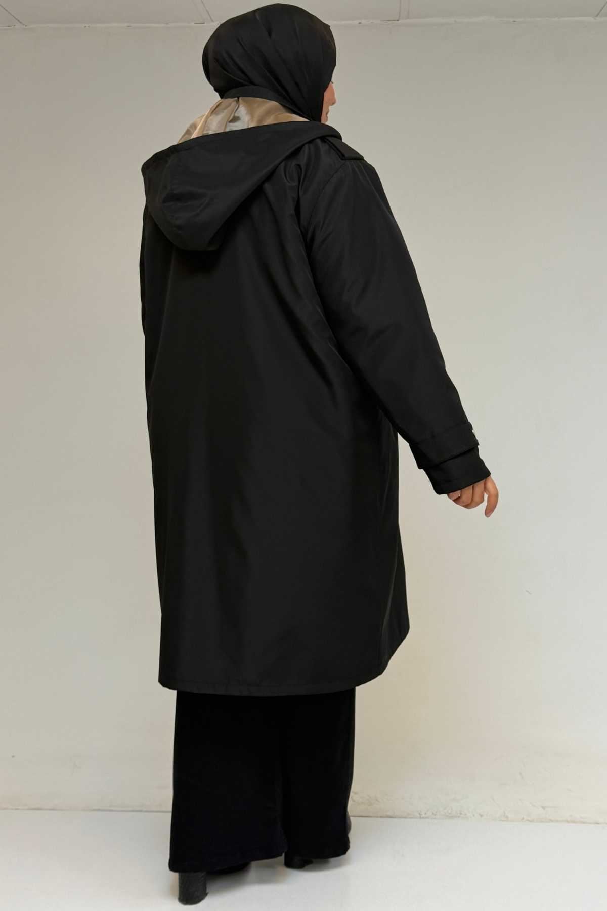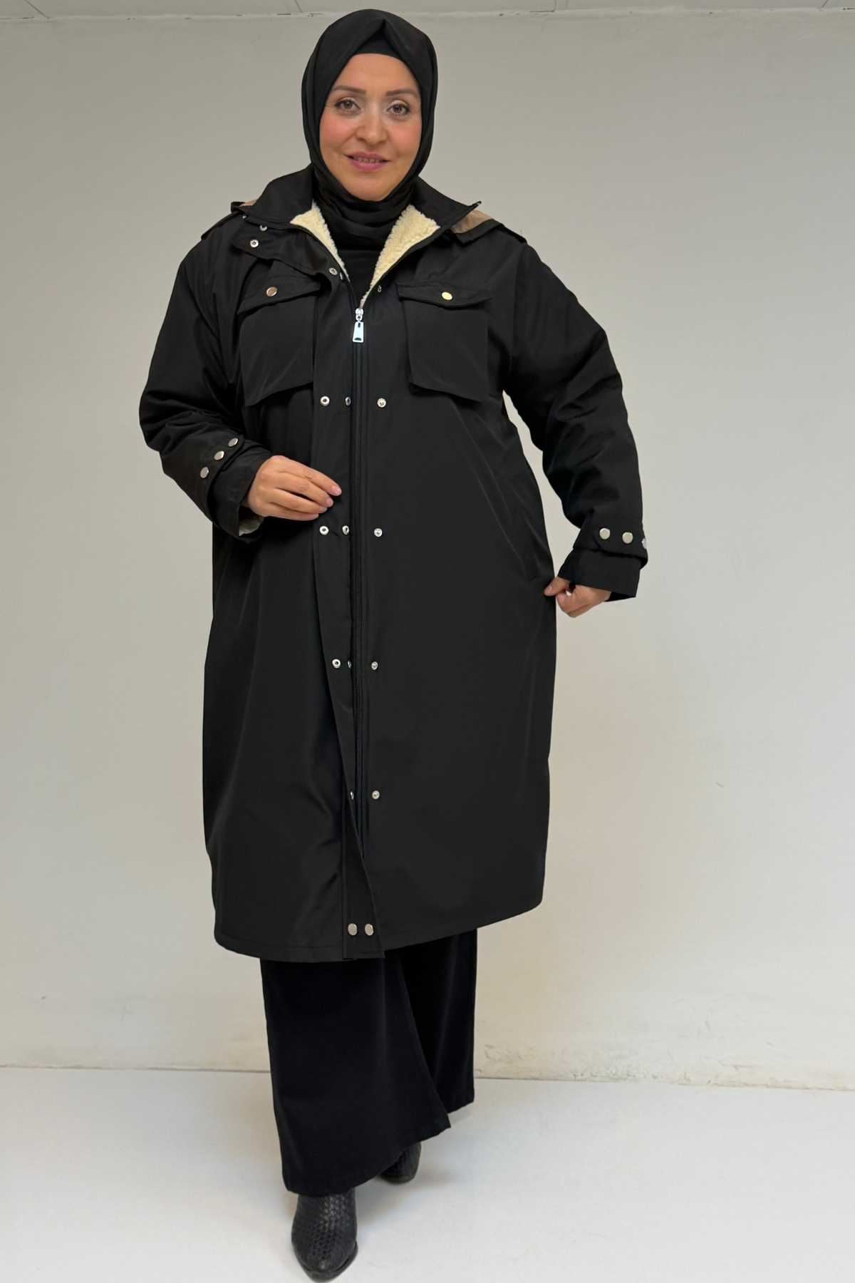 43061 Büyük Beden Kapaklı Cepli Fermuarlı Bondit Kap - Siyah