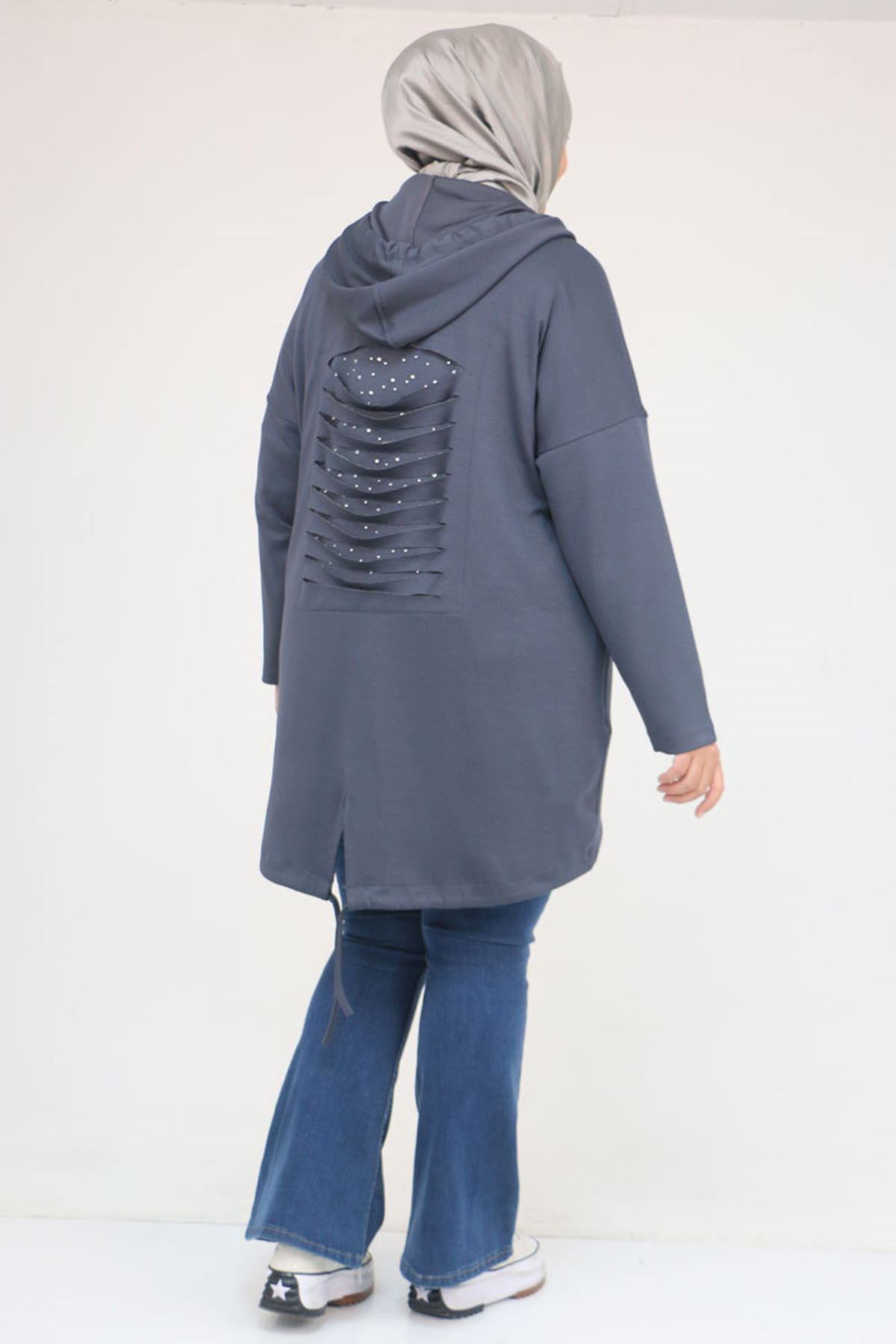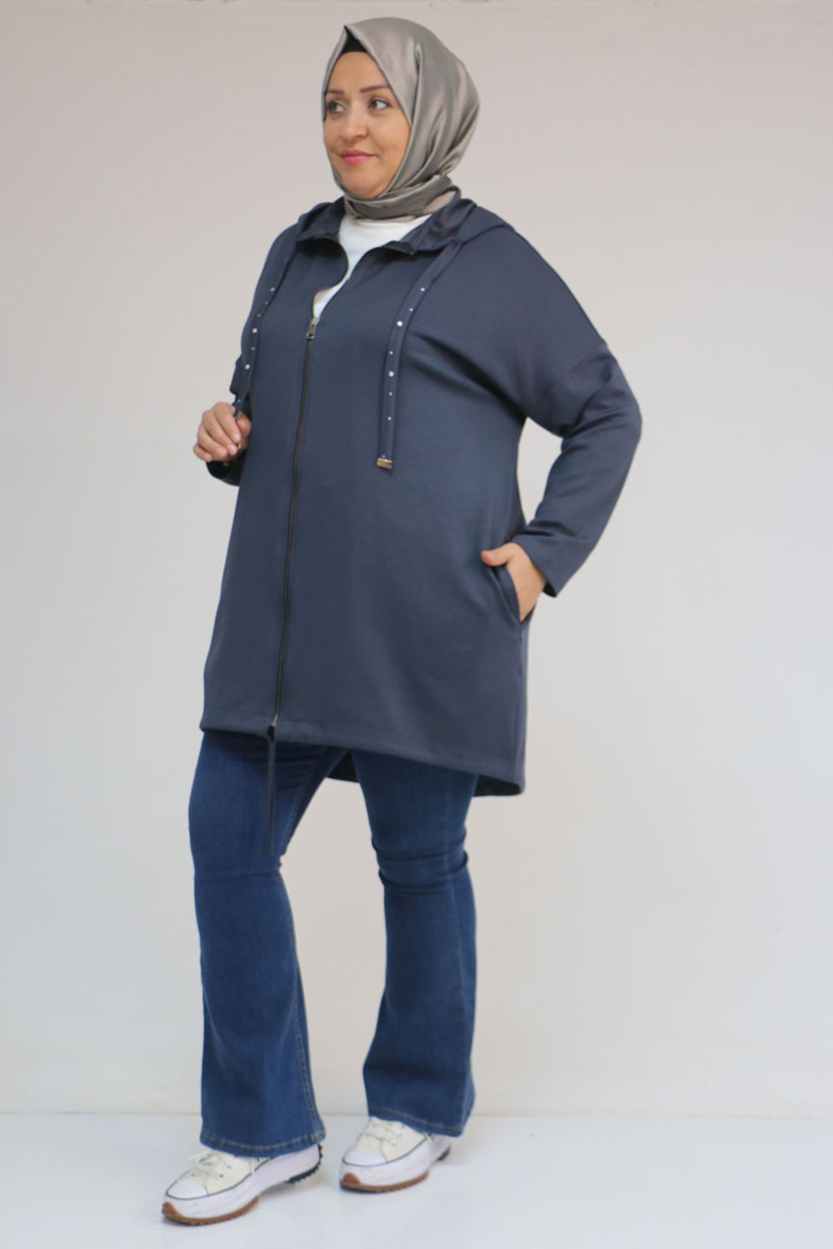 43068 Büyük Beden Eteği Oval Kesim Modal Ceket - Antrasit