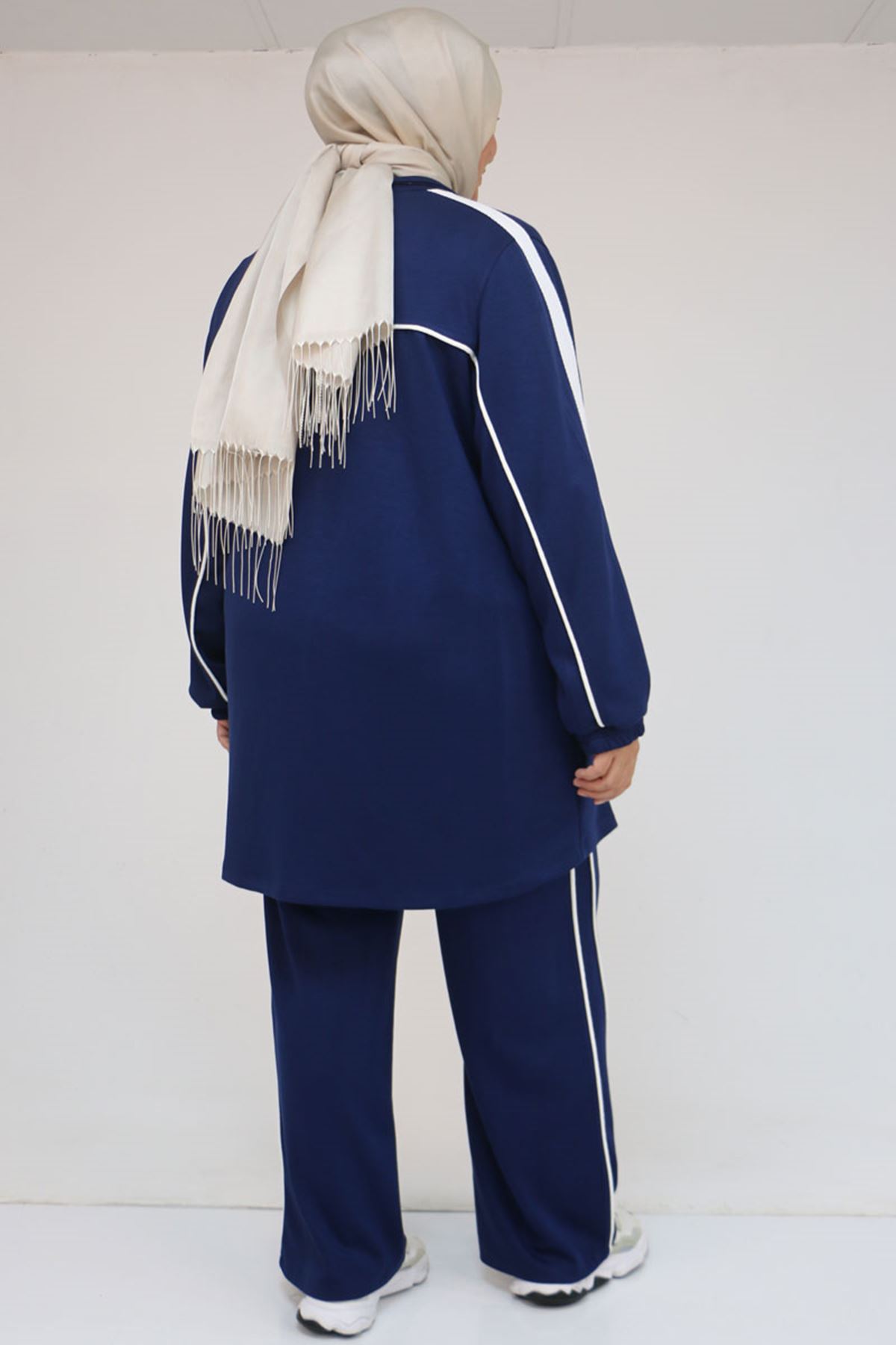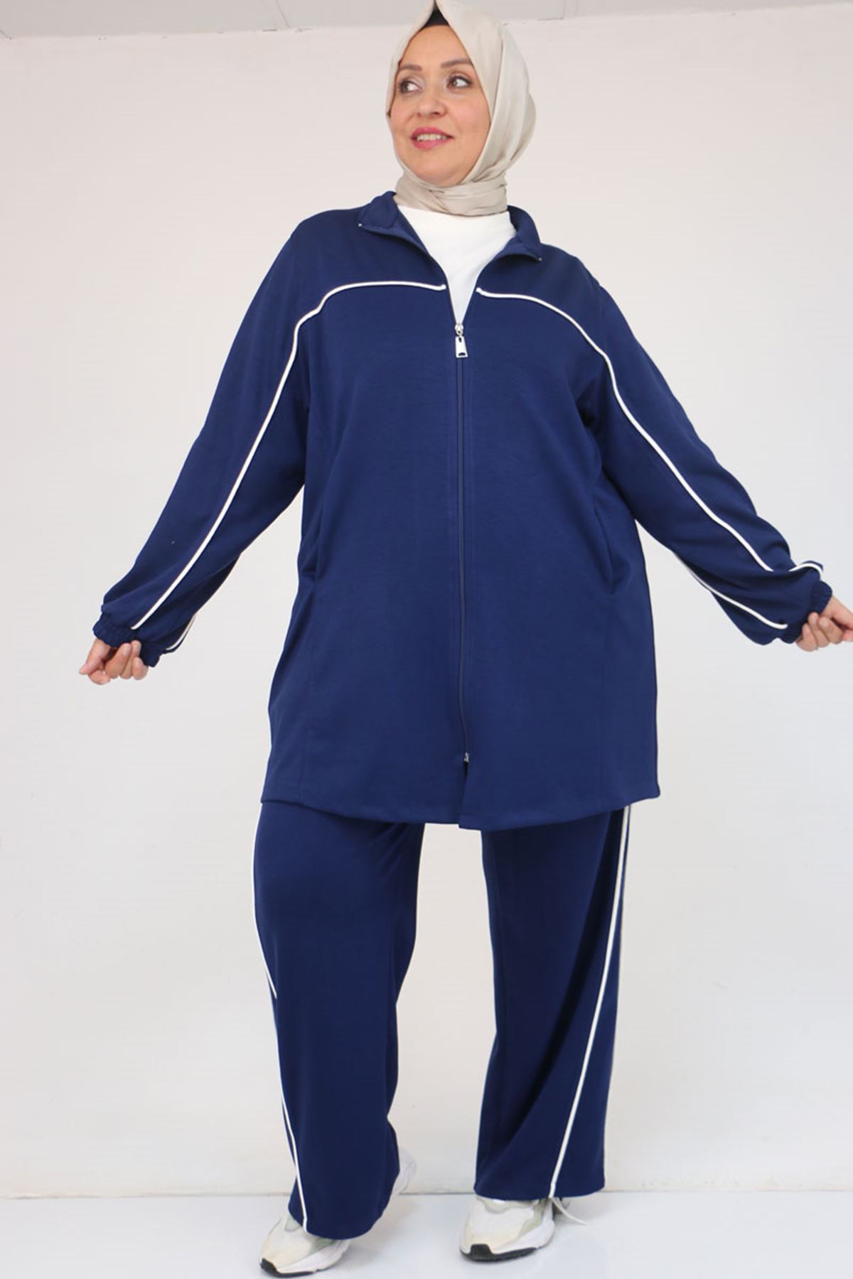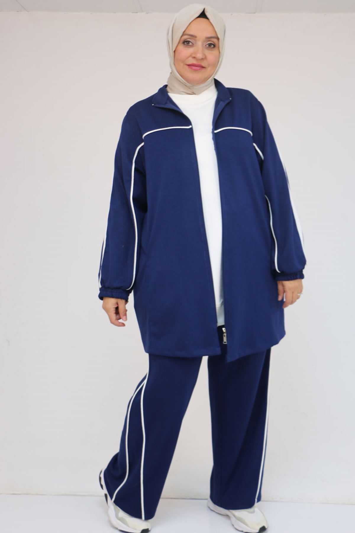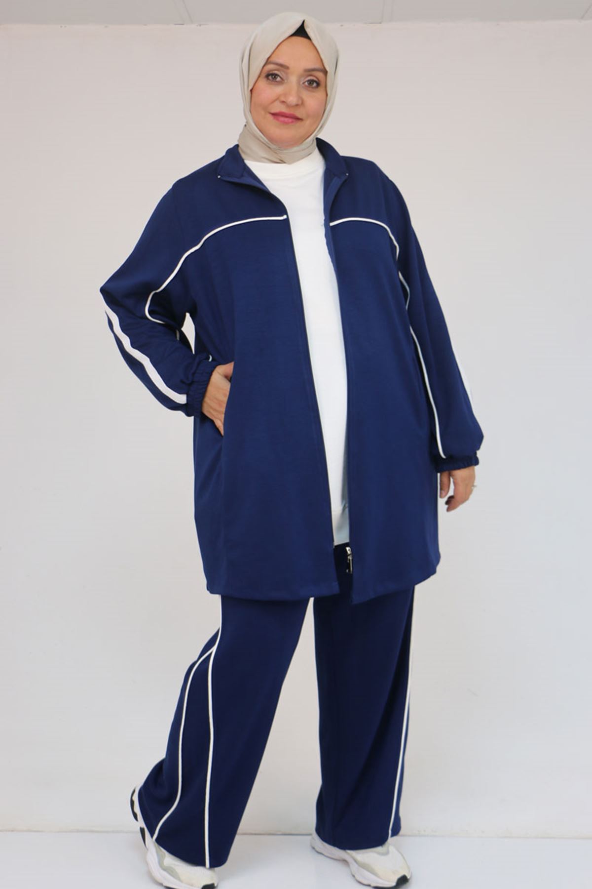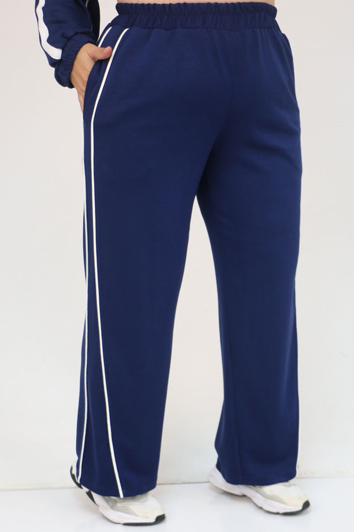 47082 Büyük Beden Kıstırma Biyeli Pantolonlu Modal Takım - İndigo