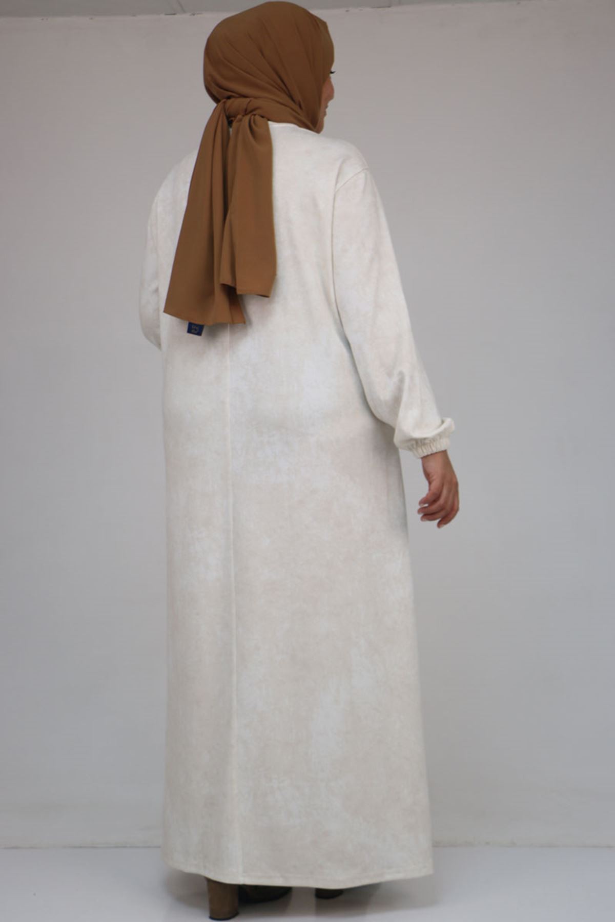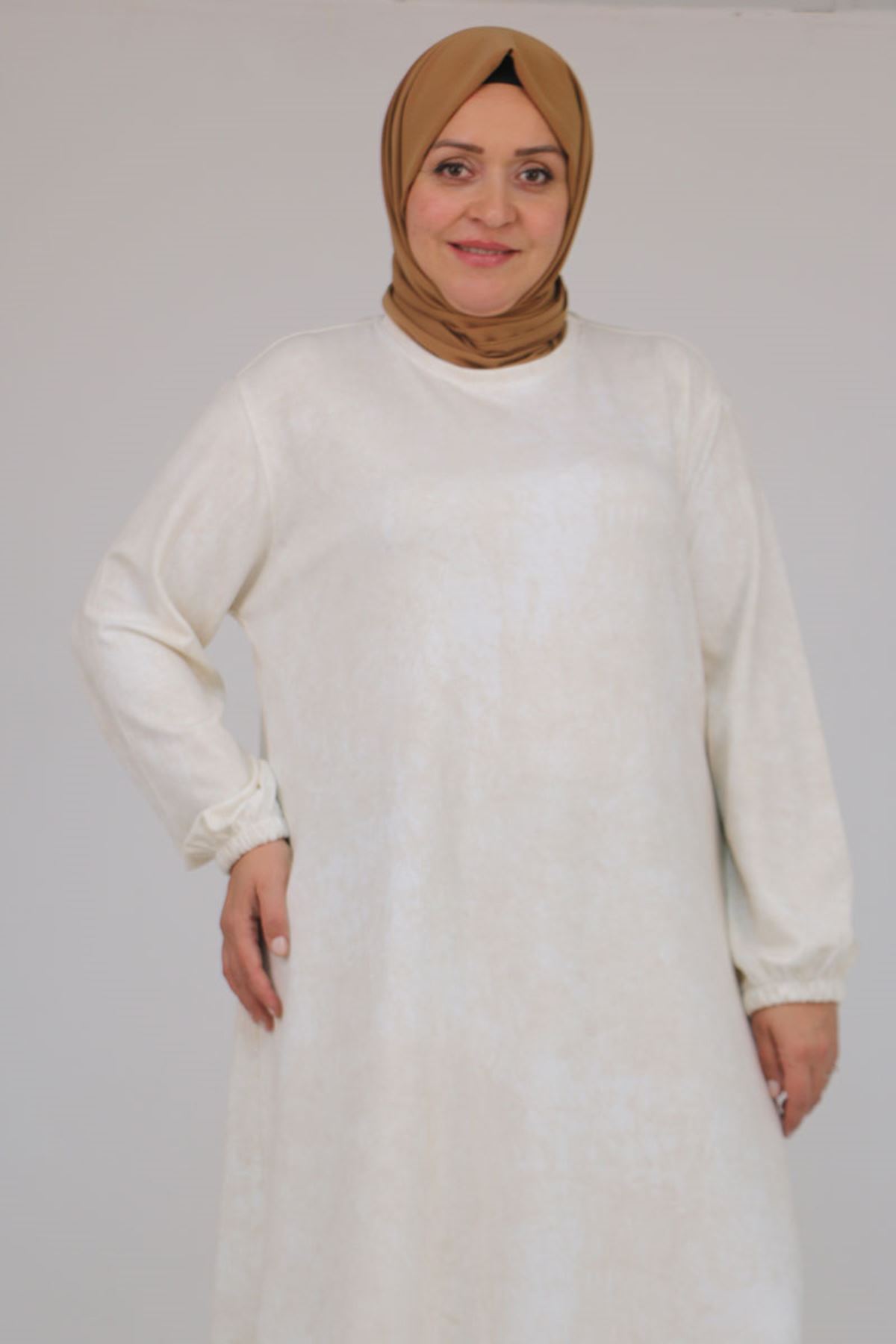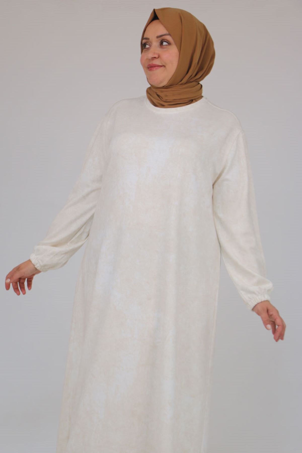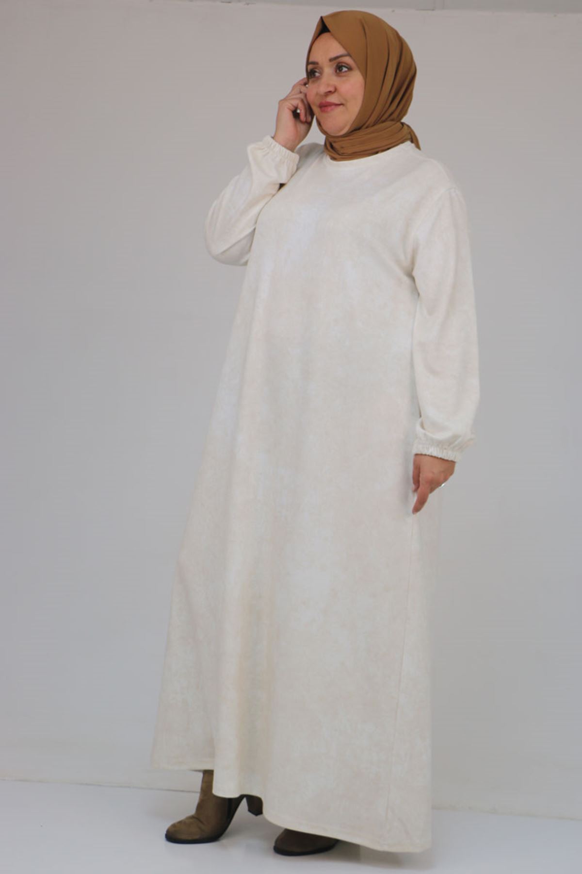 52030 Büyük Beden Kolu Lastikli Modal Elbise - Batik Ekru