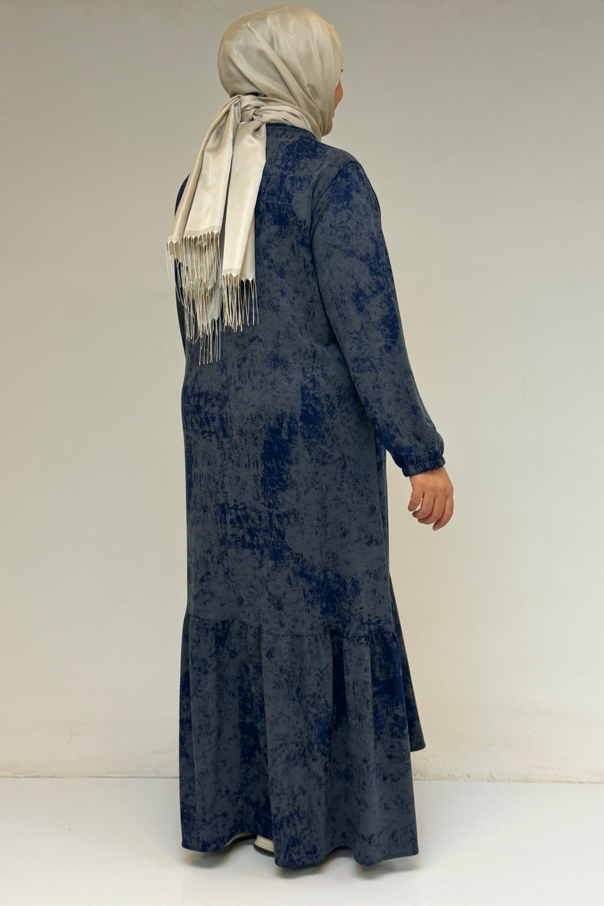 52032 Büyük Beden Eteği Fırfırlı Batik Modal Elbise - Batik İndigo