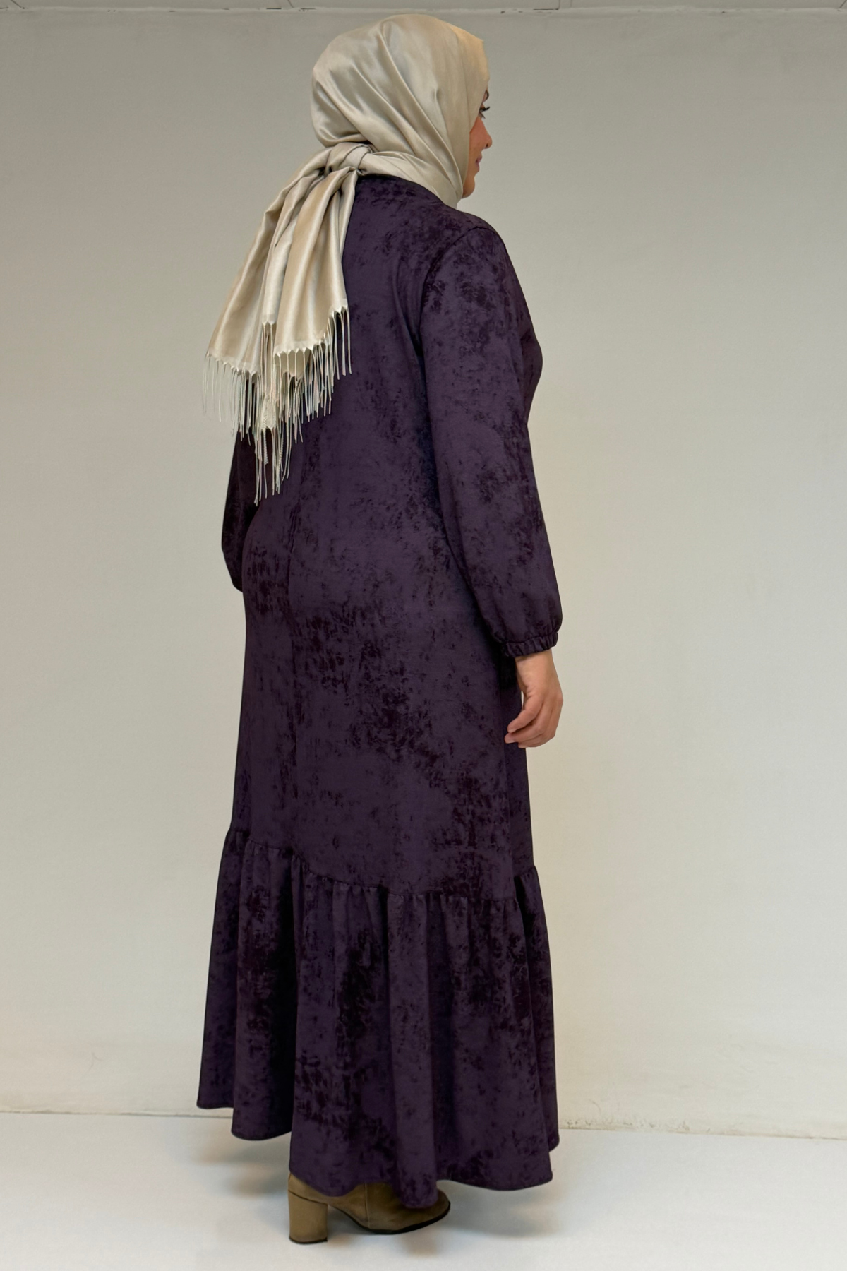 52032 Büyük Beden Eteği Fırfırlı Batik Modal Elbise - Batik Mürdüm