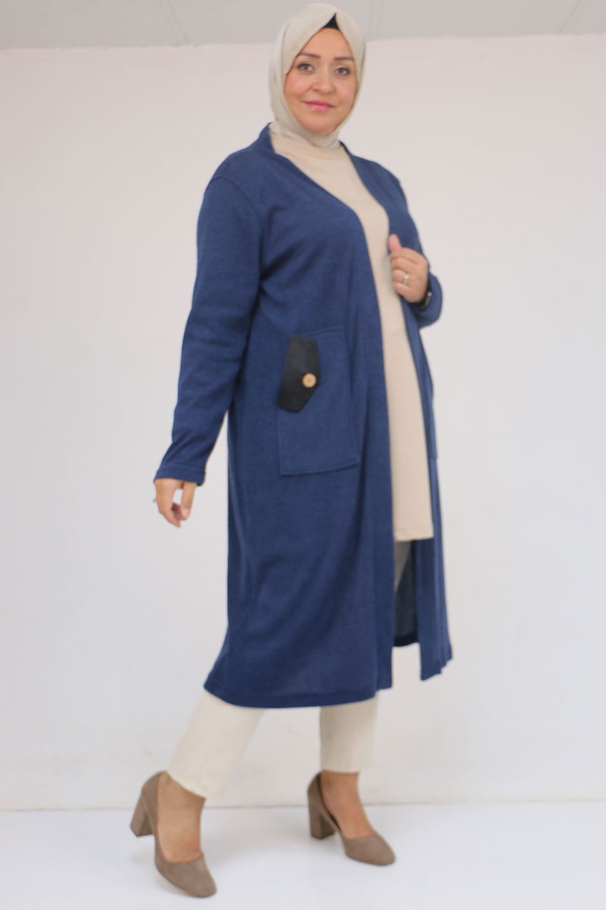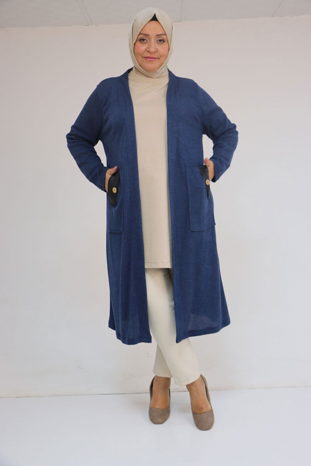 53035 Büyük Beden Cep Detaylı Mir Ceket - İndigo
