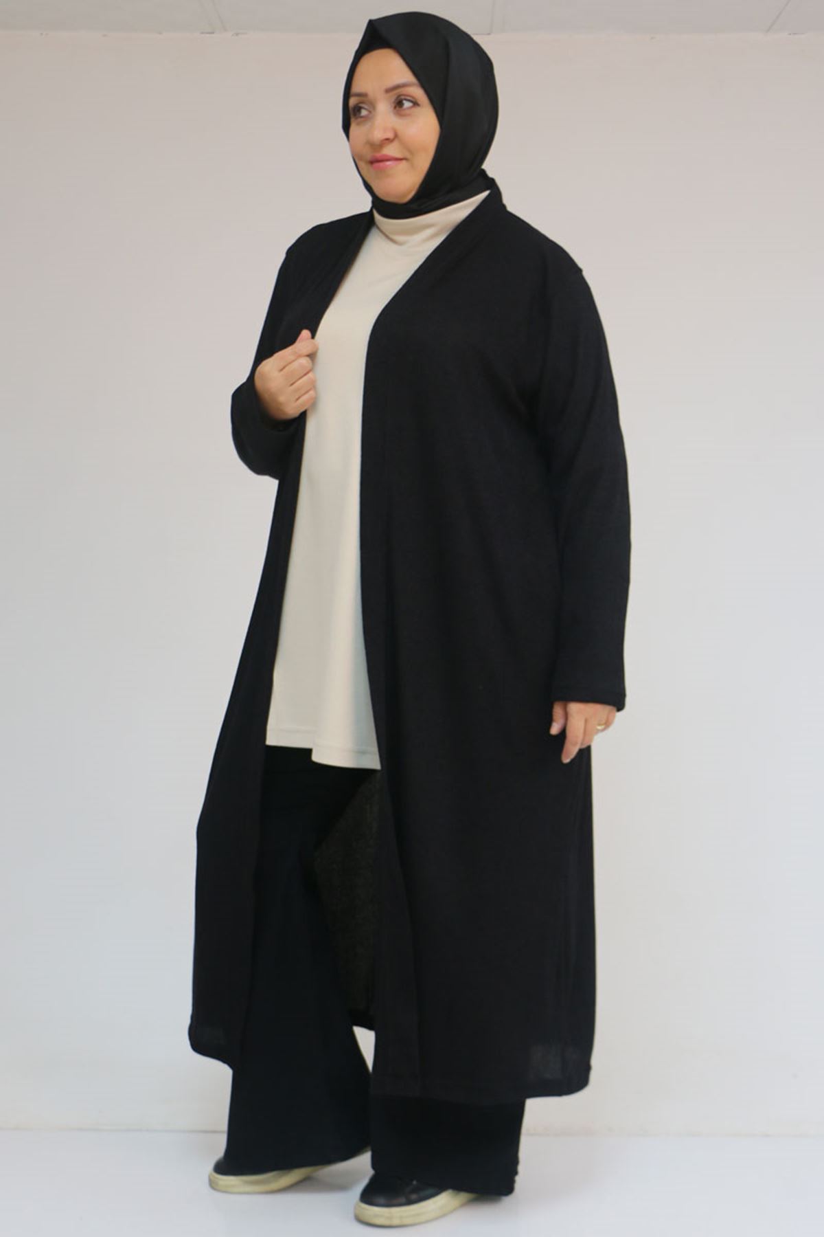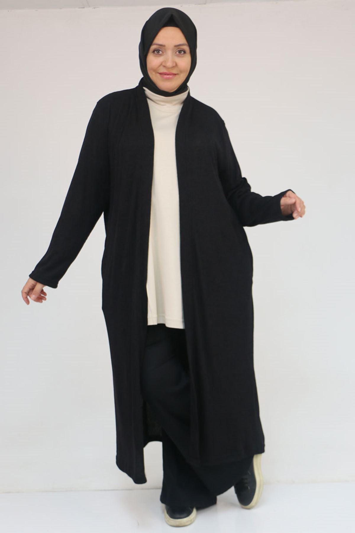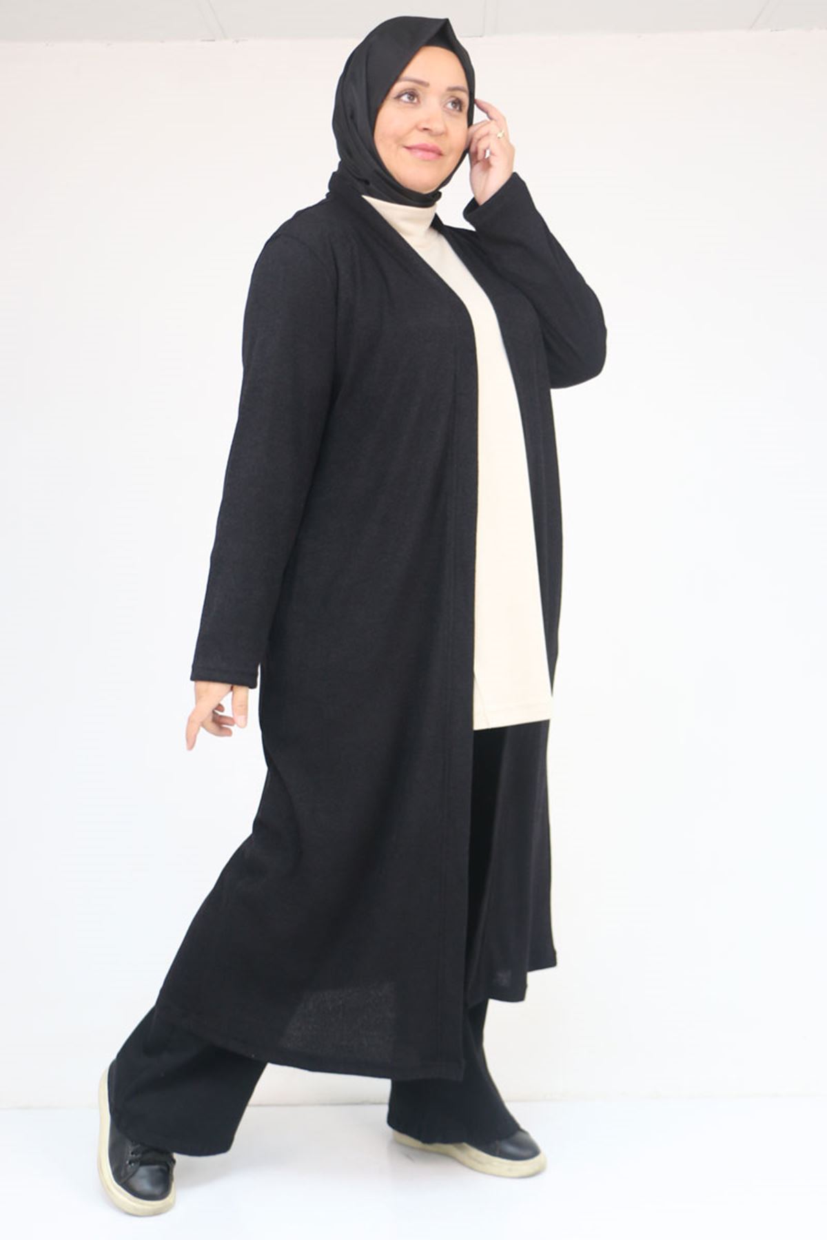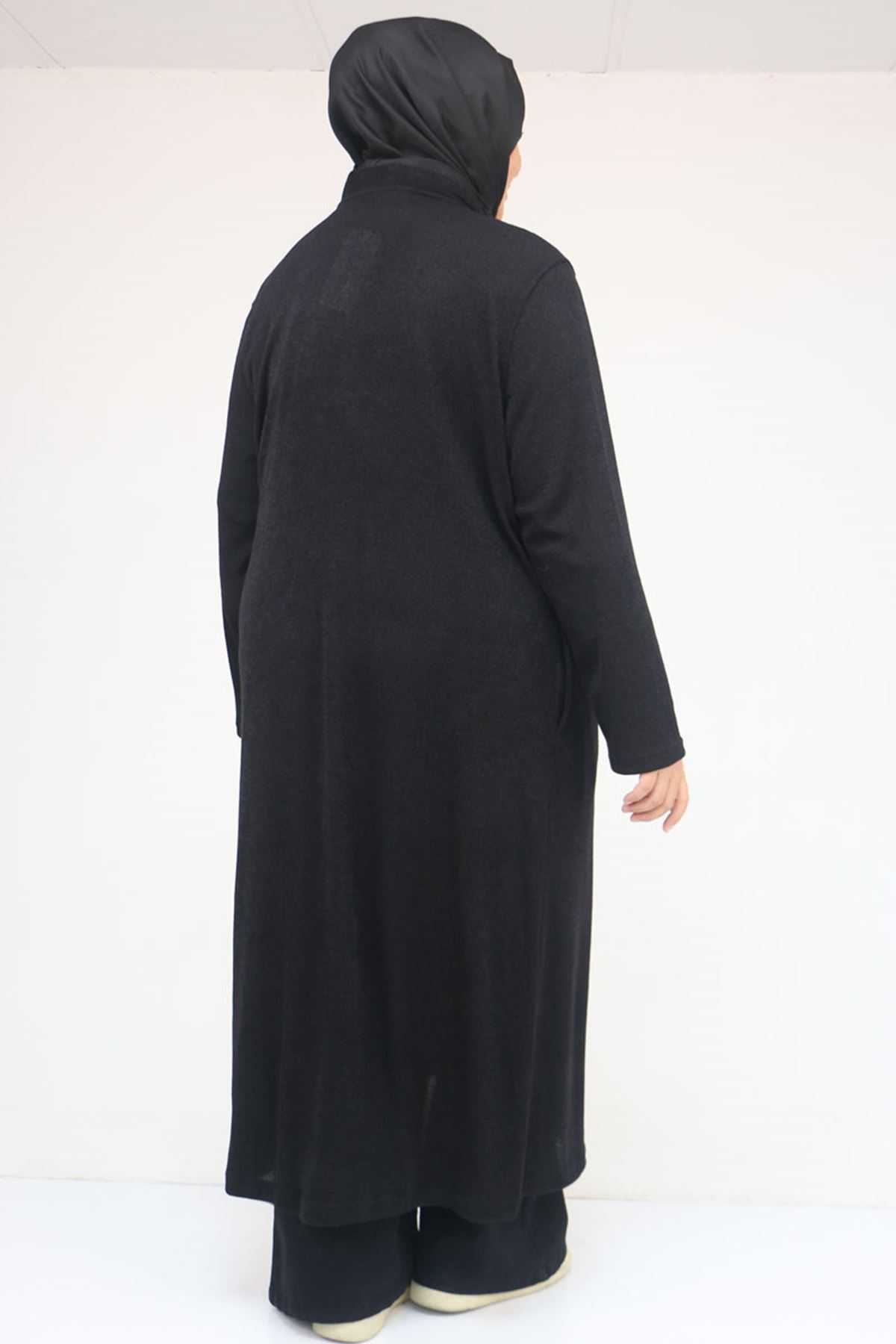 53061 Büyük Beden Cepli Uzun Mir Ceket - Siyah