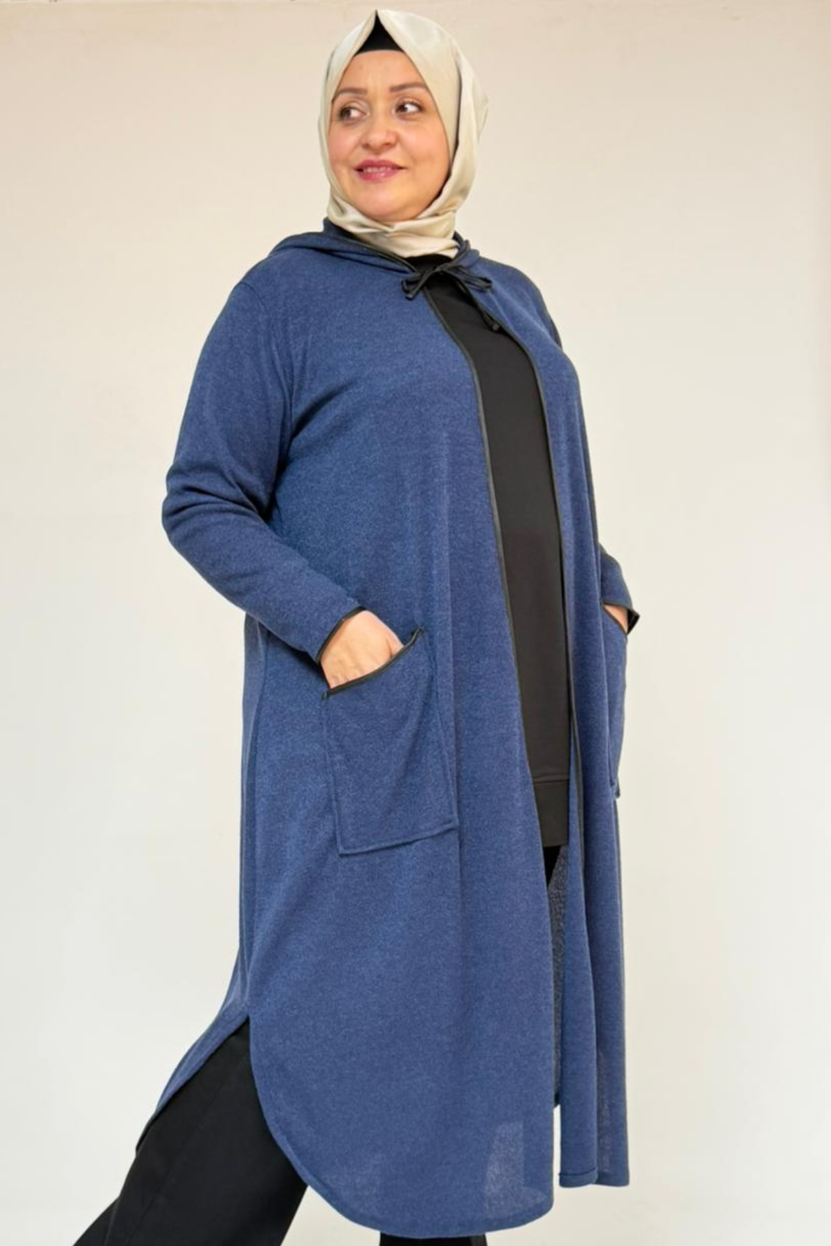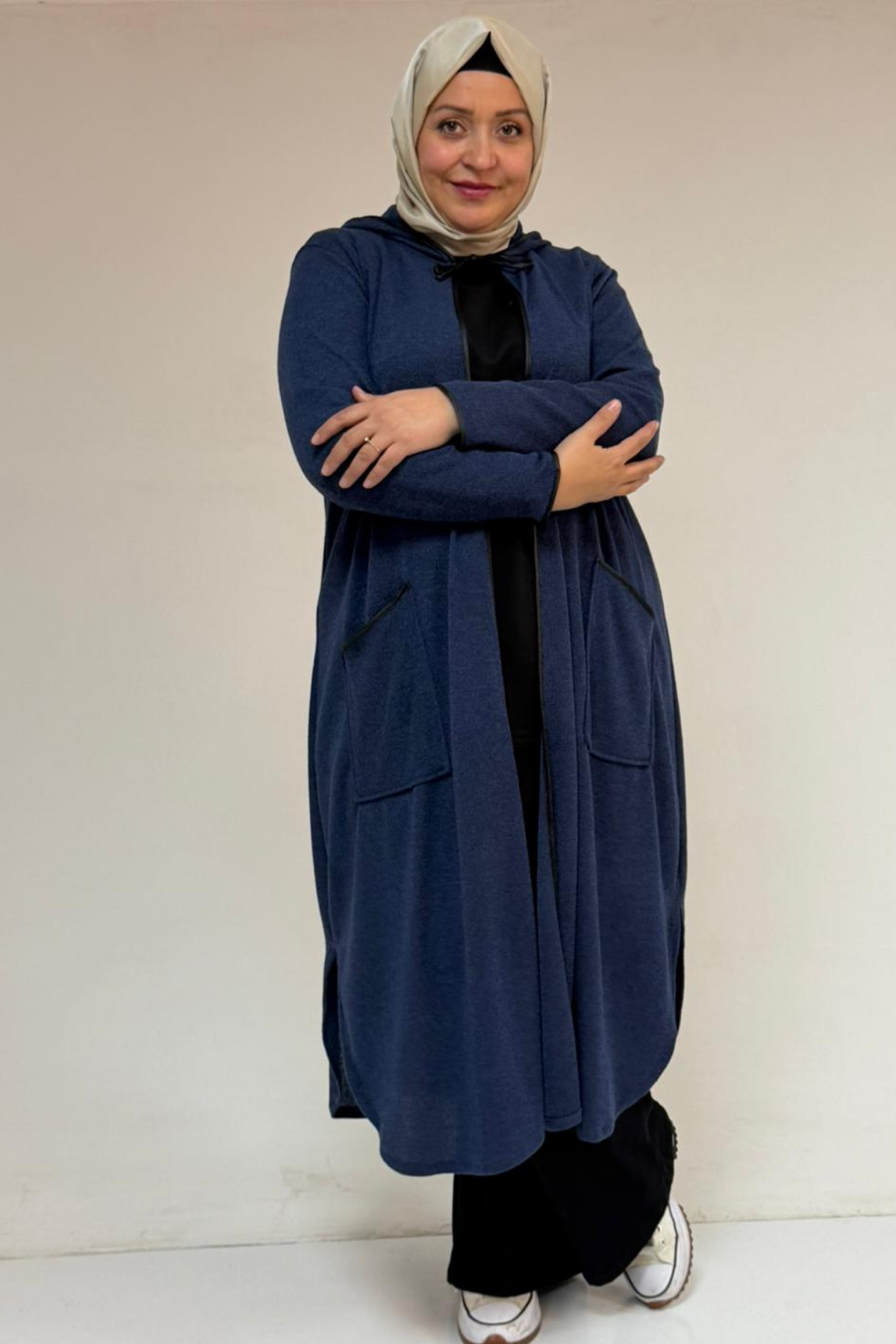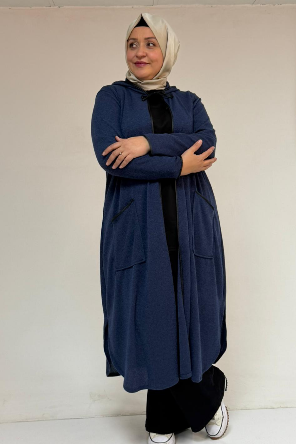 53063 Büyük Beden Biyeli Cepli Mir Ceket - İndigo
