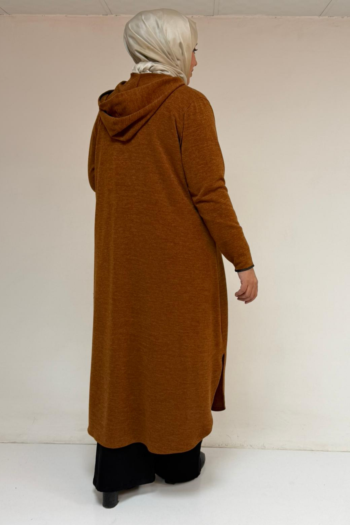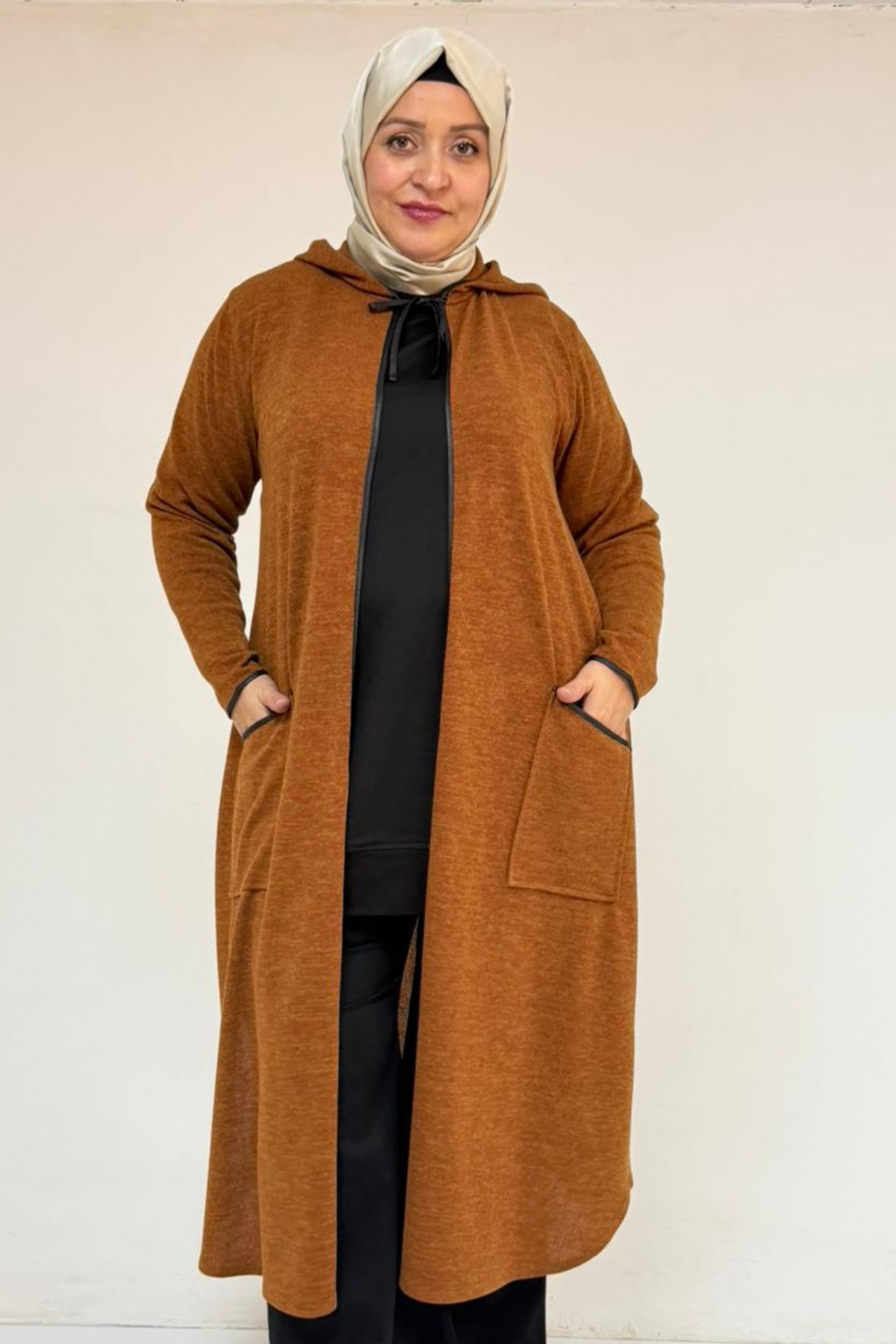 53063 Büyük Beden Biyeli Cepli Mir Ceket - Taba