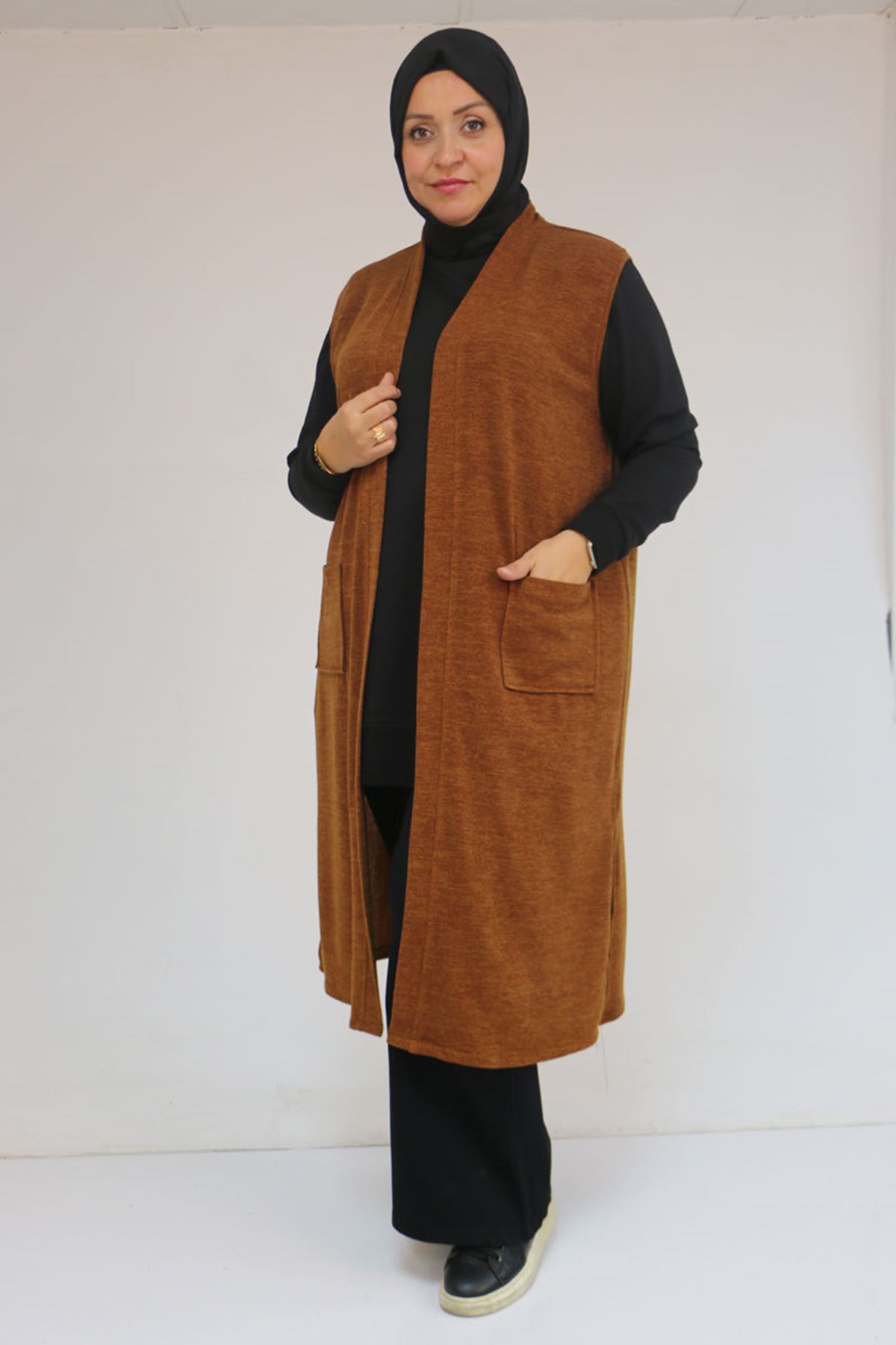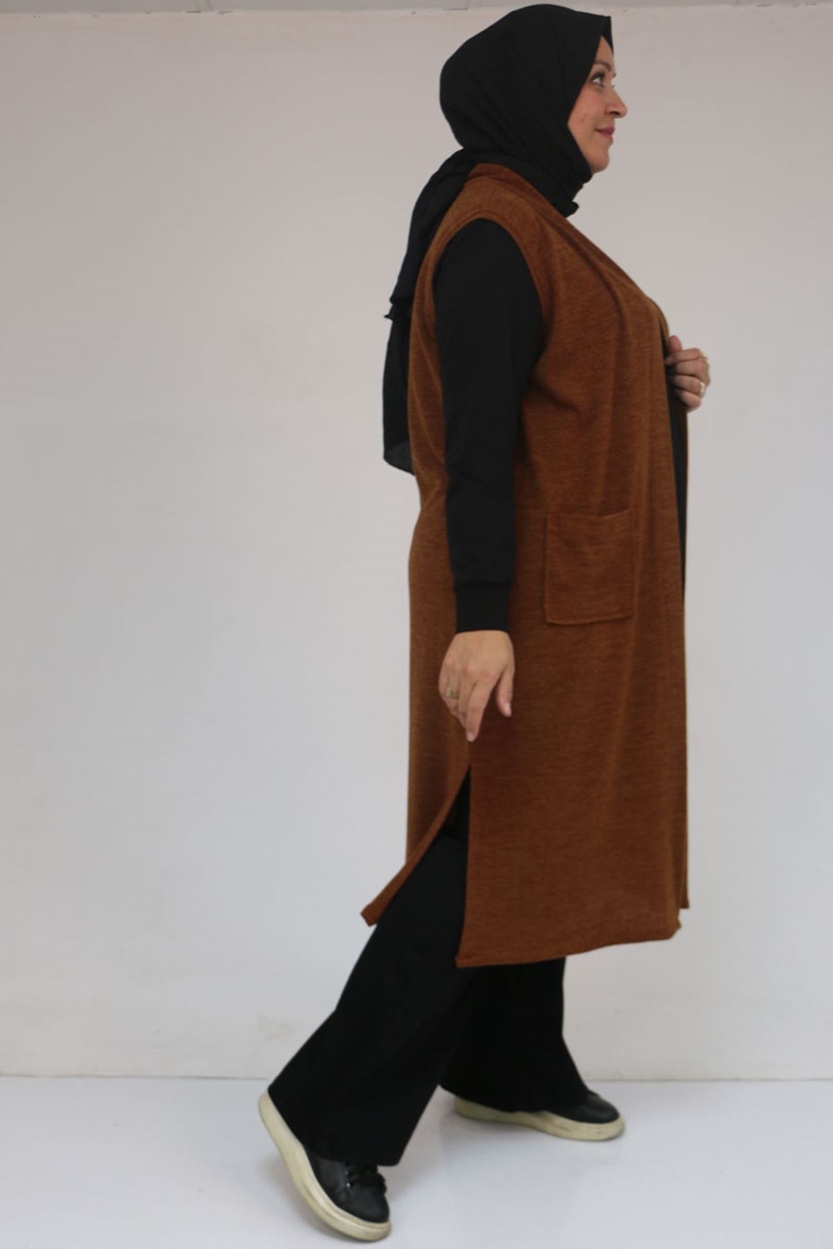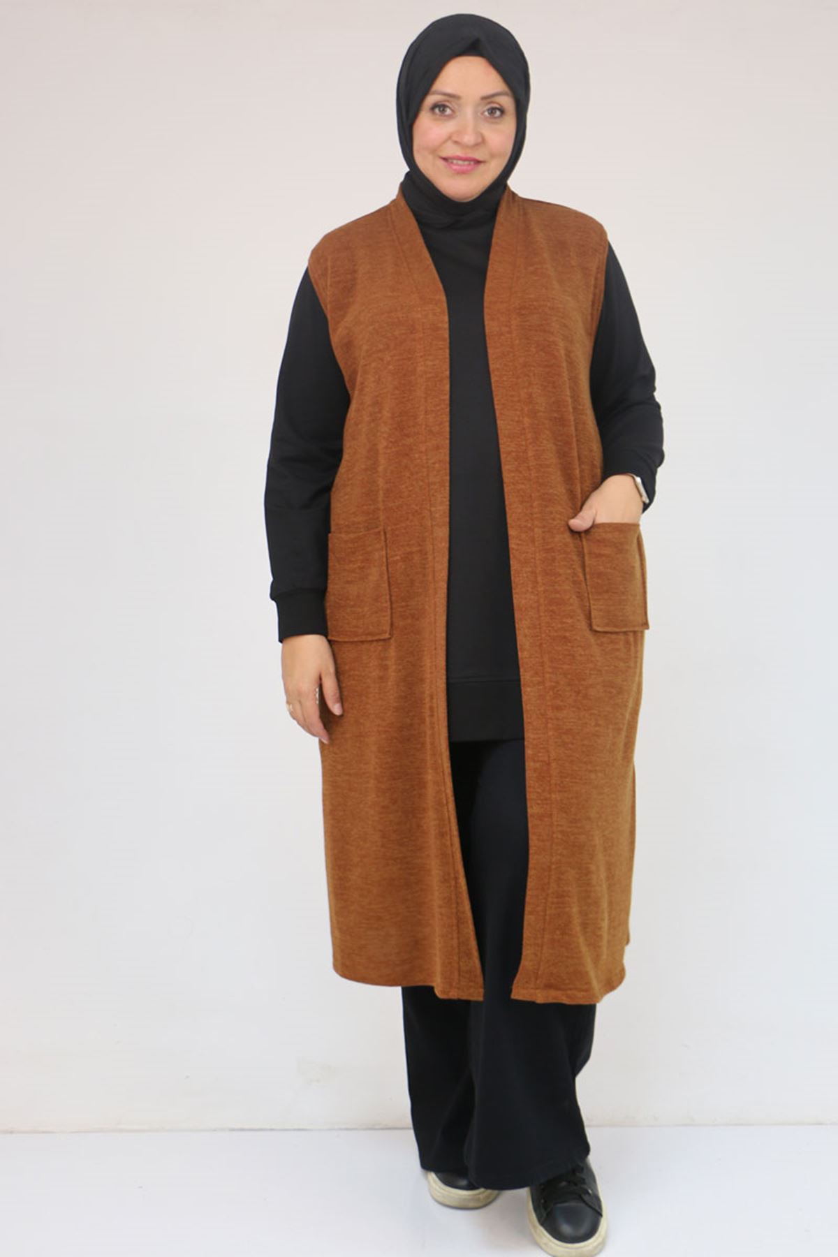 54012 Büyük Beden Cepli Giy-Çık Mir Yelek - Taba