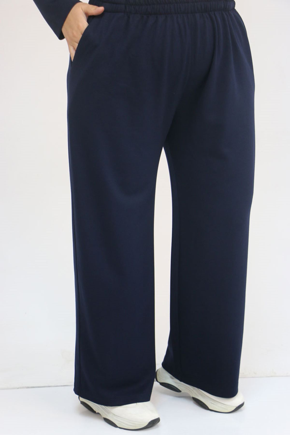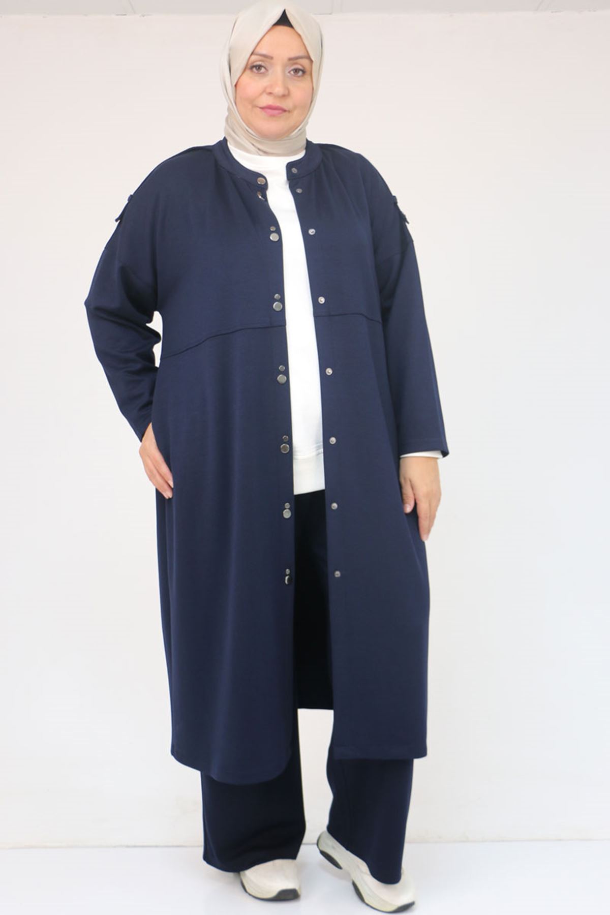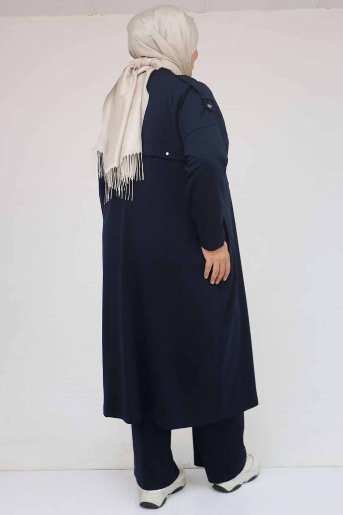 57035 Büyük Beden Omzu Apoletli Çıtçıt Detaylı Modal Takım - Lacivert