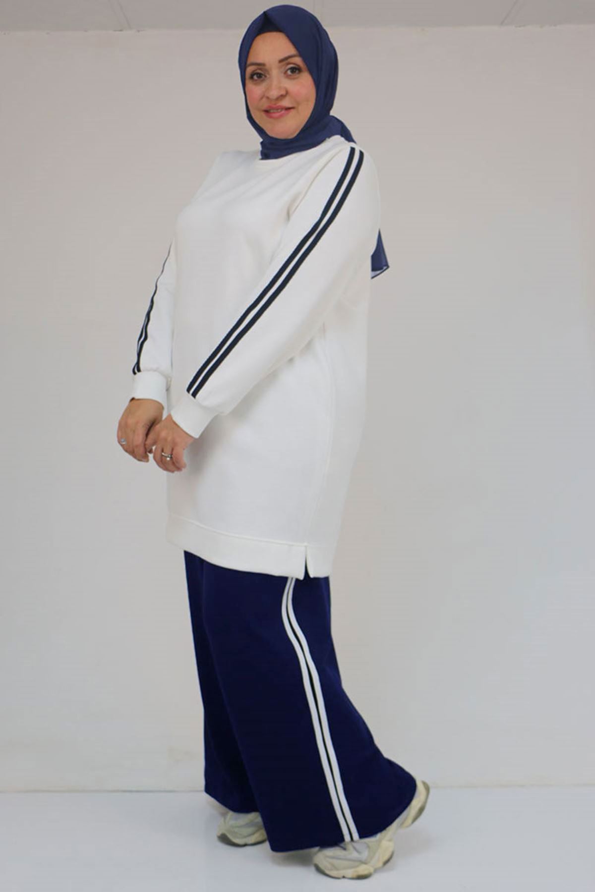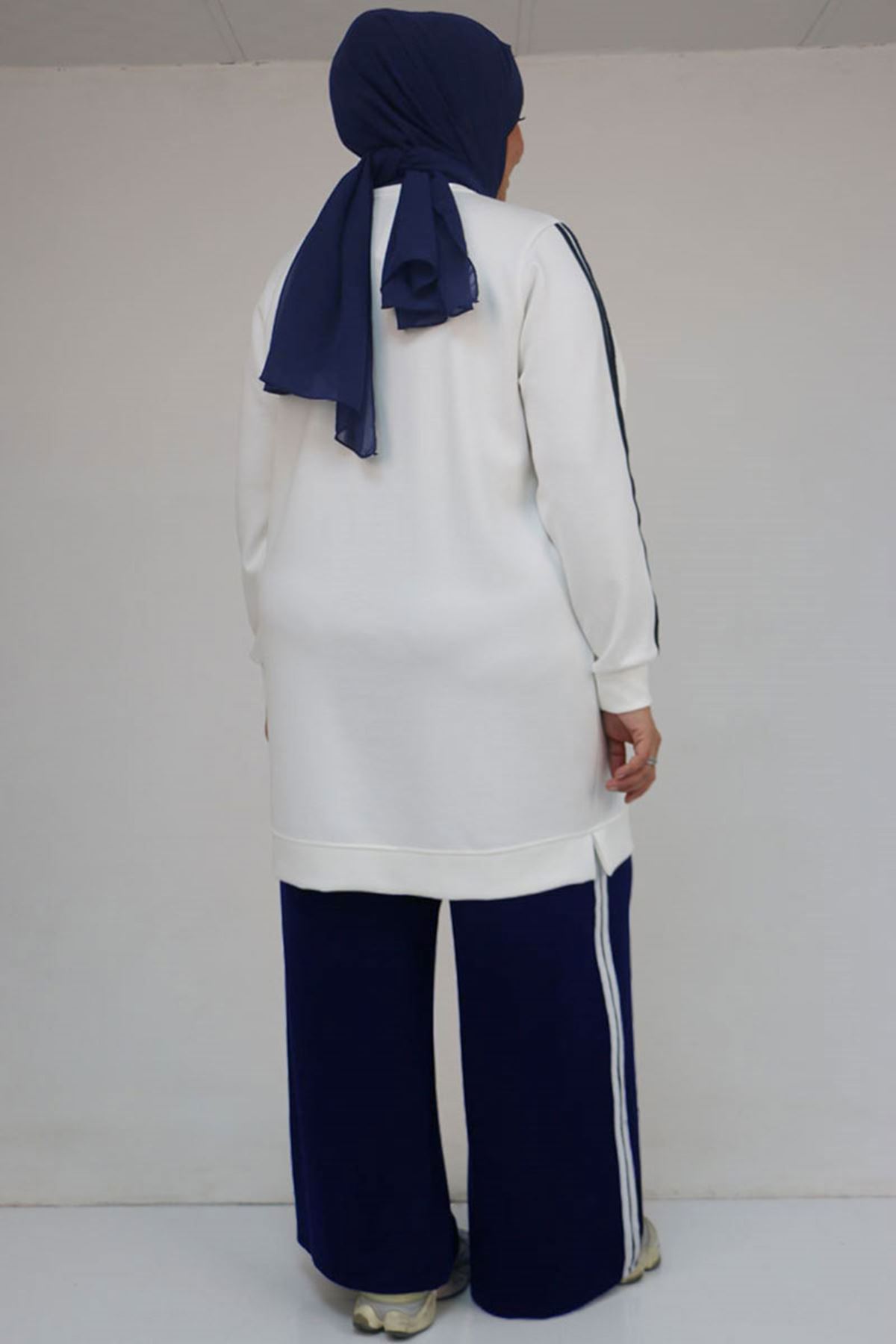 57059 Büyük Beden Alt-Üst Renk Kombinli Modal Pantolonlu Takım - Lacivert