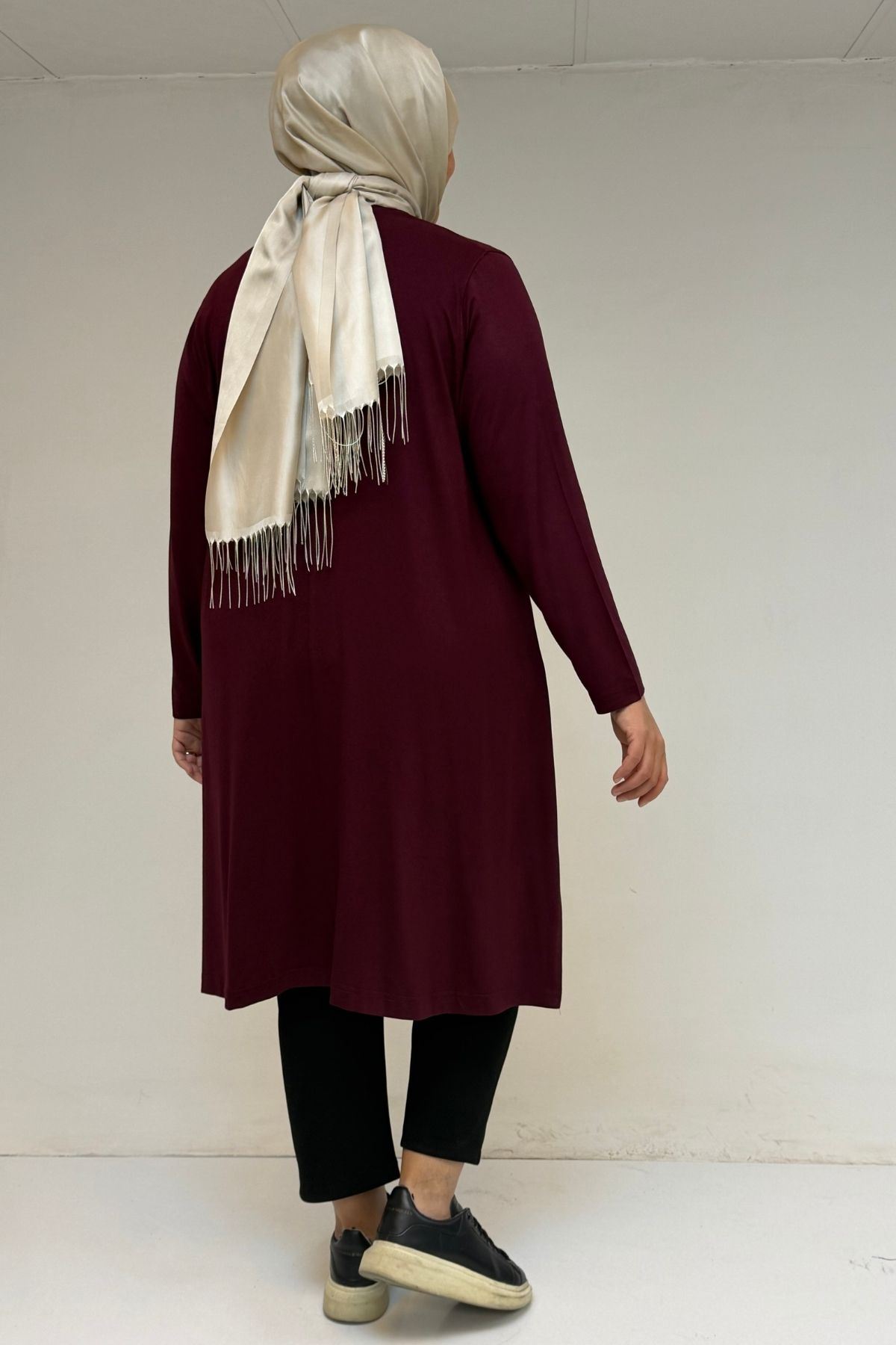 58070 Büyük Beden Asimetrik Kesim Penye Tunik - Bordo