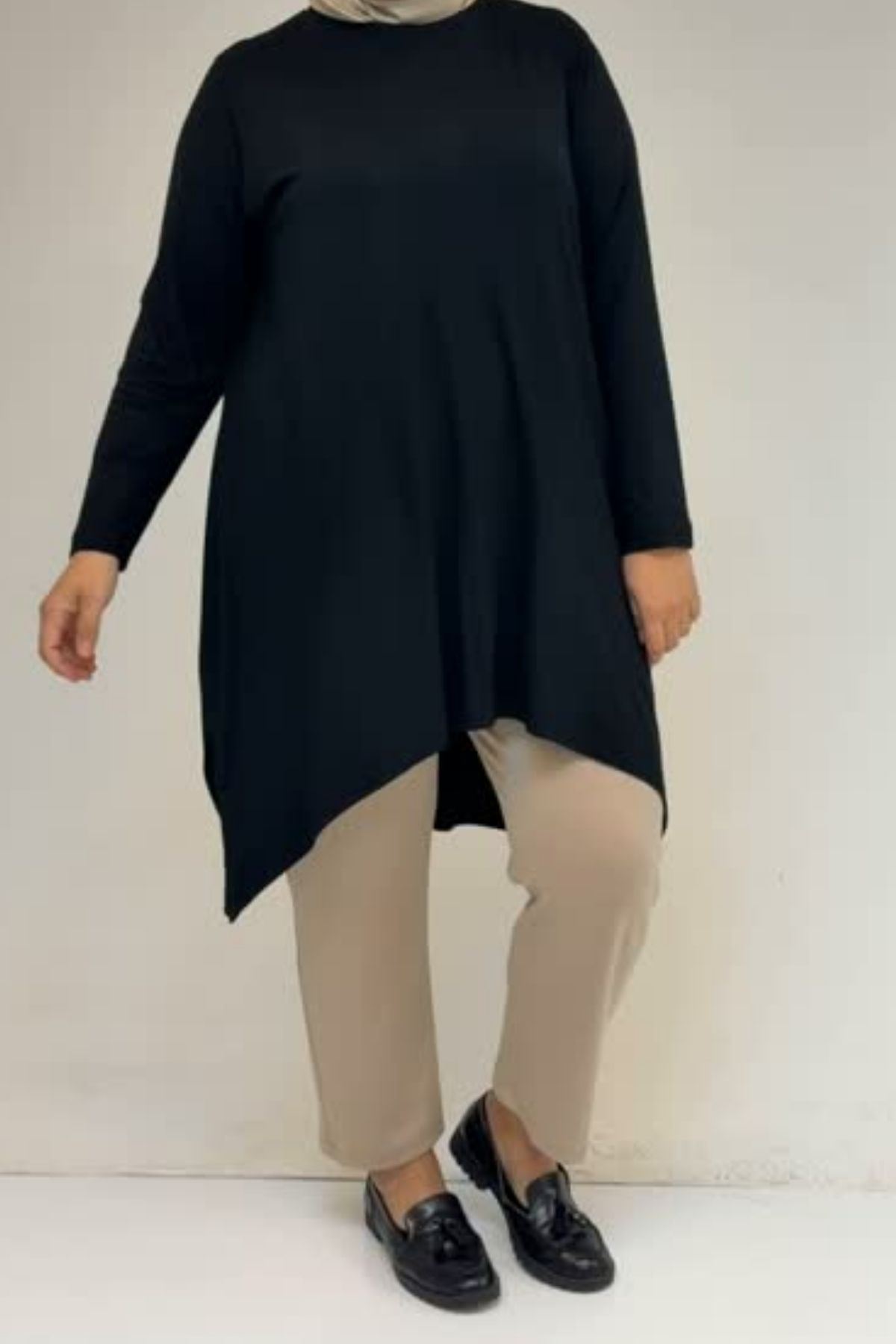 58070 Büyük Beden Asimetrik Kesim Penye Tunik - Siyah