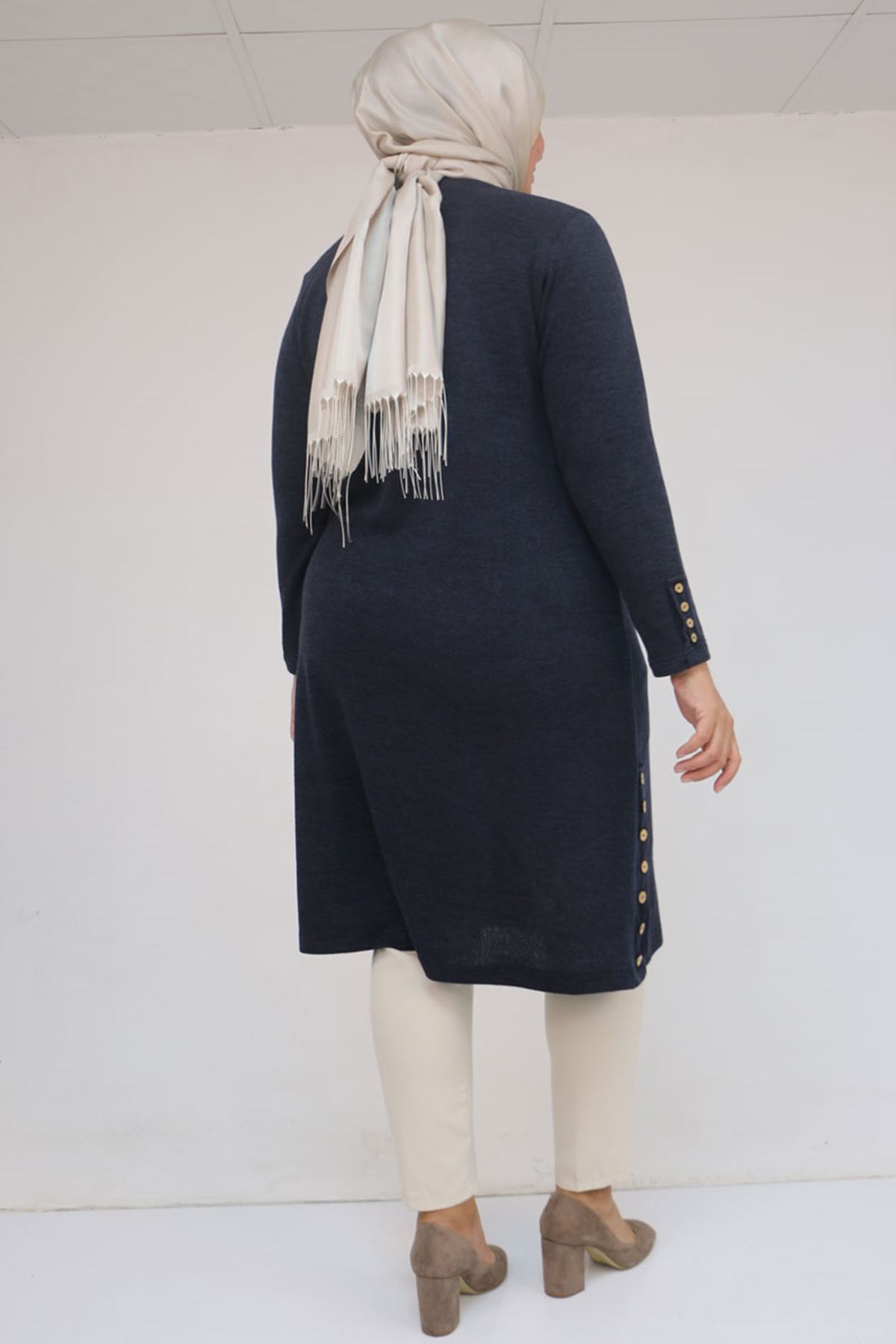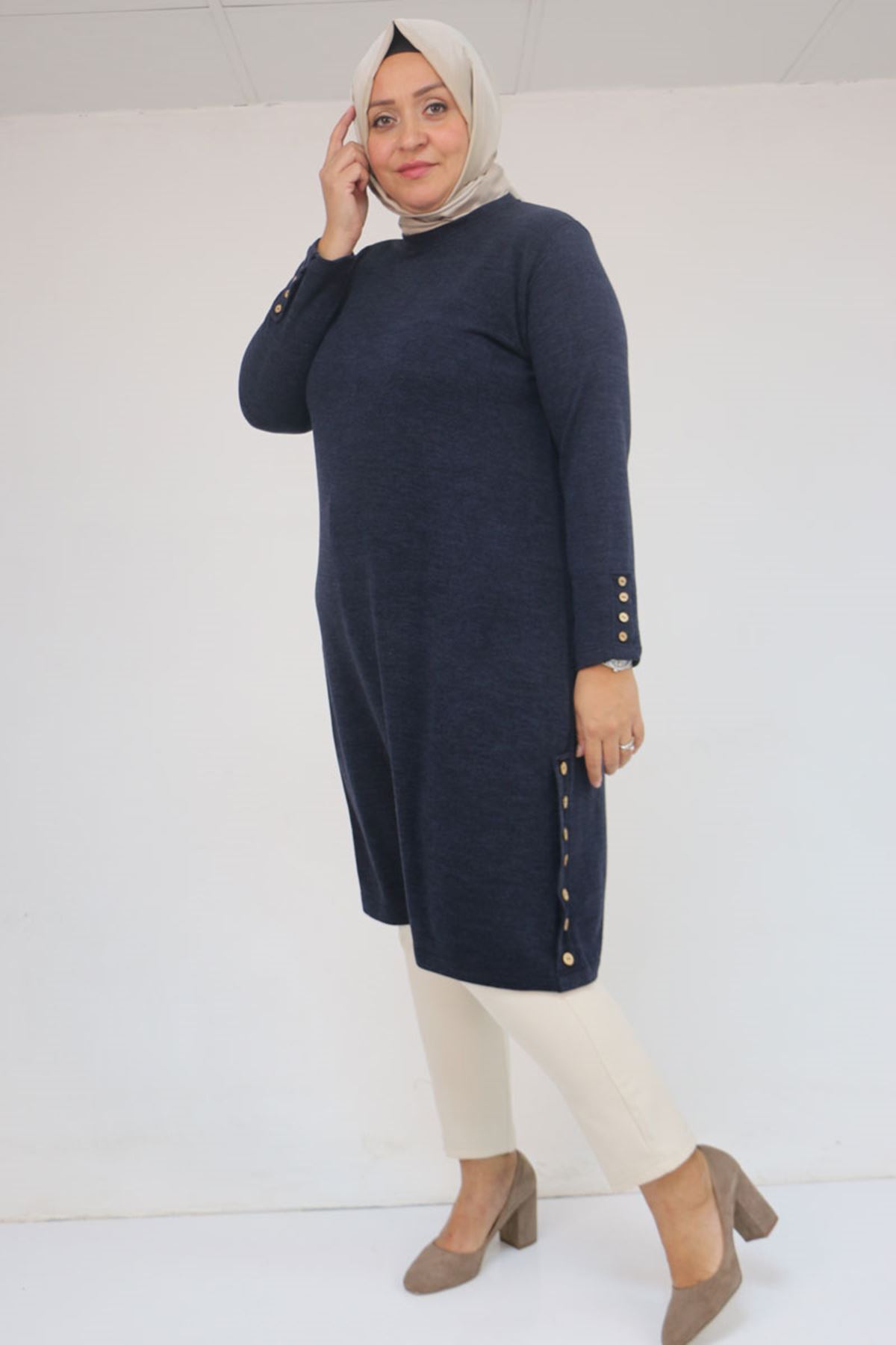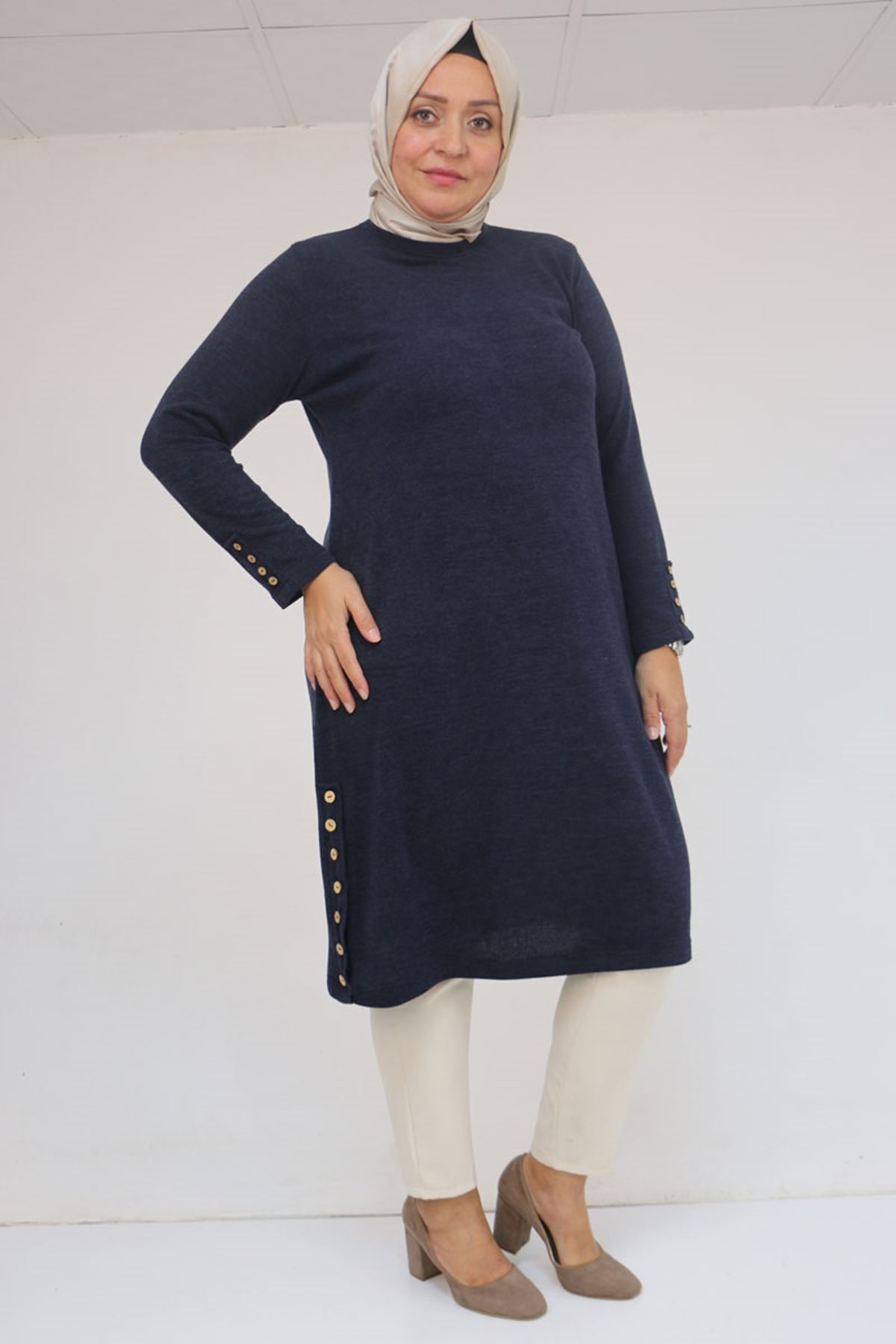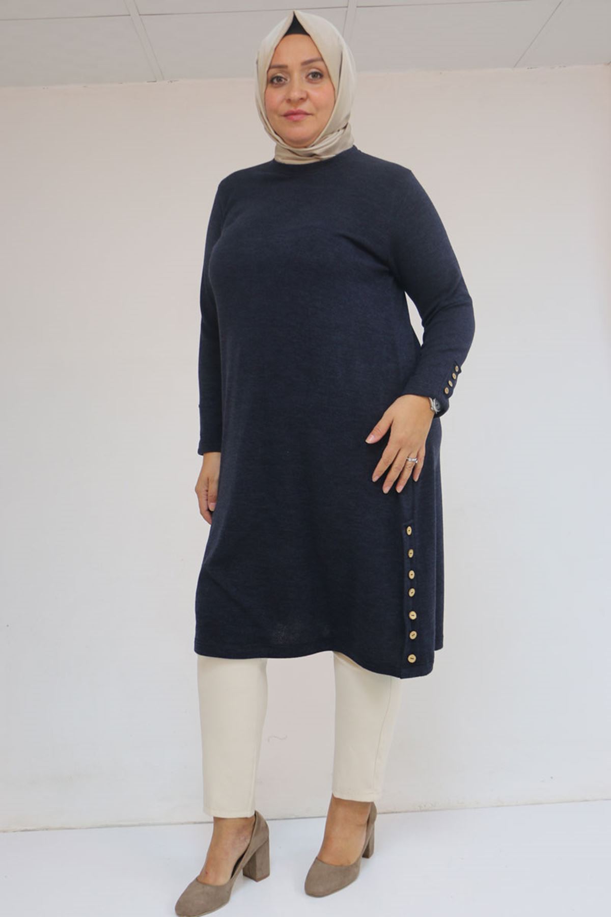 58109 Büyük Beden Patlı Düğmeli Mir Tunik - Lacivert
