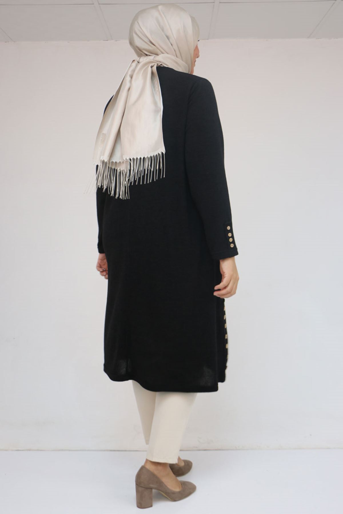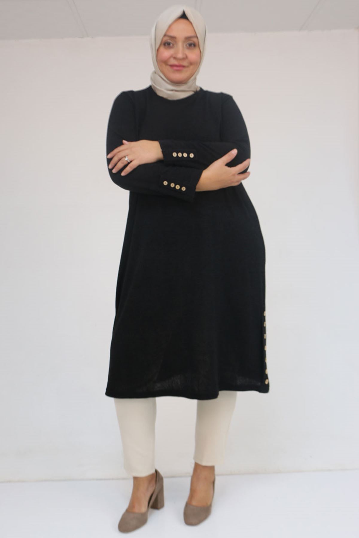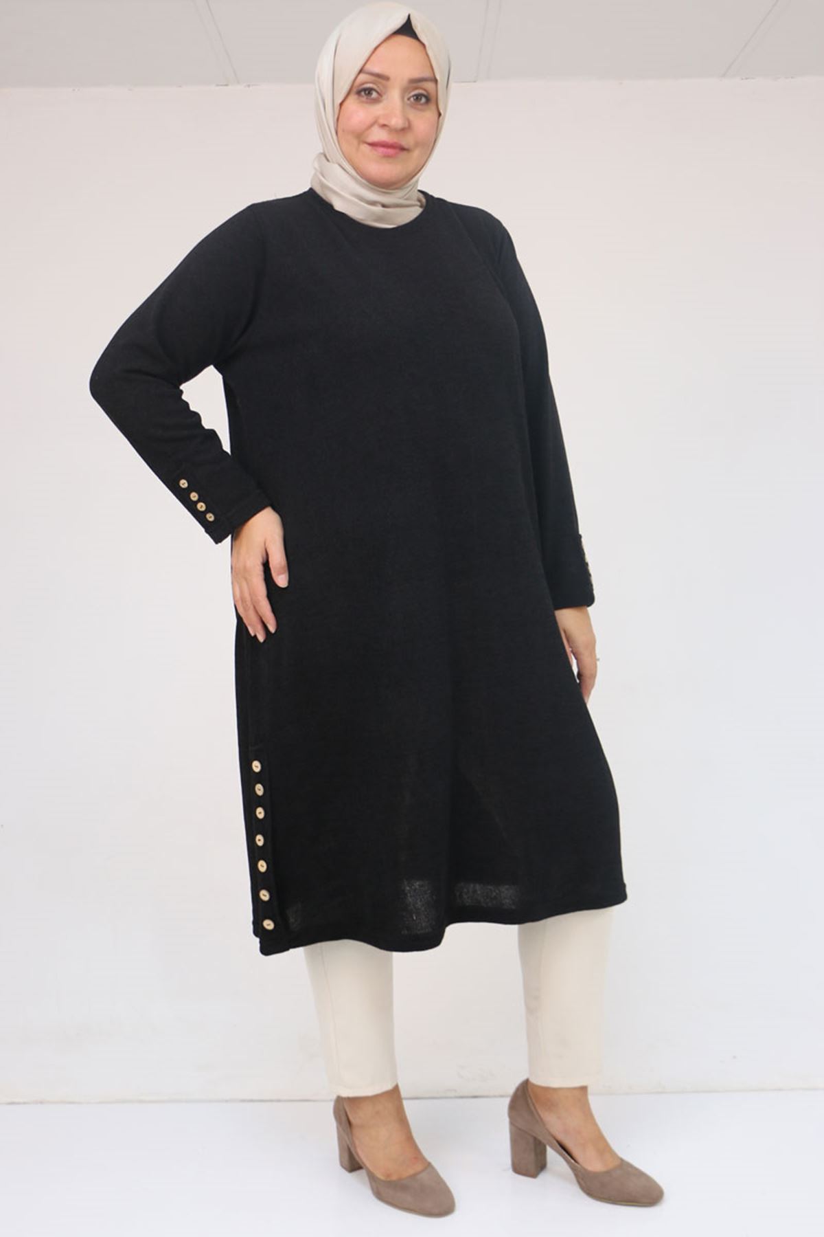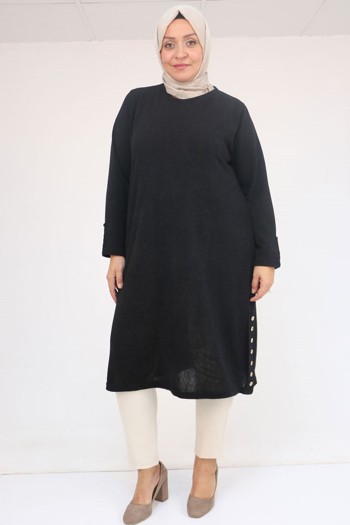 58109 Büyük Beden Patlı Düğmeli Mir Tunik - Siyah