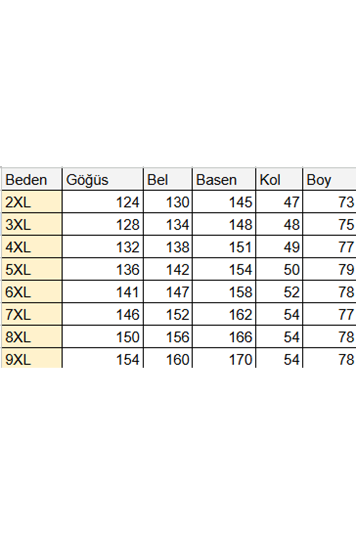 BEL GENİŞLİĞİ :88 cm GÖĞÜS GENİŞLİĞİ :103 cm BASEN :116 cm