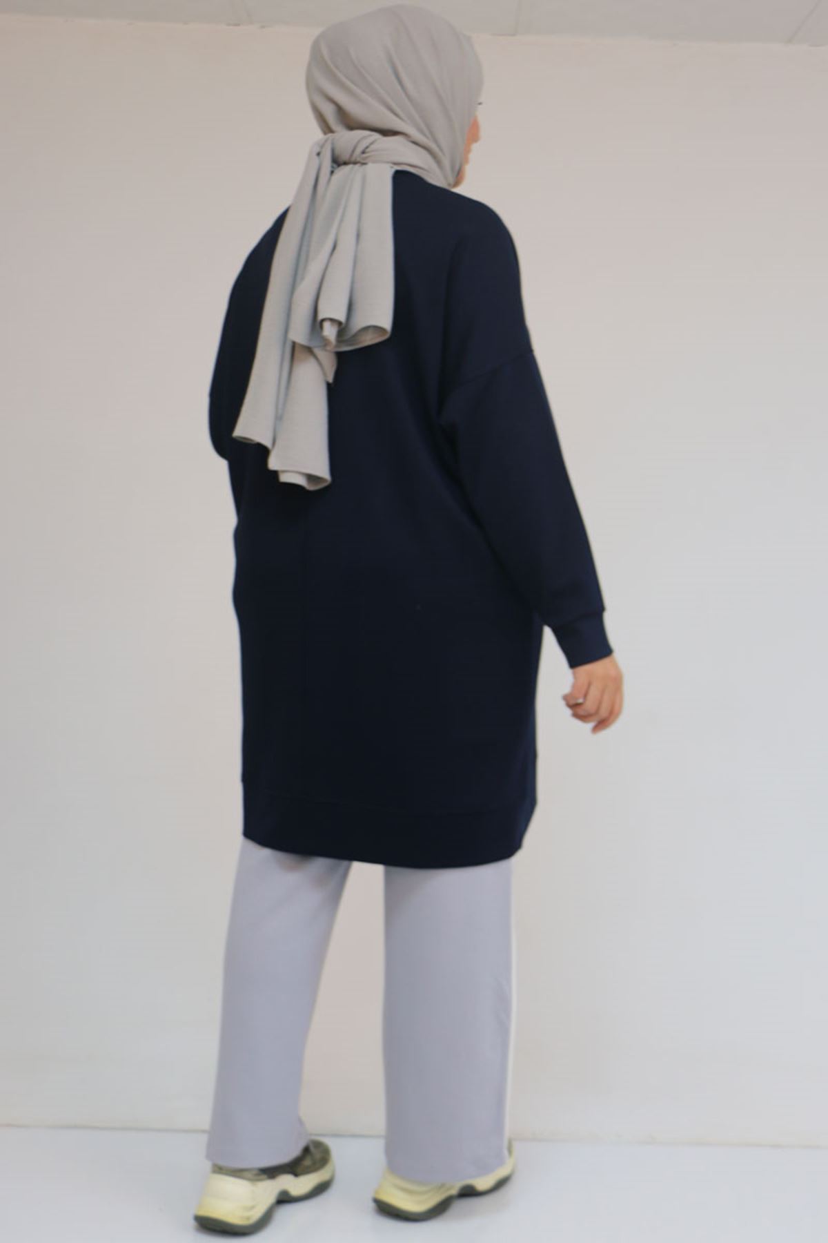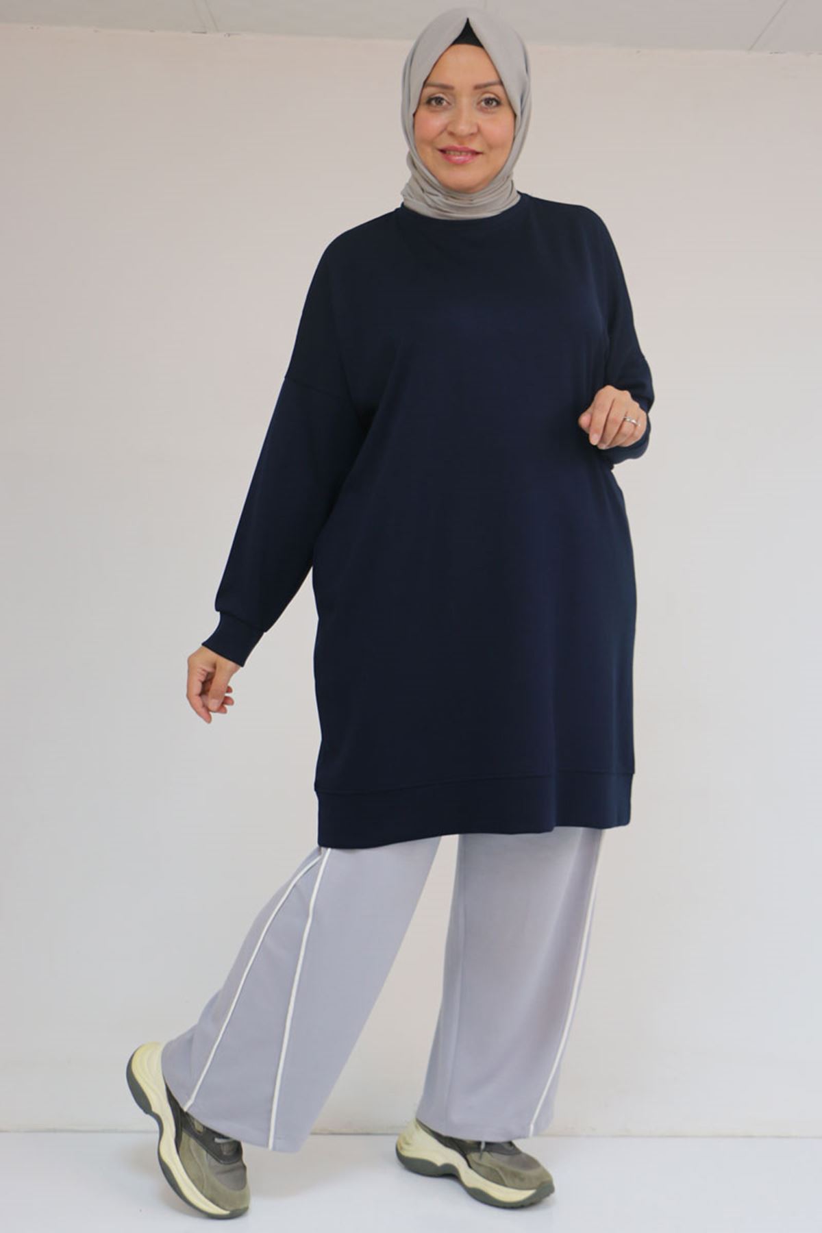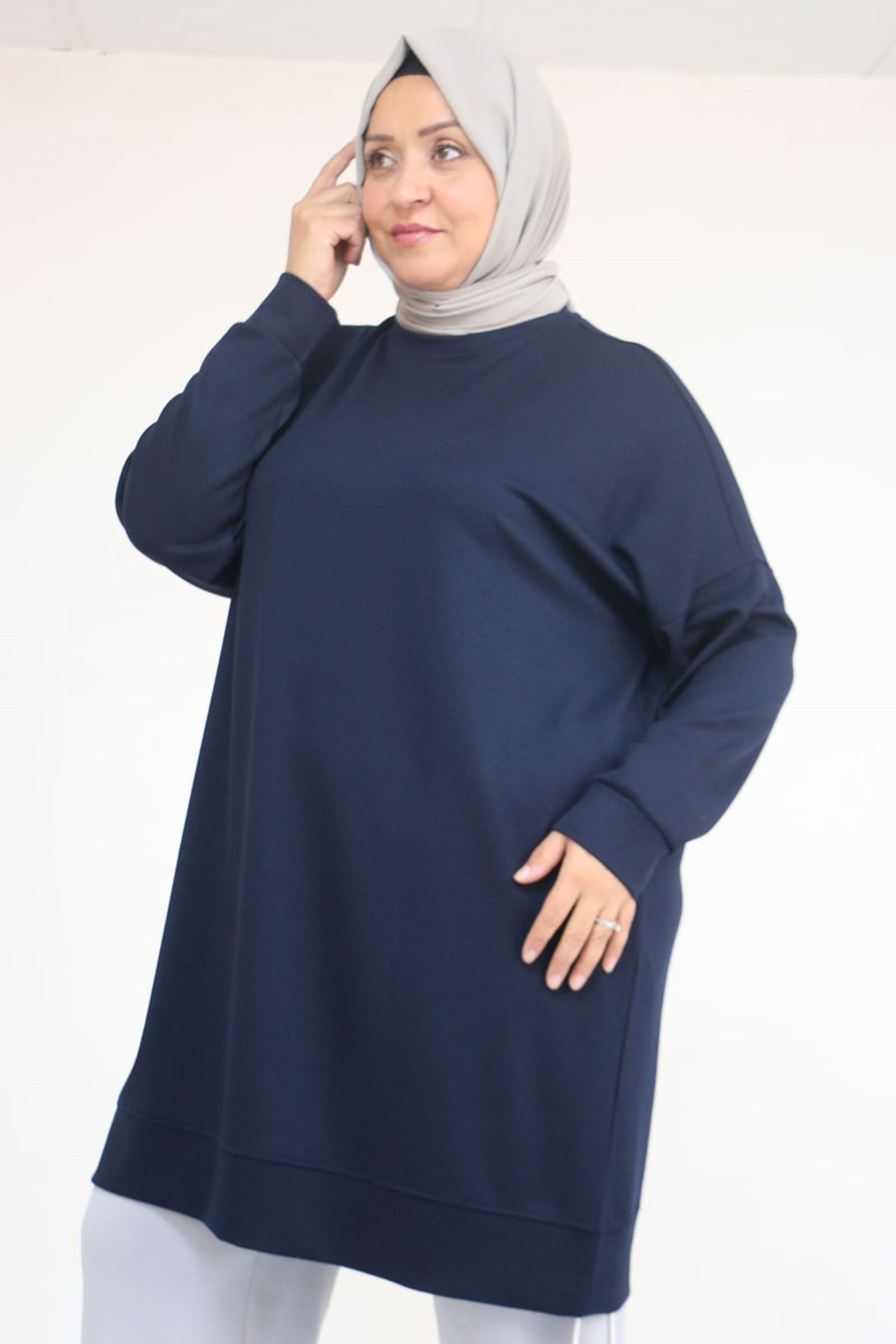 58151 Büyük Beden Kol Ve Etek Ucu Kendinden Ribanalı Modal Tunik - Lacivert