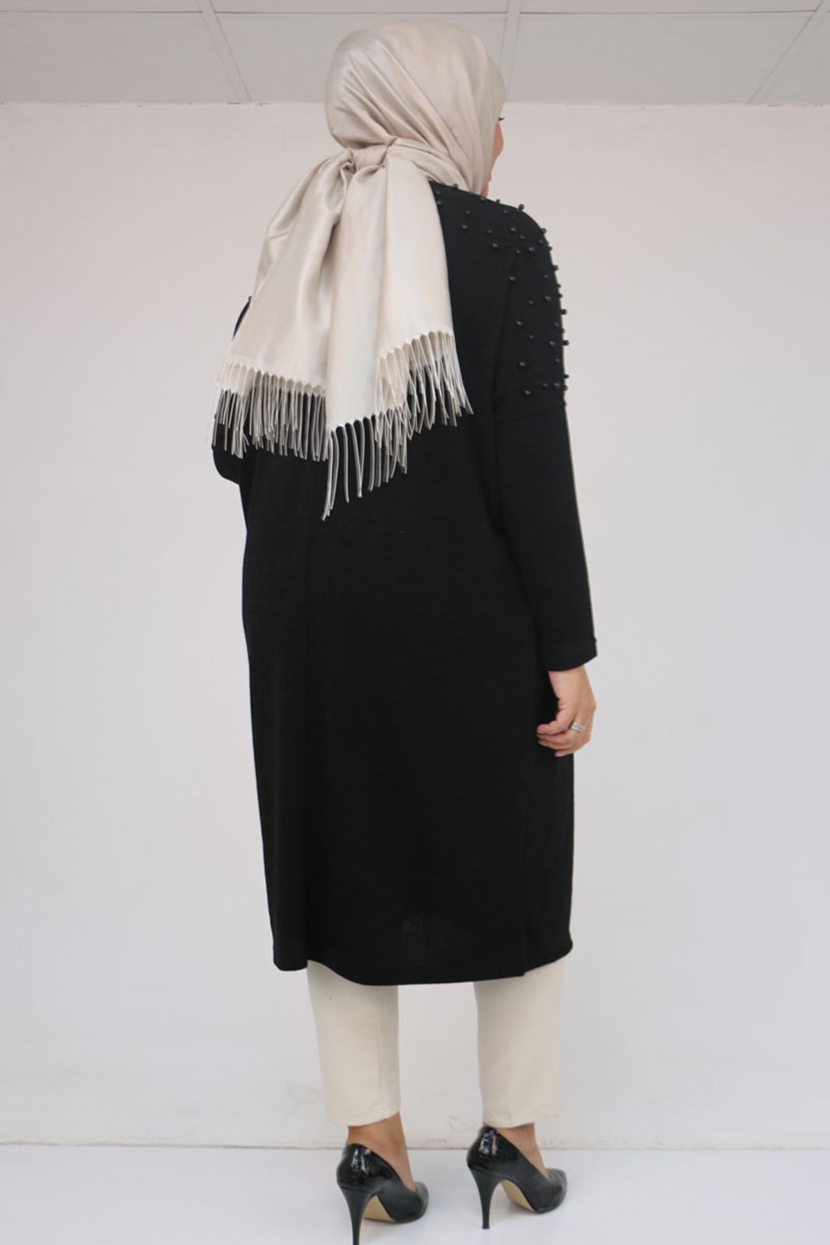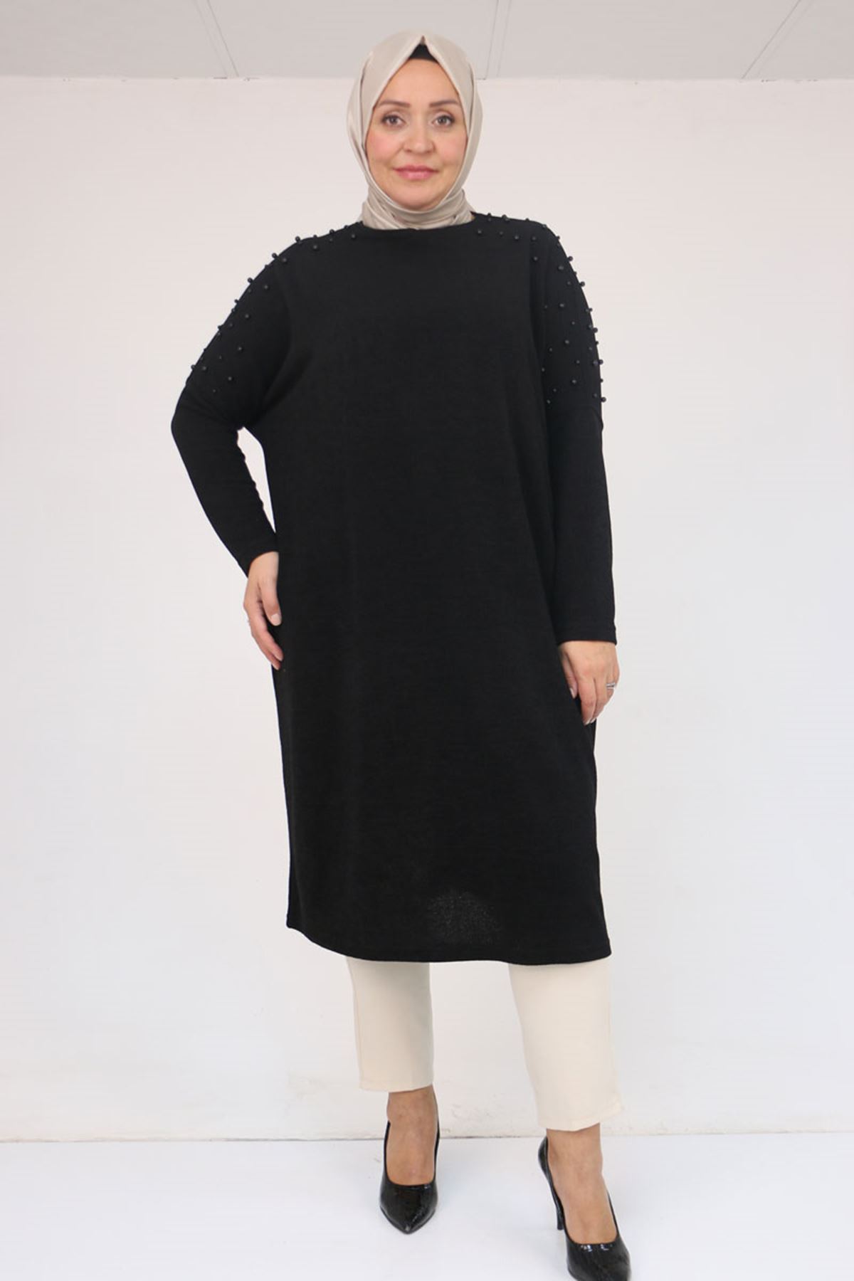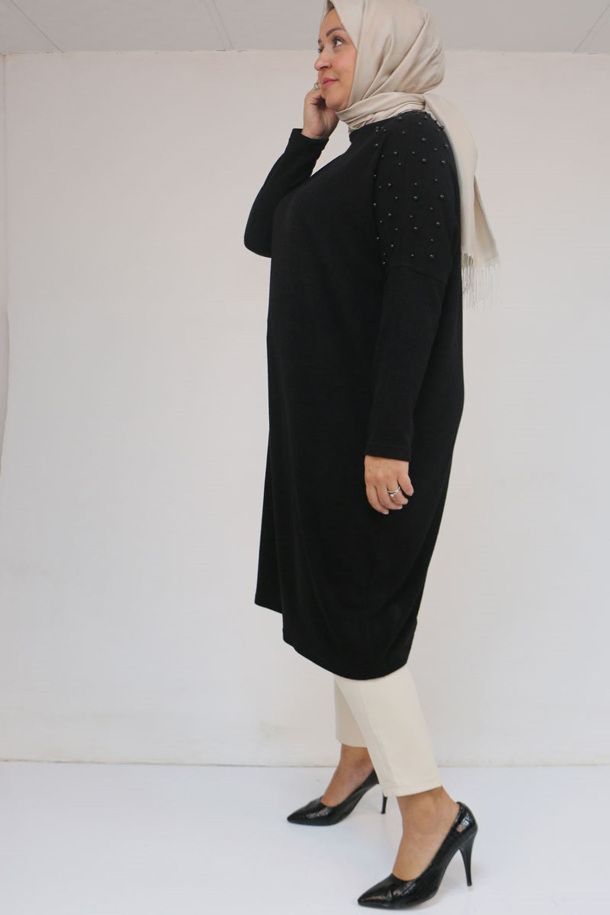 58152 Büyük Beden Düşükkol Omzu Taş Detaylı Mir Tunik - Siyah
