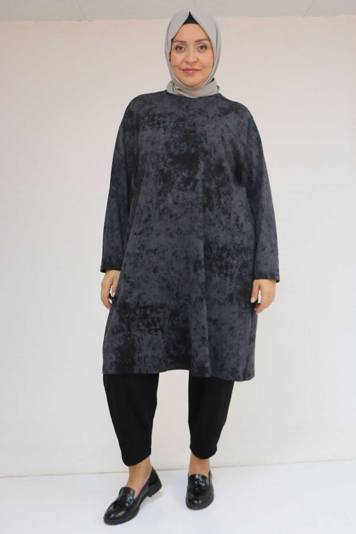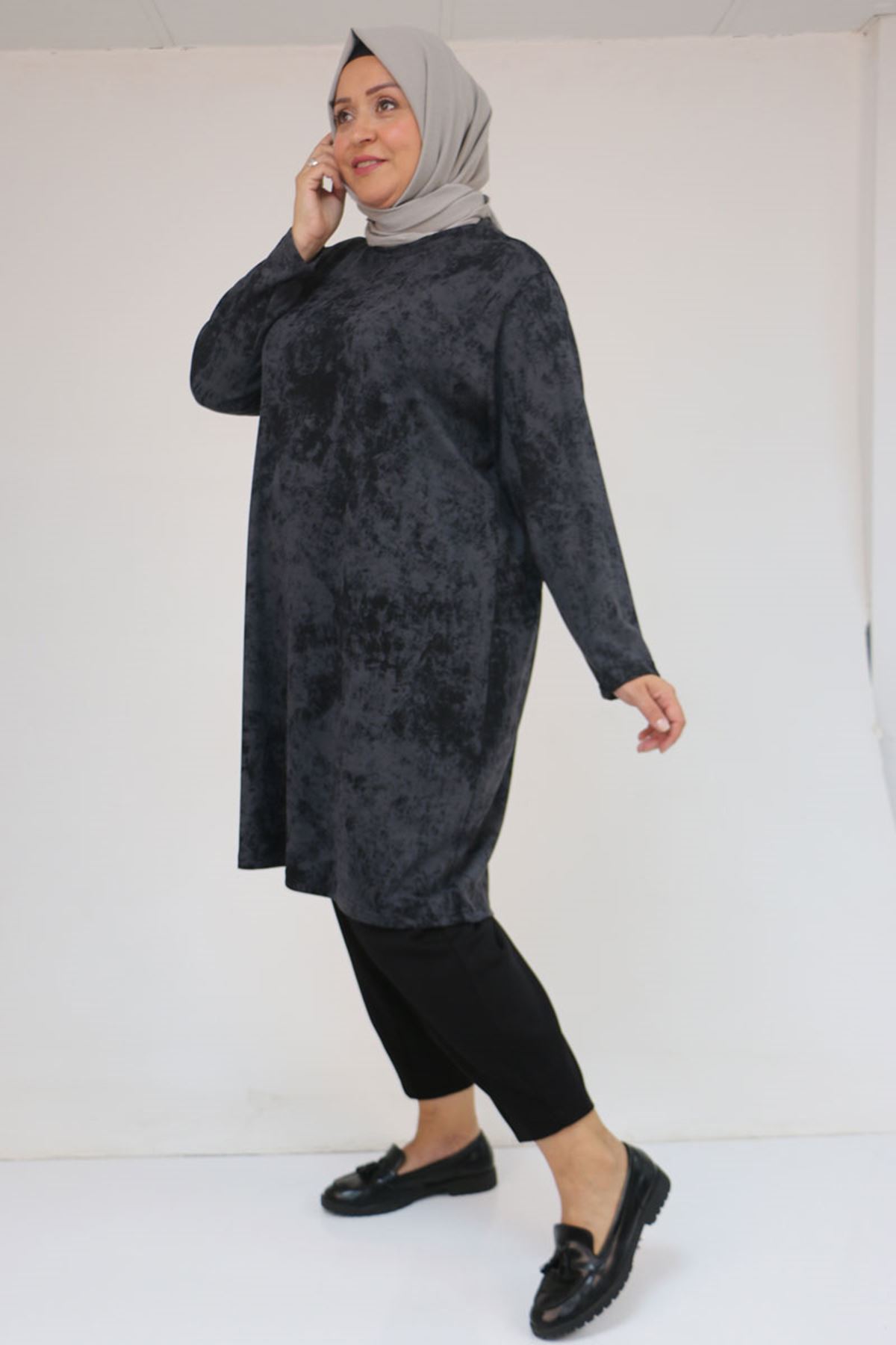 58153 Büyük Beden Basic Batik Modal Tunik - Batik Siyah