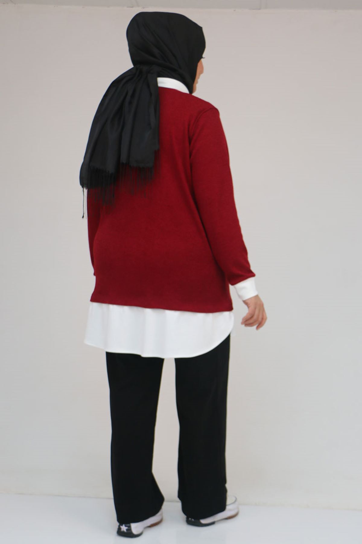 58159 Büyük Beden Kot Garnili Mir Tunik - Bordo