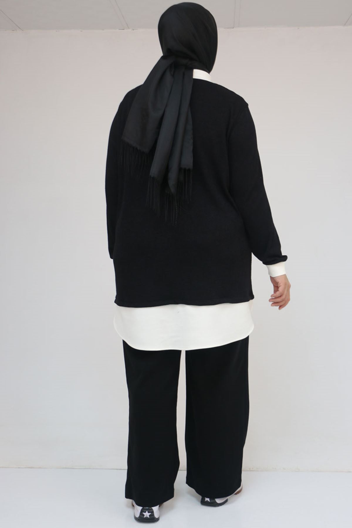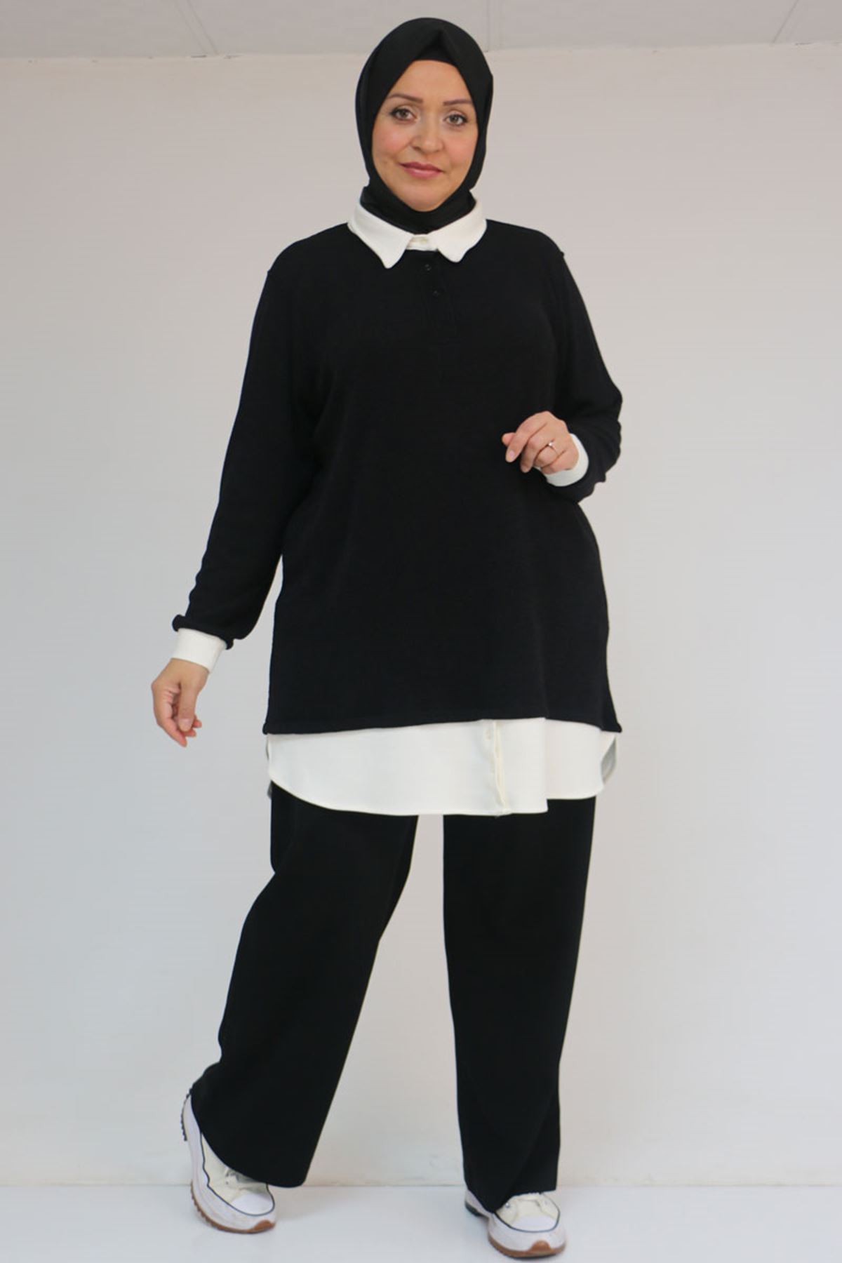 58159 Büyük Beden Kot Garnili Mir Tunik - Siyah