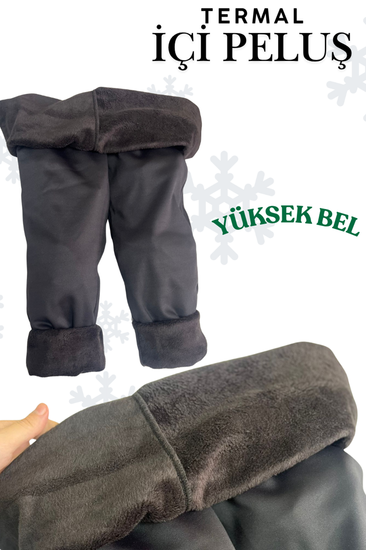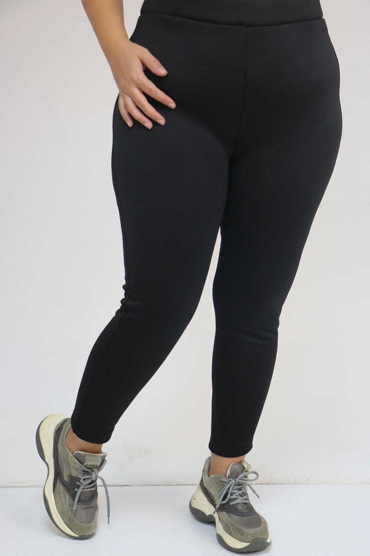 59503 Büyük Beden Beli Lastikli İçi Şardonlu Tayt - Siyah