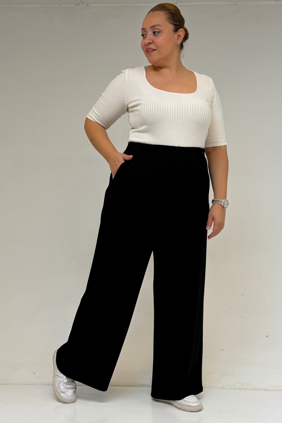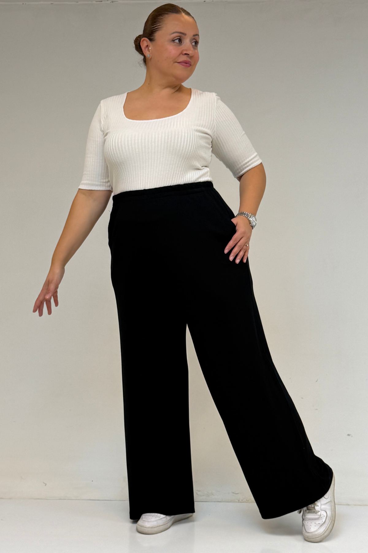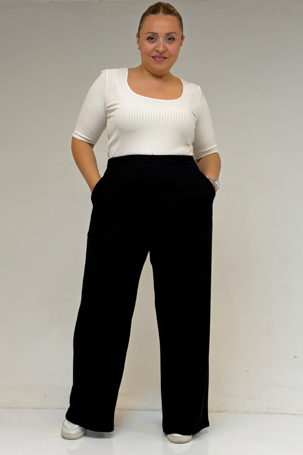 9160 بنطلون مقاس كبير بخصر مرتفع و مرن- قرميدي