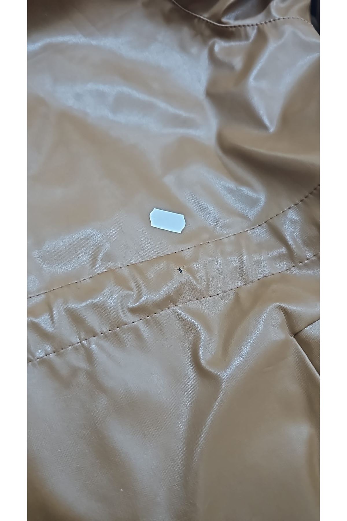D-53055 Büyük Beden Bebe Lastik Detaylı Zara Deri Trençkot - Taba