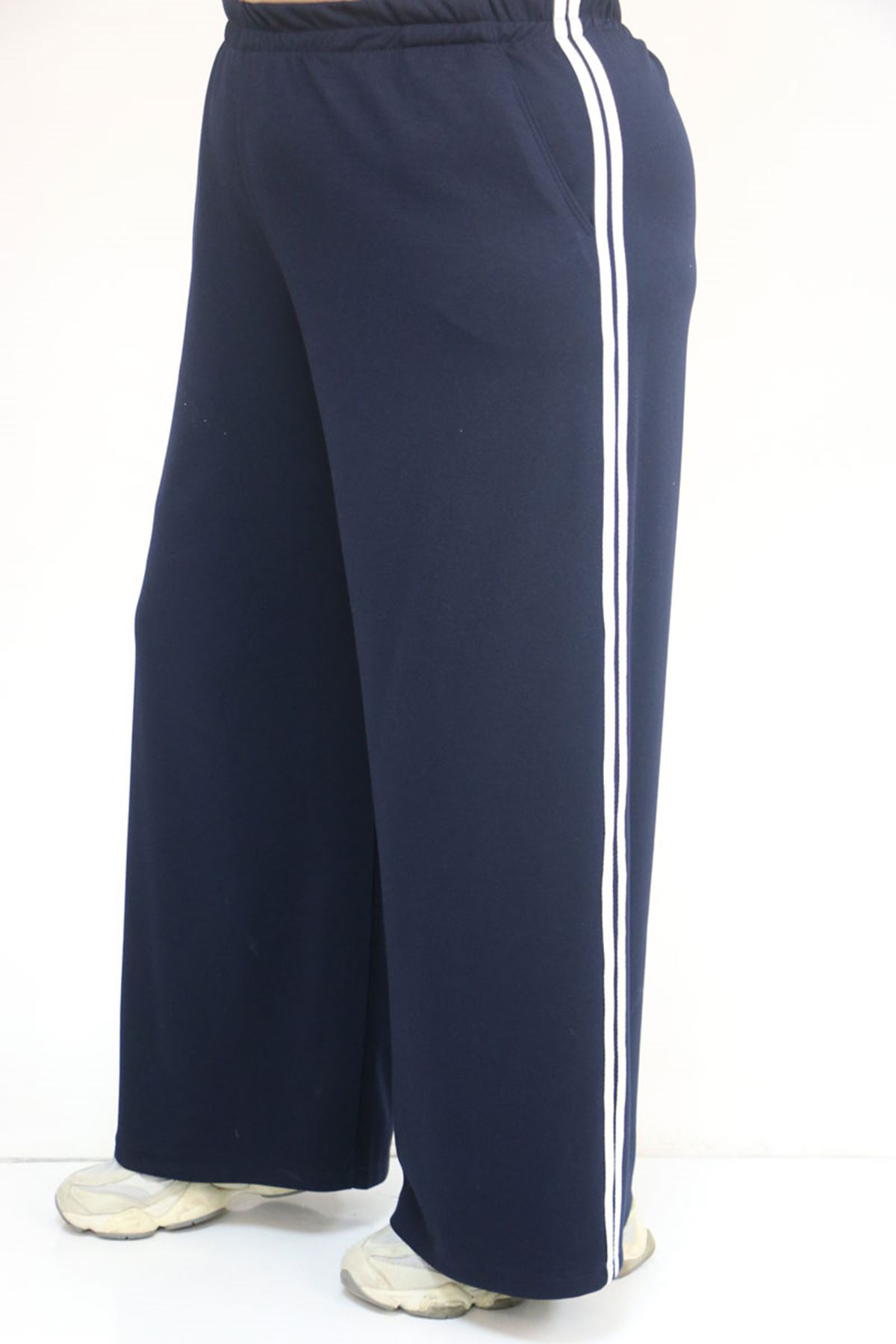 D-57059 Büyük Beden Alt-Üst Renk Kombinli Modal Pantolonlu Takım - Lacivert