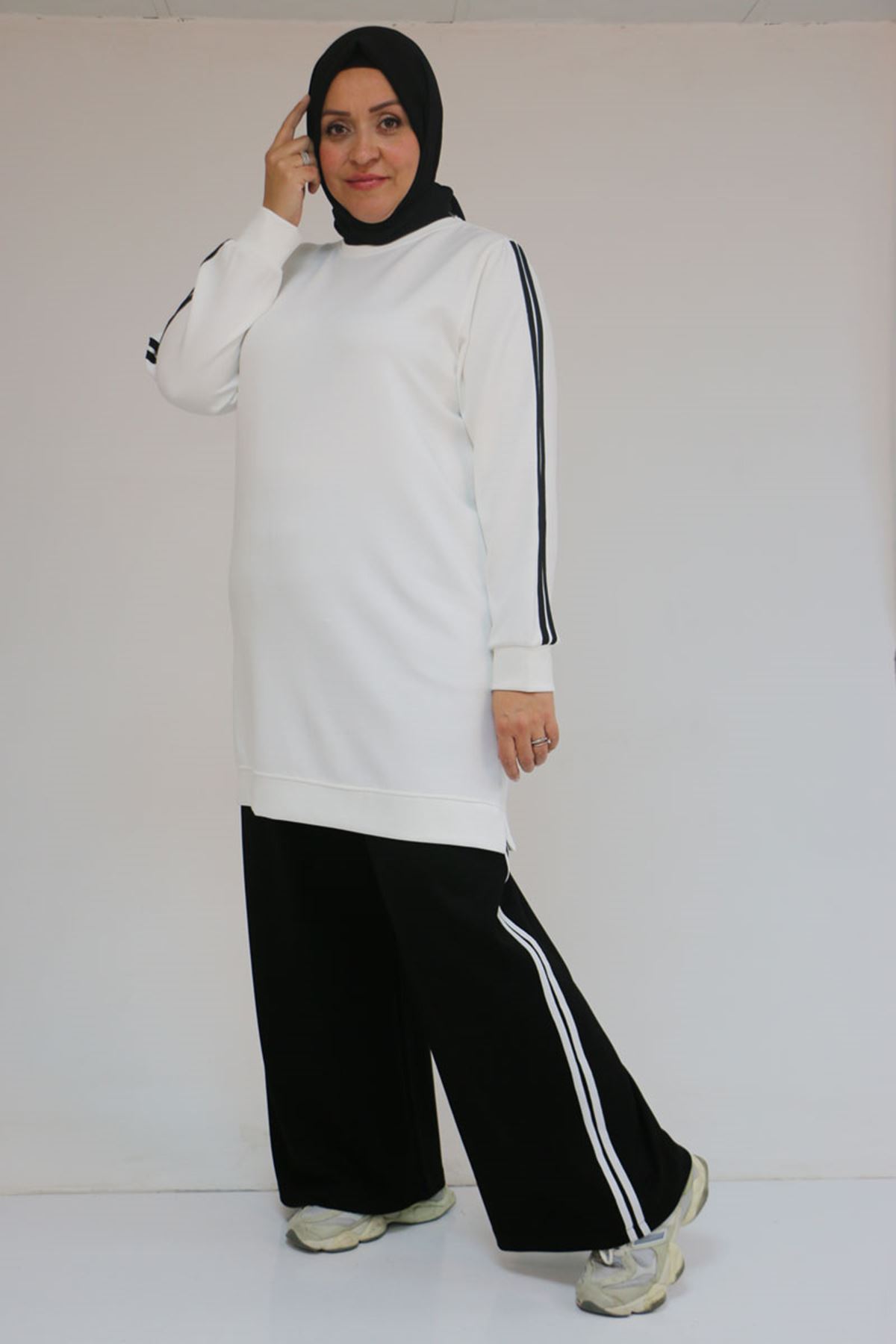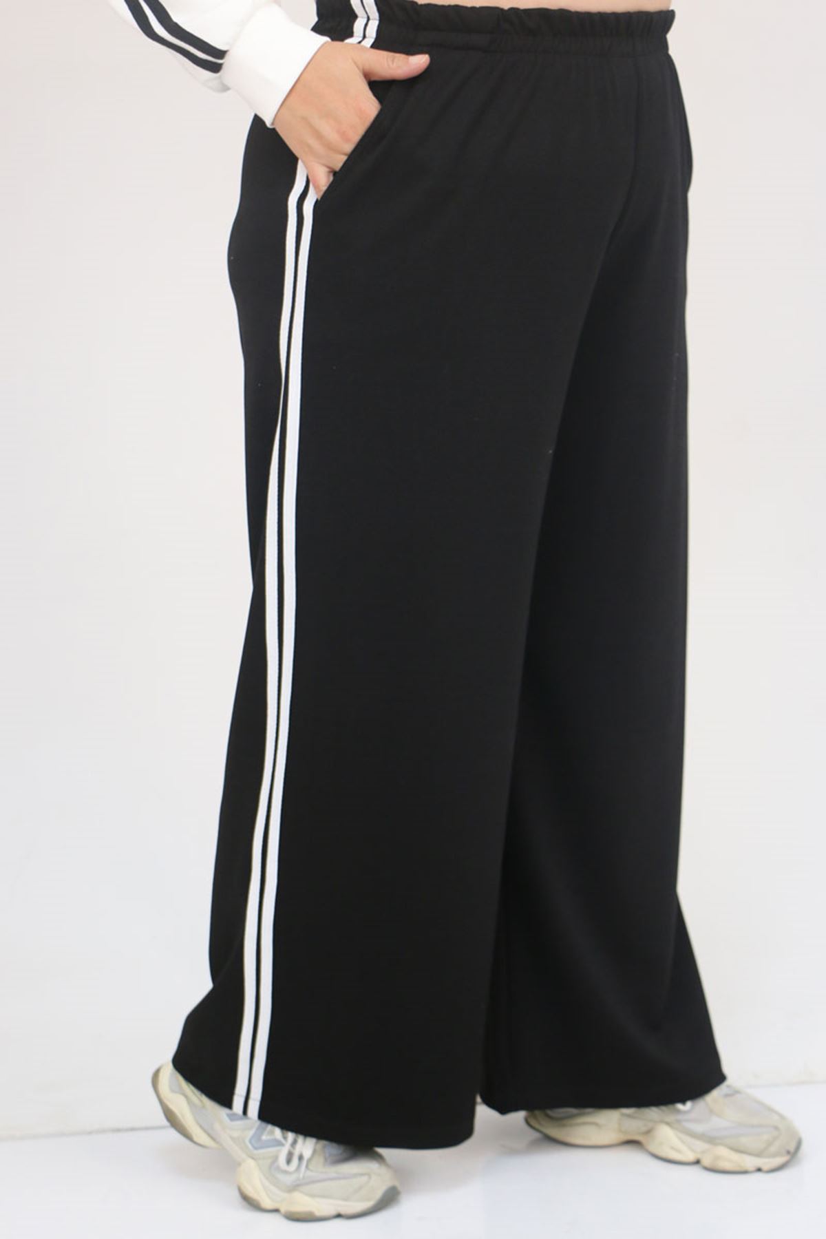 D-57059 Büyük Beden Alt-Üst Renk Kombinli Modal Pantolonlu Takım - Siyah