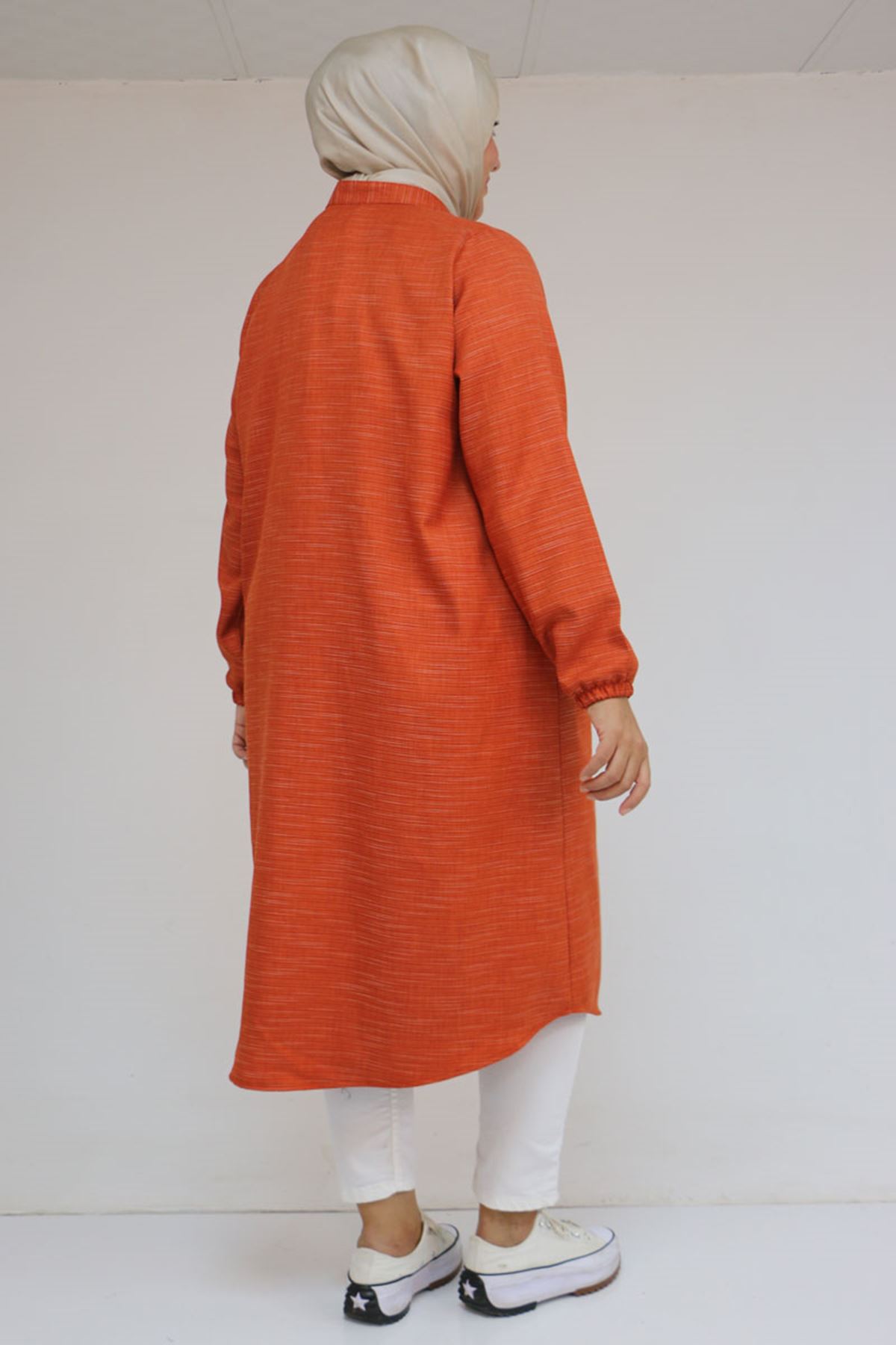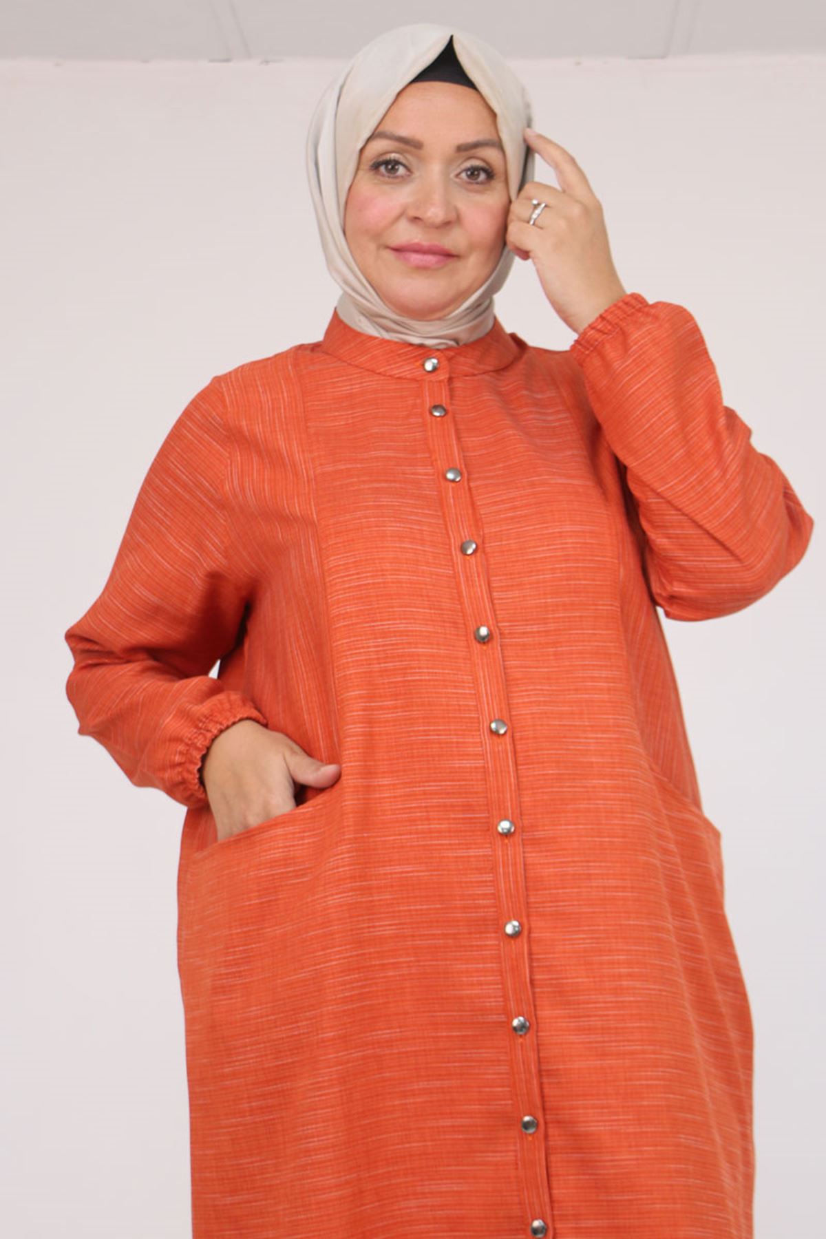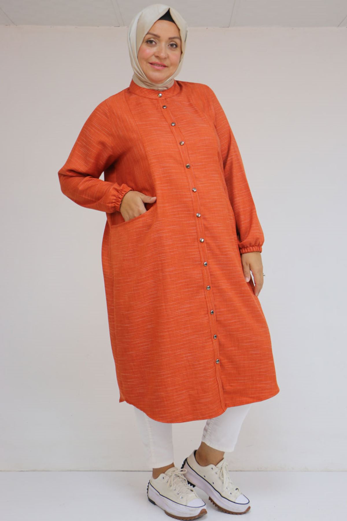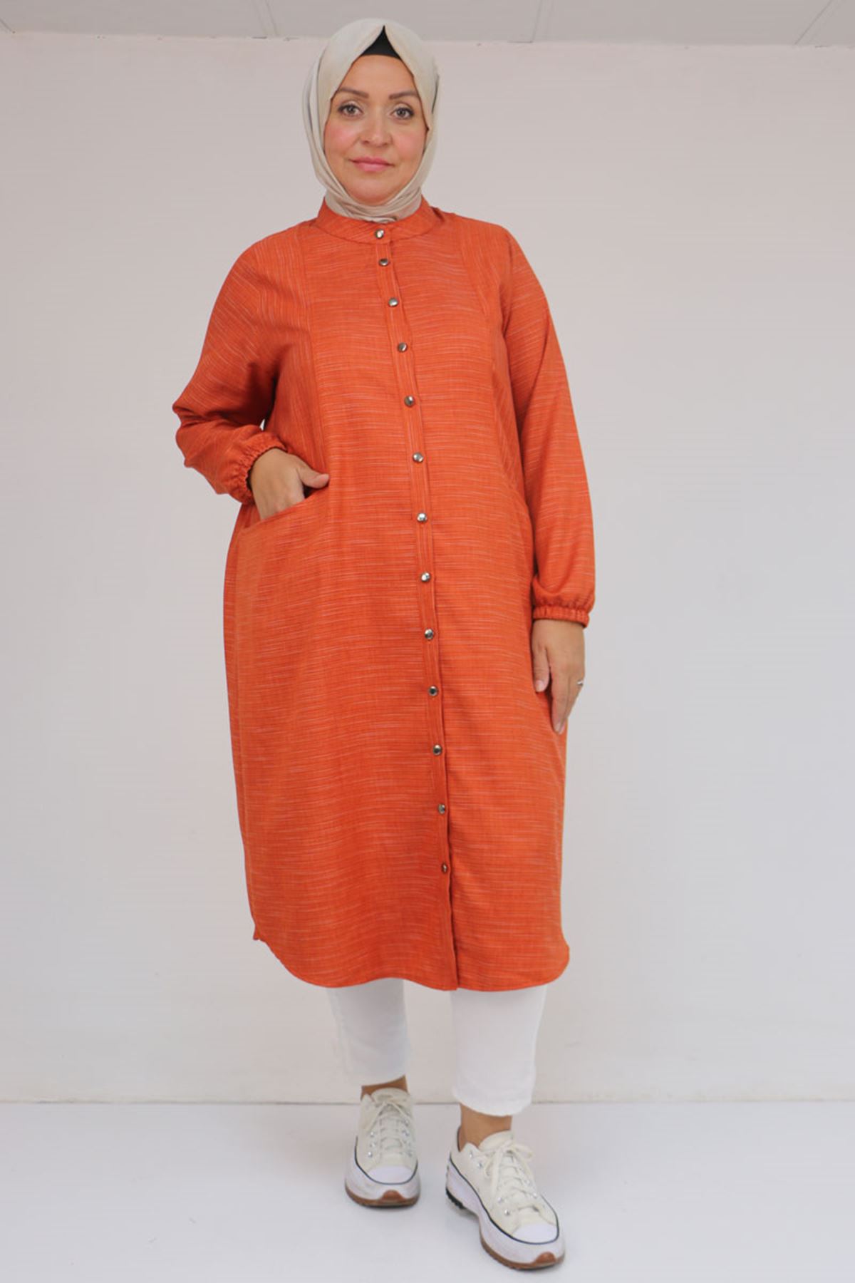 48072 Büyük Beden Kolları Lastikli Tunik - Kiremit Kırçıllı