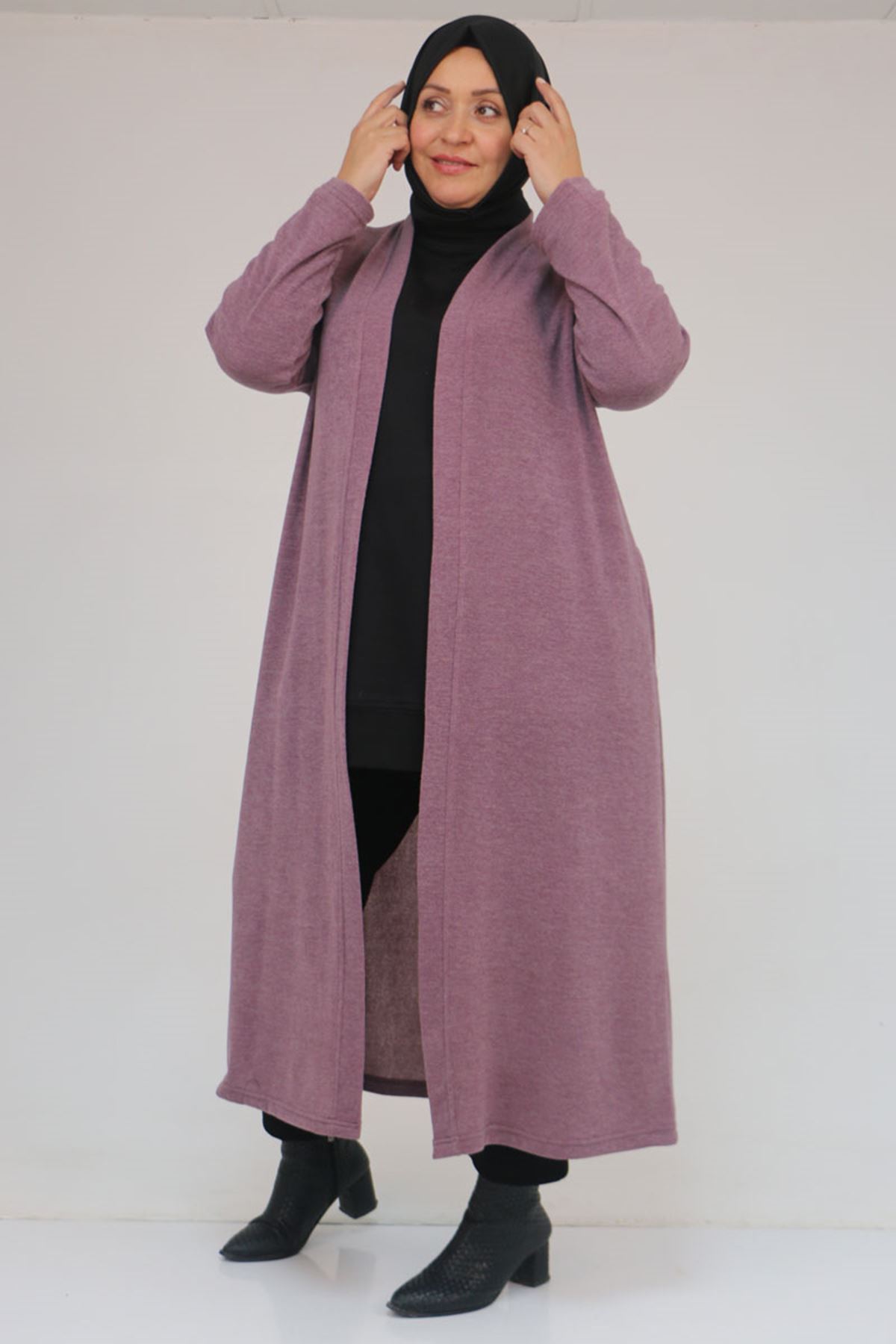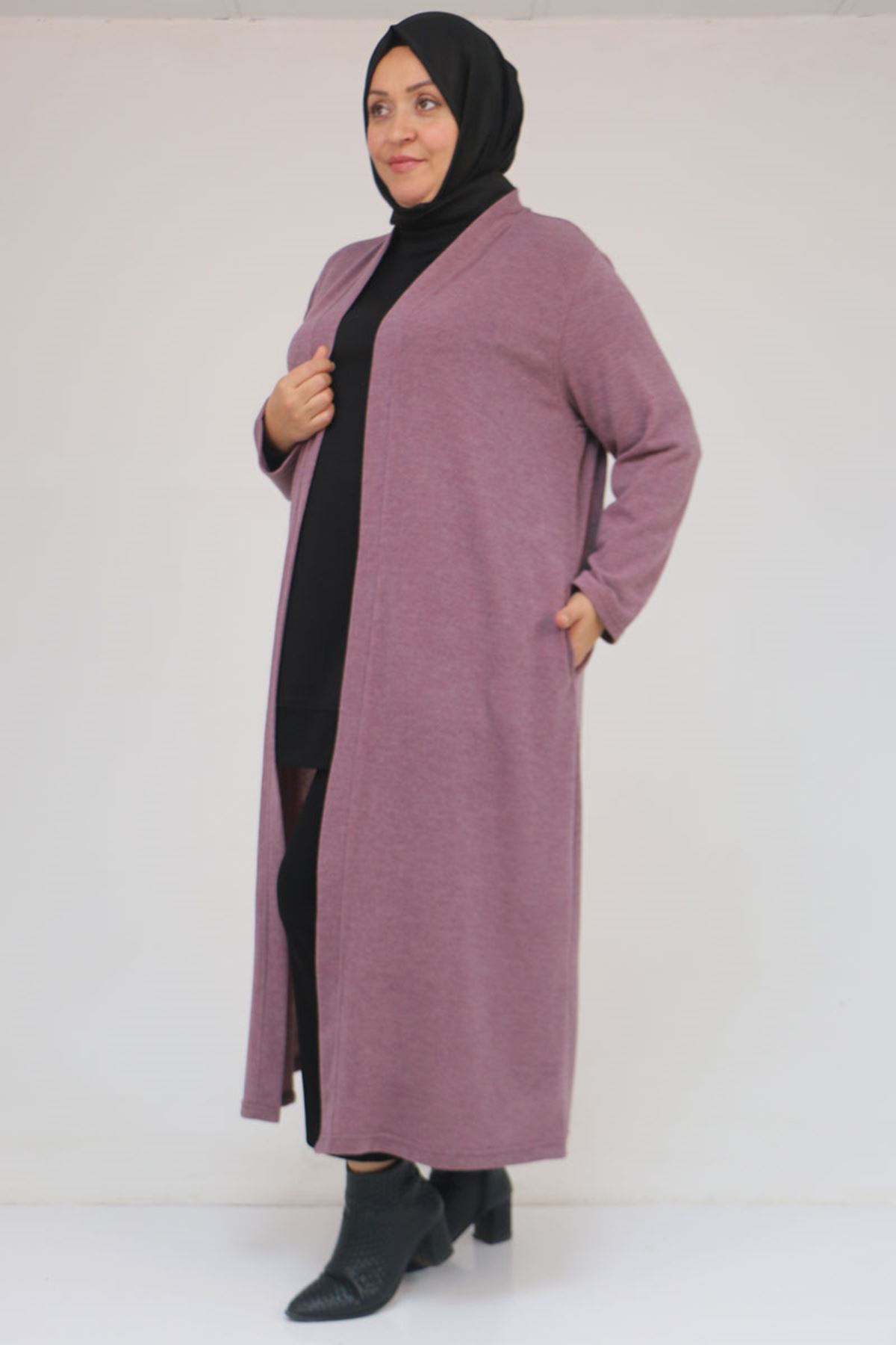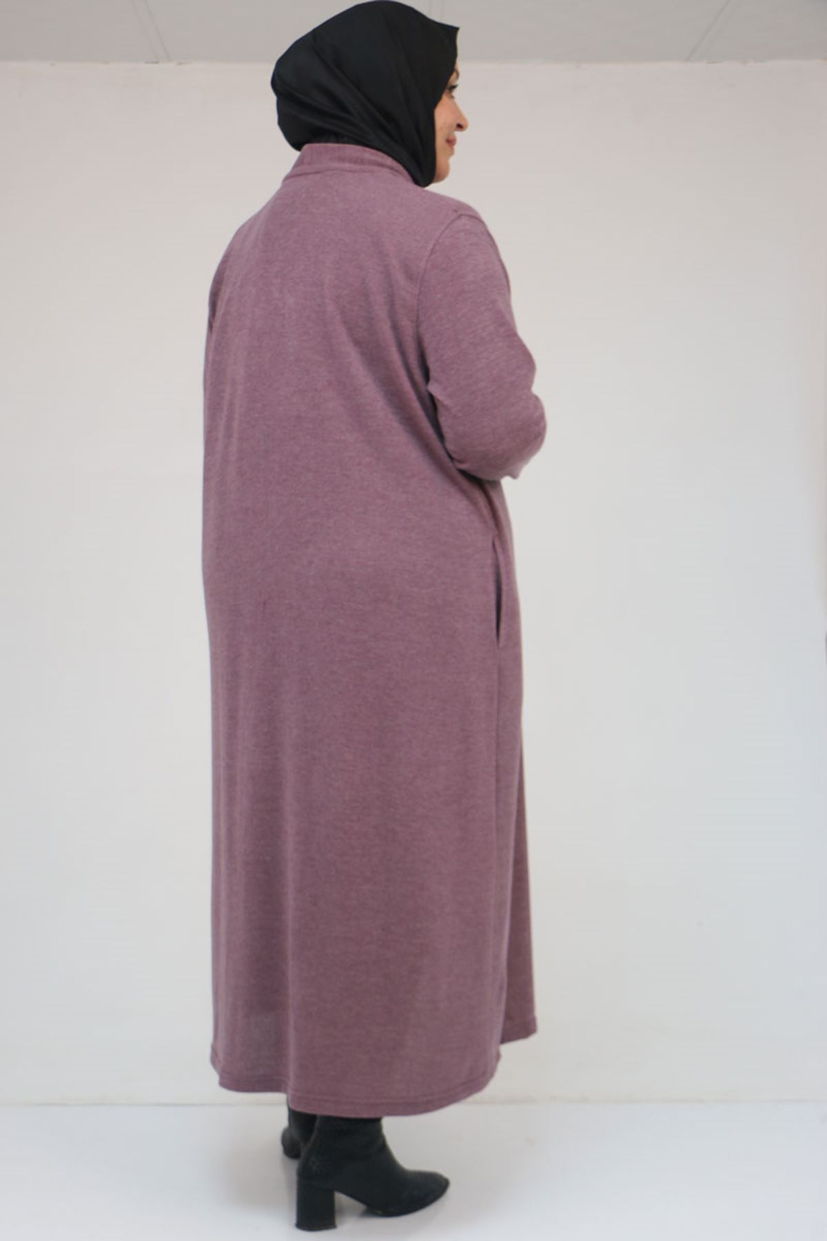 53061 Büyük Beden Cepli Uzun Mir Ceket - Gül Kurusu