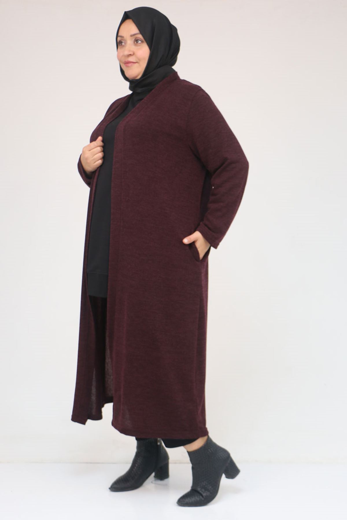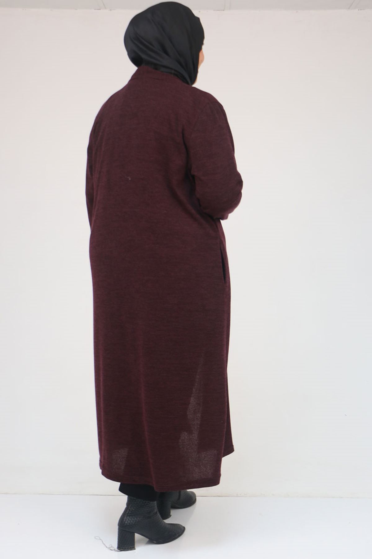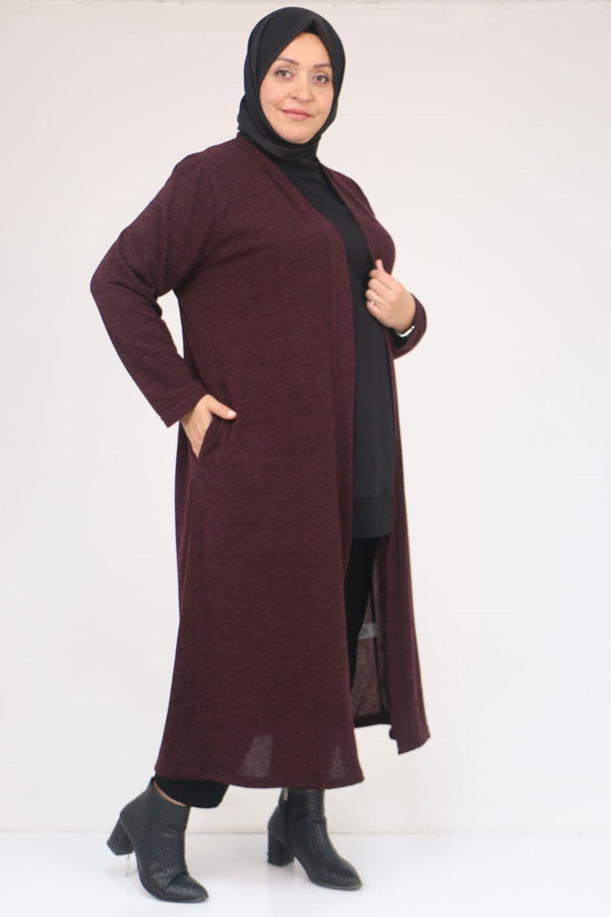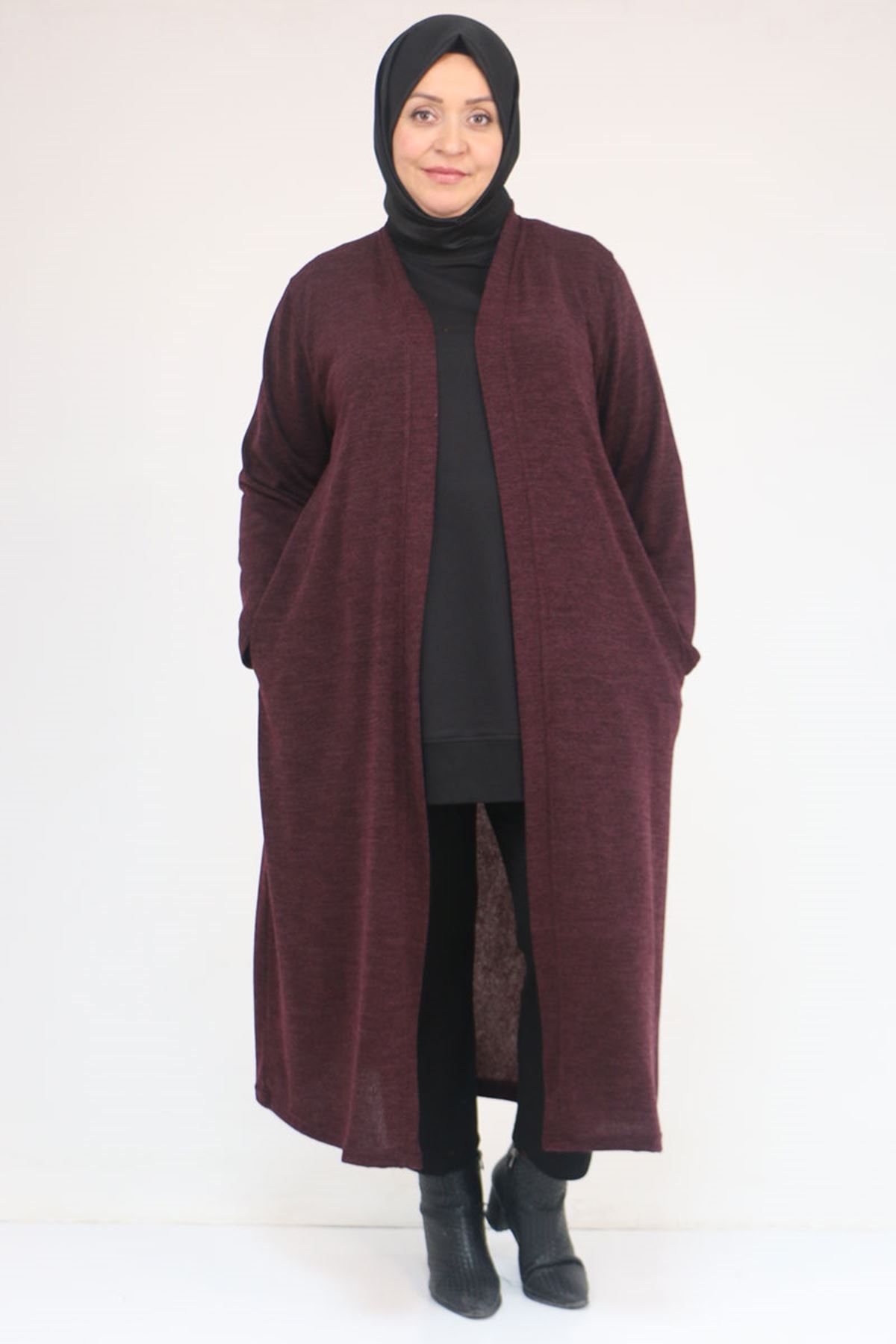 53061 Büyük Beden Cepli Uzun Mir Ceket - Mürdüm
