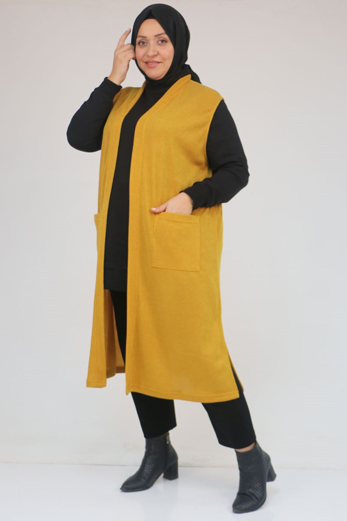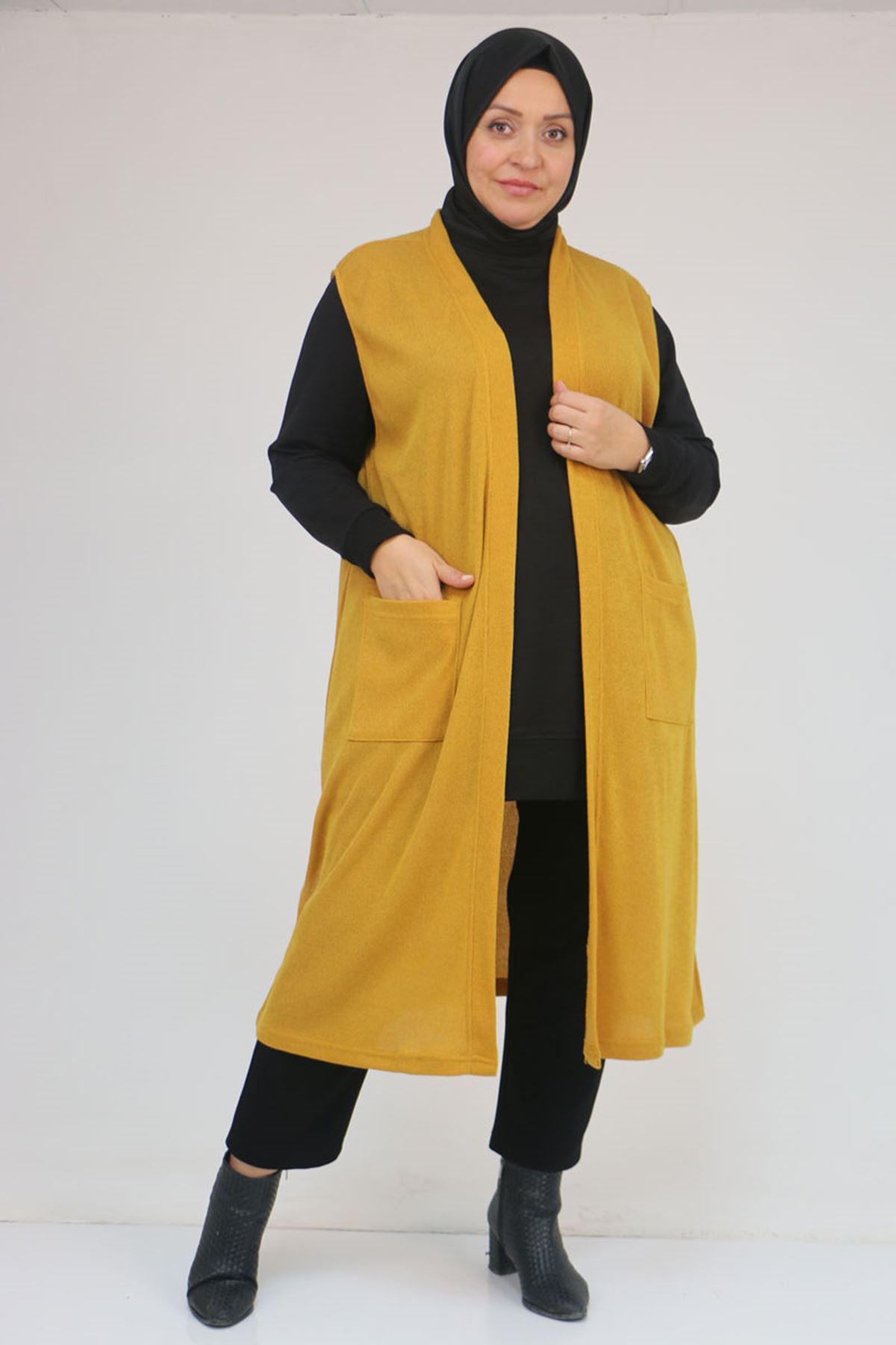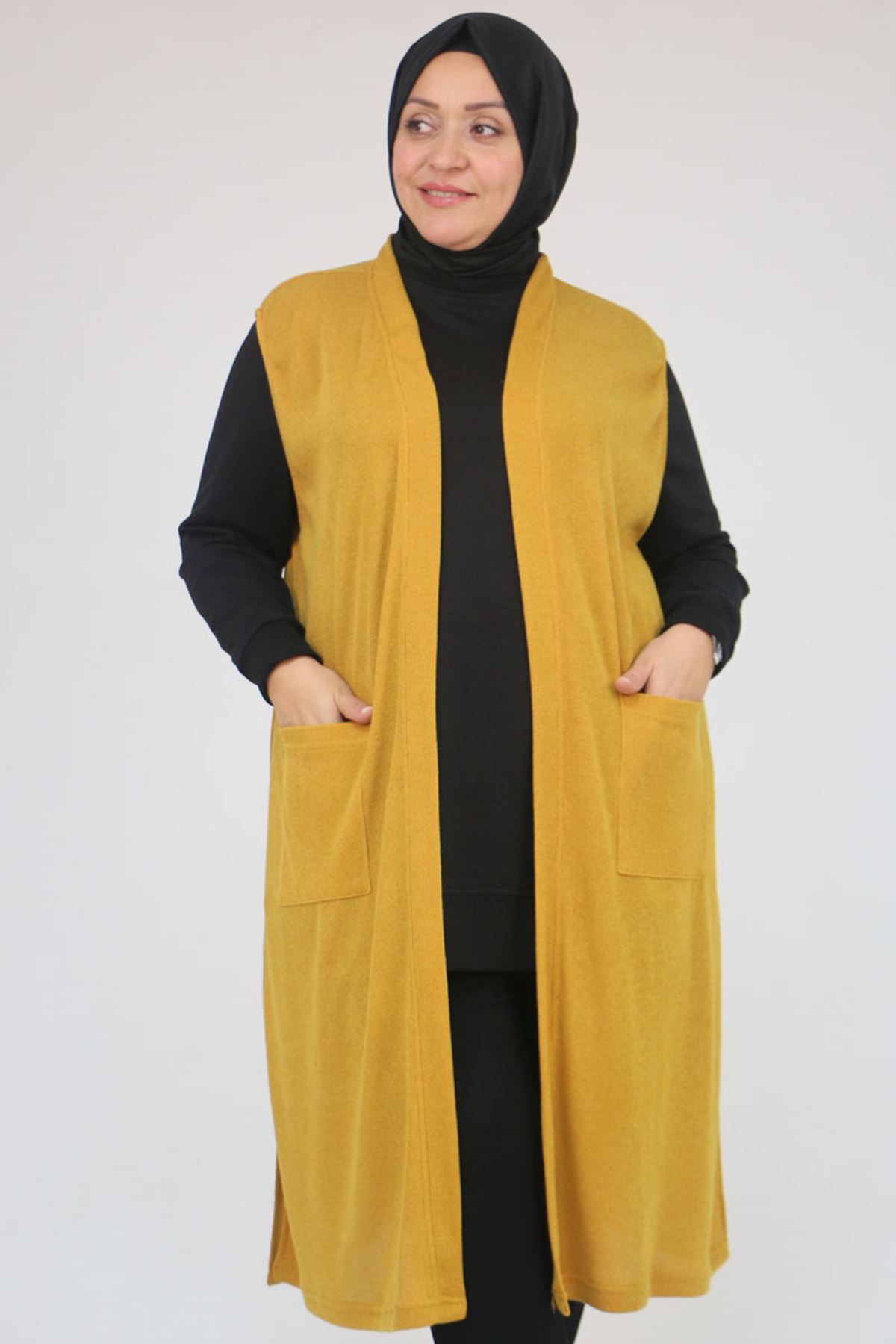 54012 Büyük Beden Cepli Giy-Çık Mir Yelek - Hardal