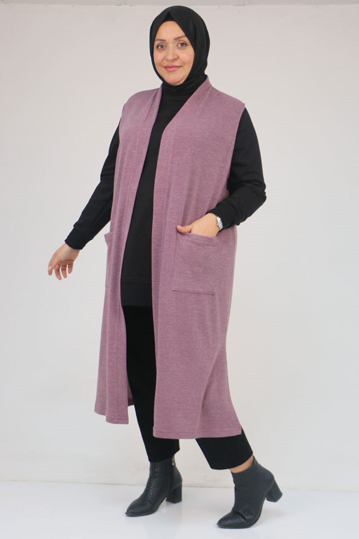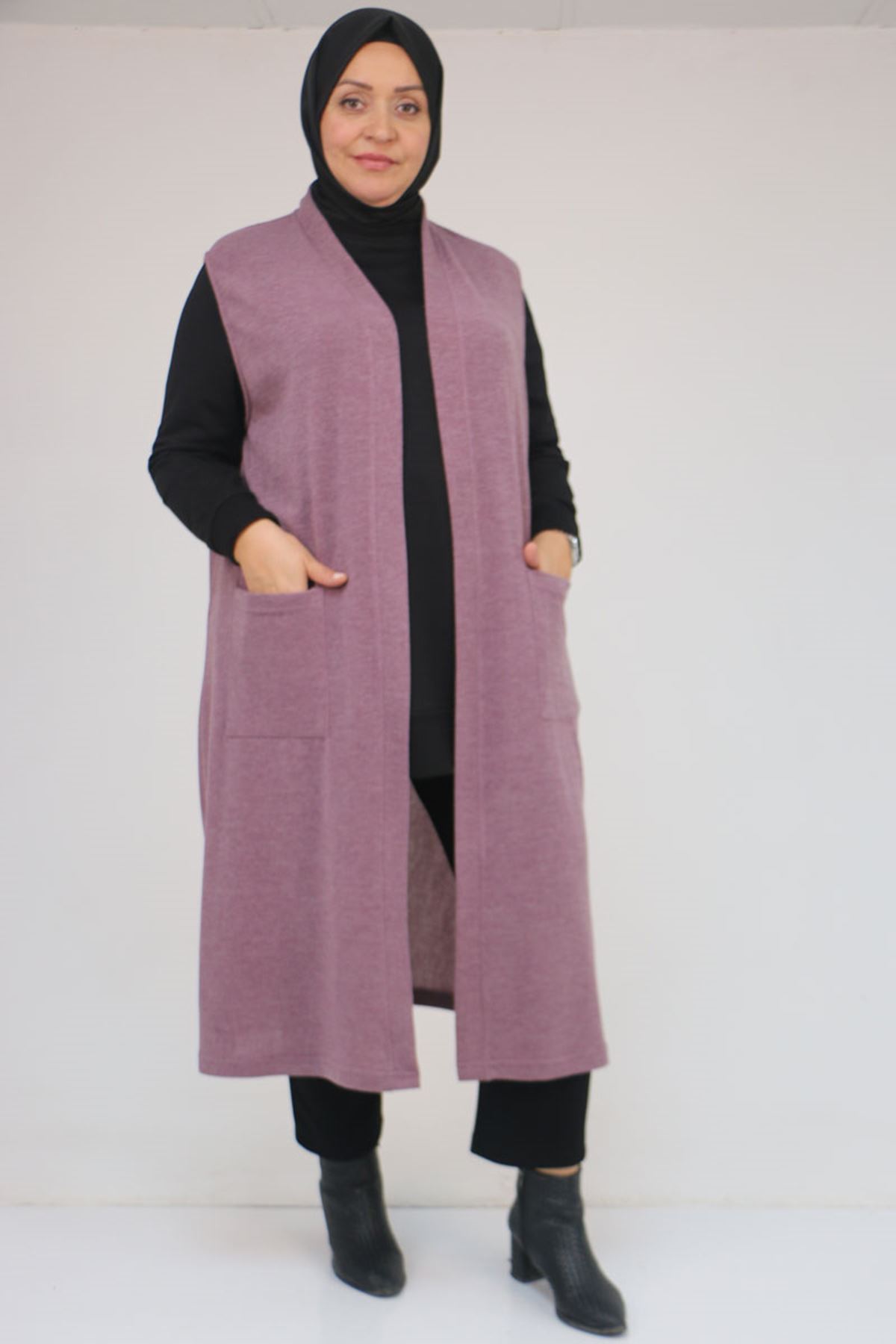 54012 Büyük Beden Cepli Giy-Çık Mir Yelek - Gül Kurusu
