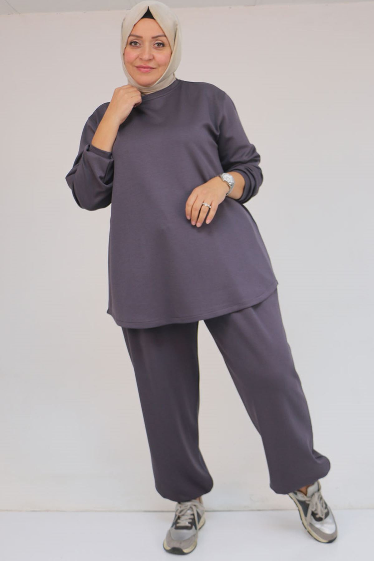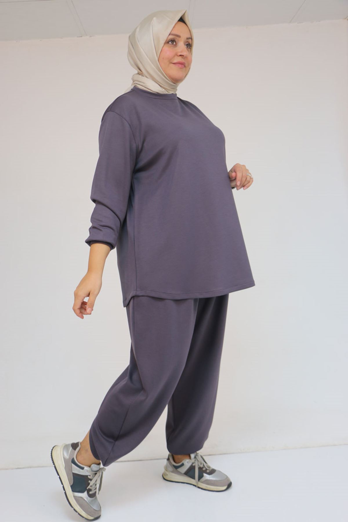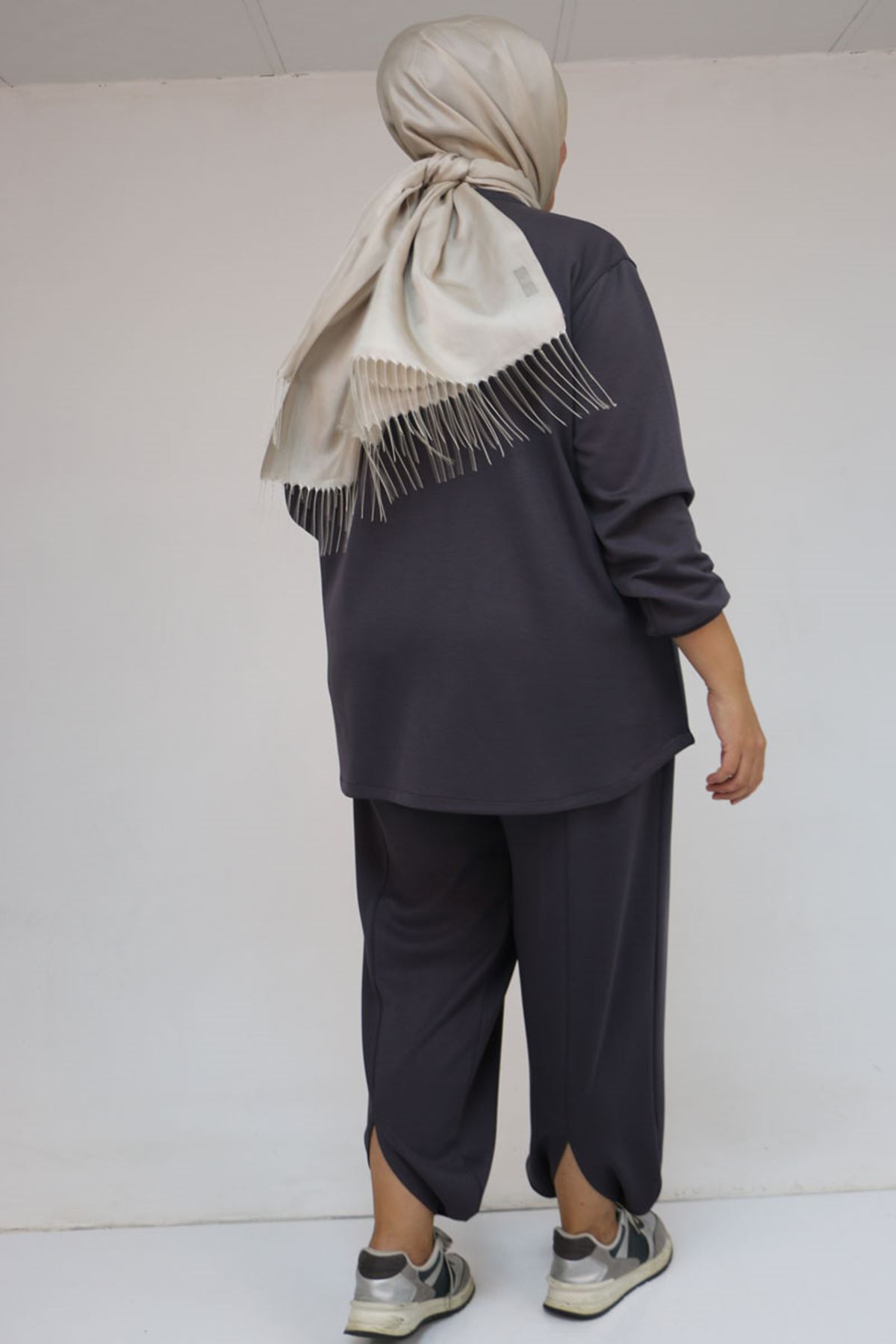 57058 Büyük Beden Pantolonlu Modal İkili Takım - Antrasit