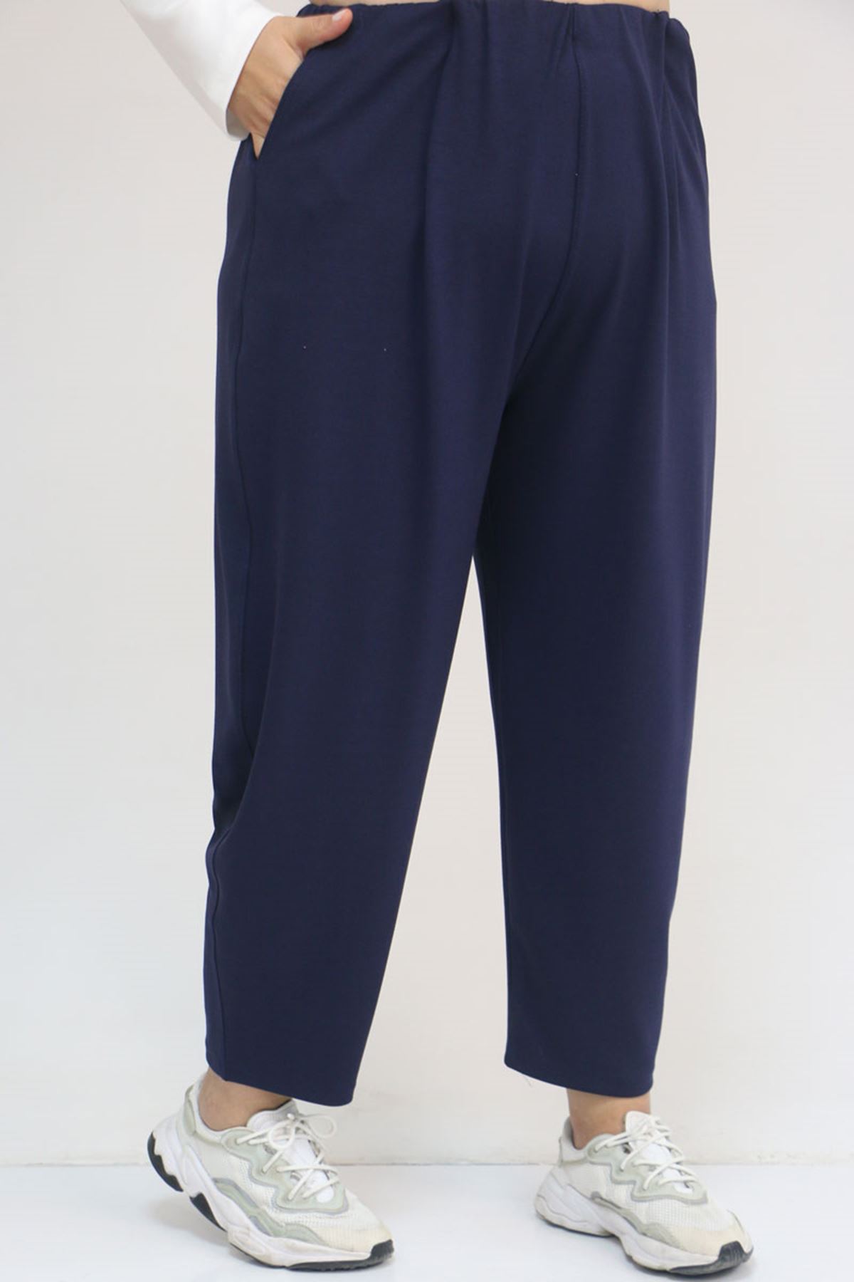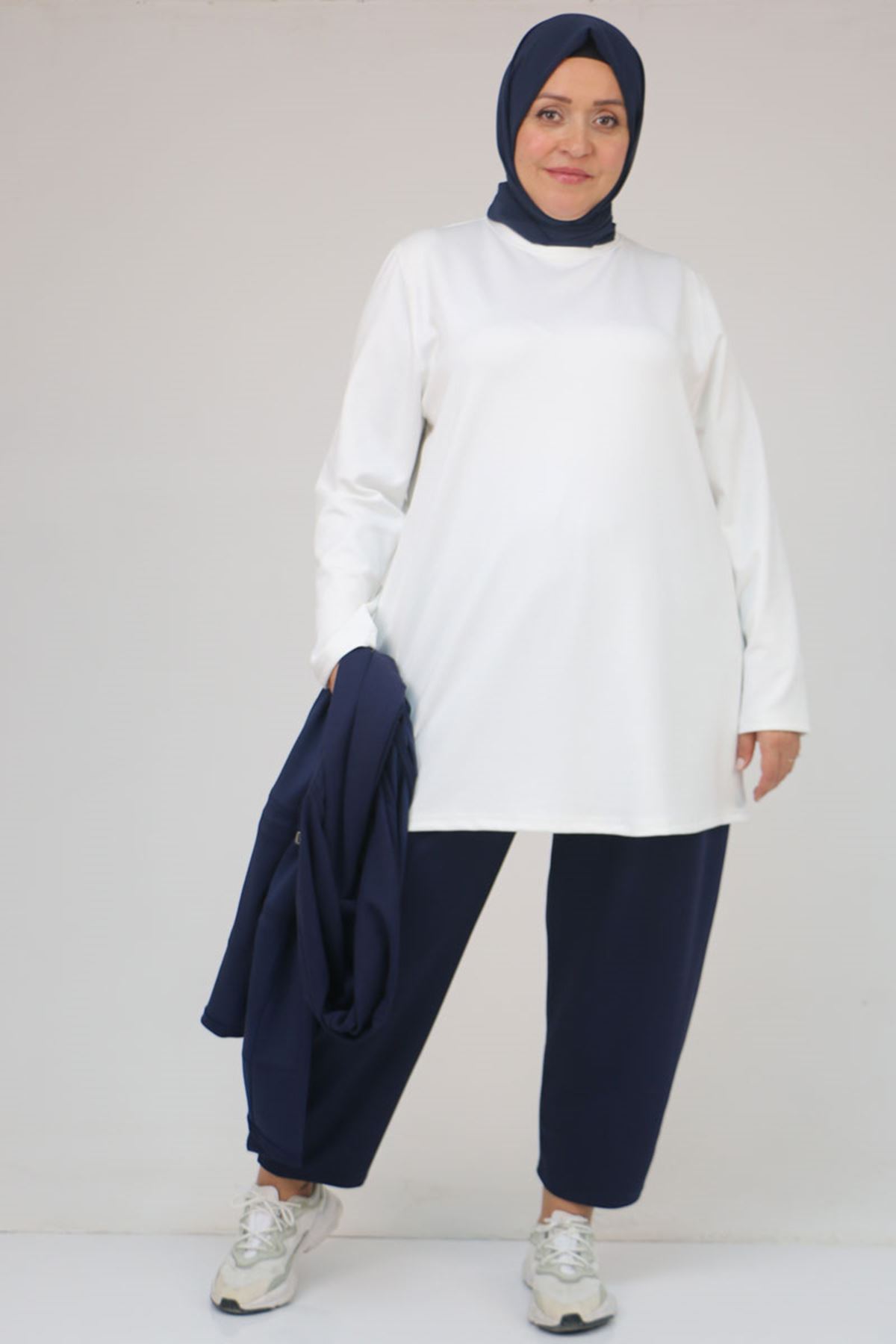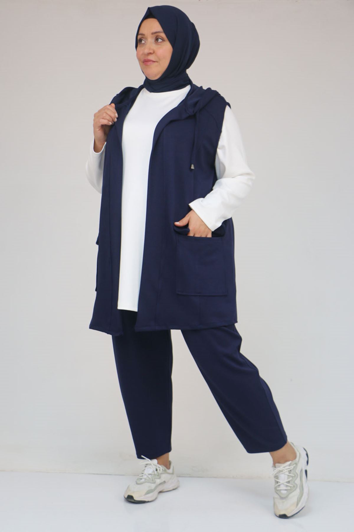 57305 Büyük Beden Modal Yeleği Cepli Üçlü Takım - İndigo