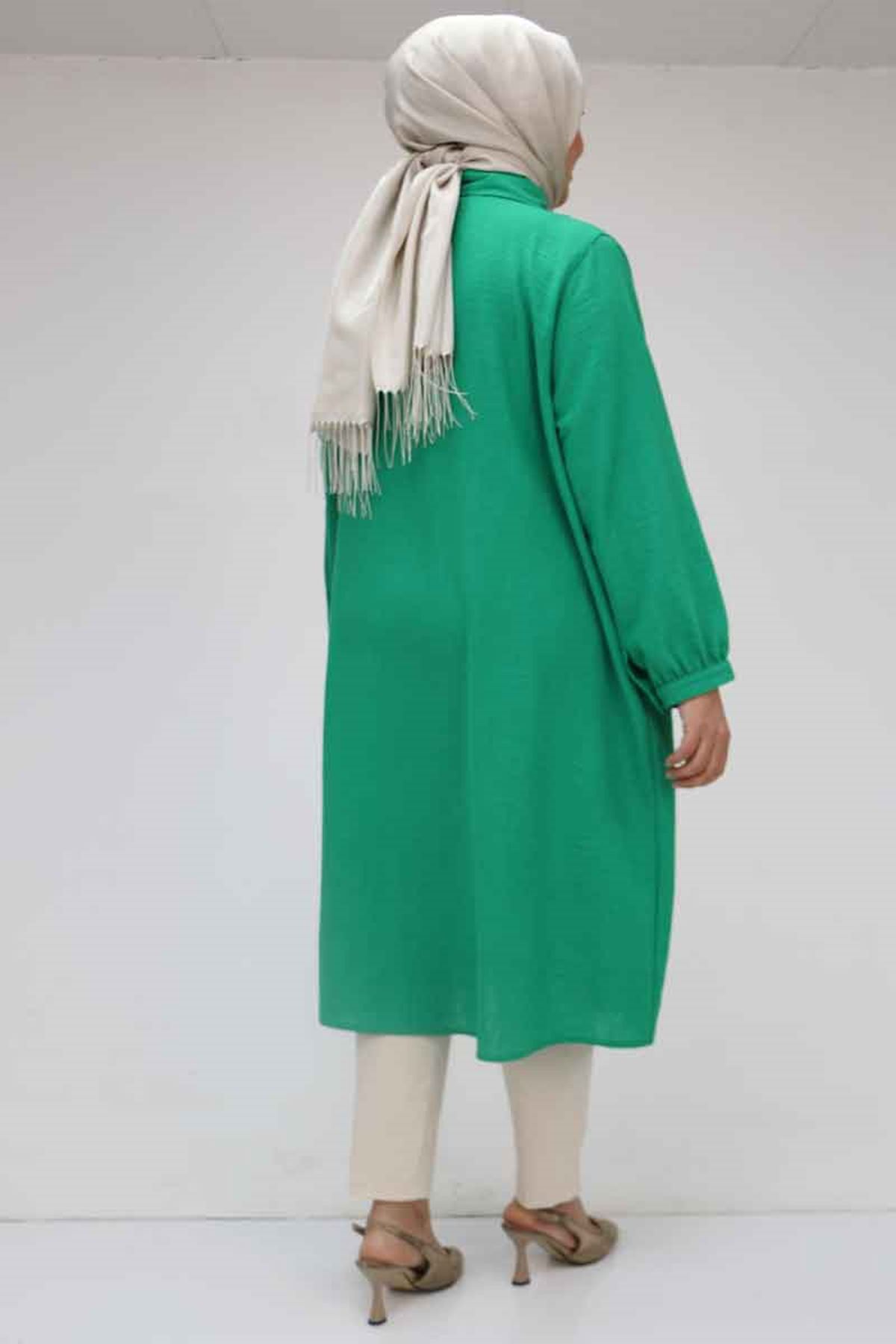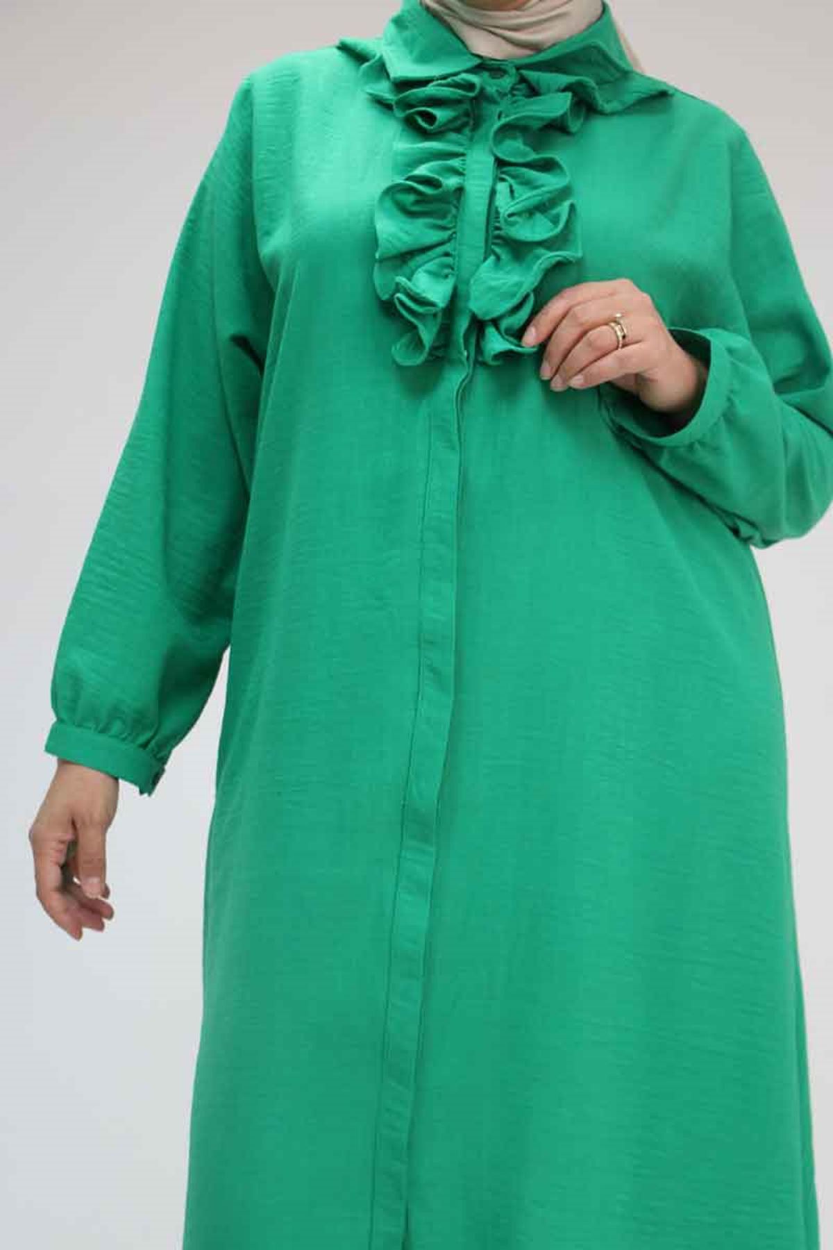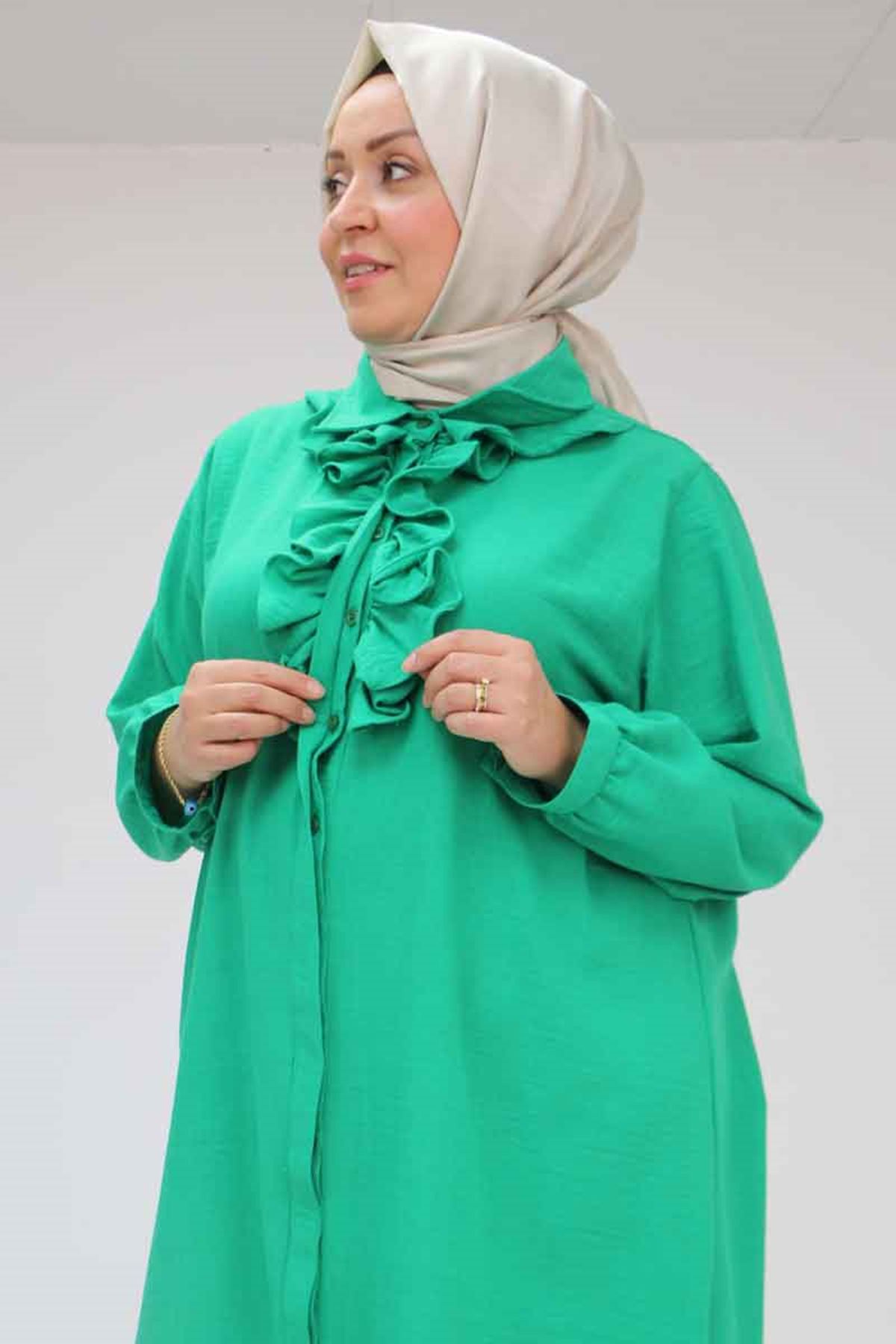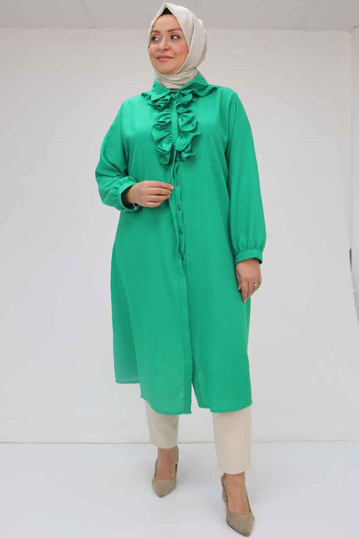 F-58029 Büyük Beden Önü Fırfırlı Düğmeli Keten Gömlek - Beneton