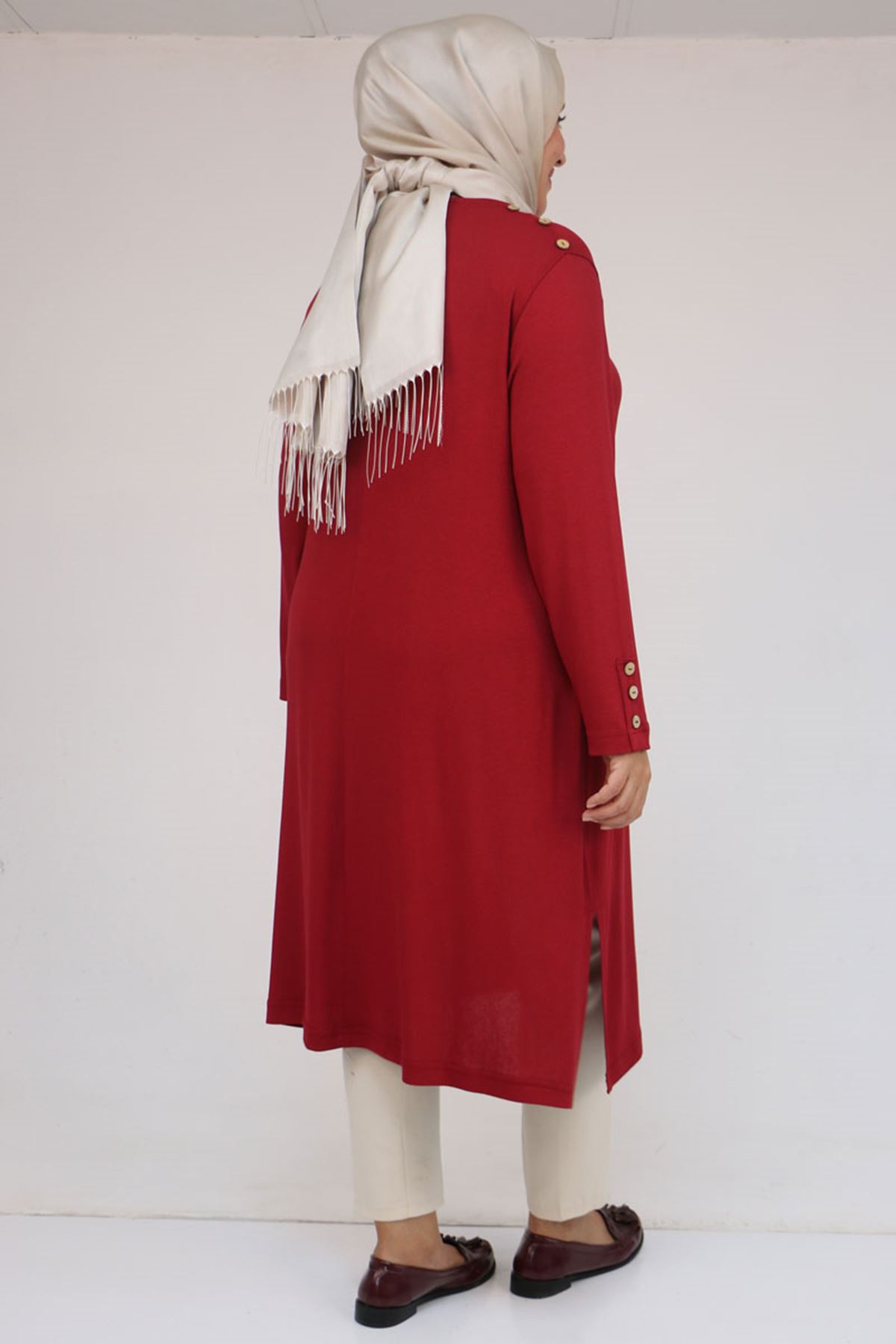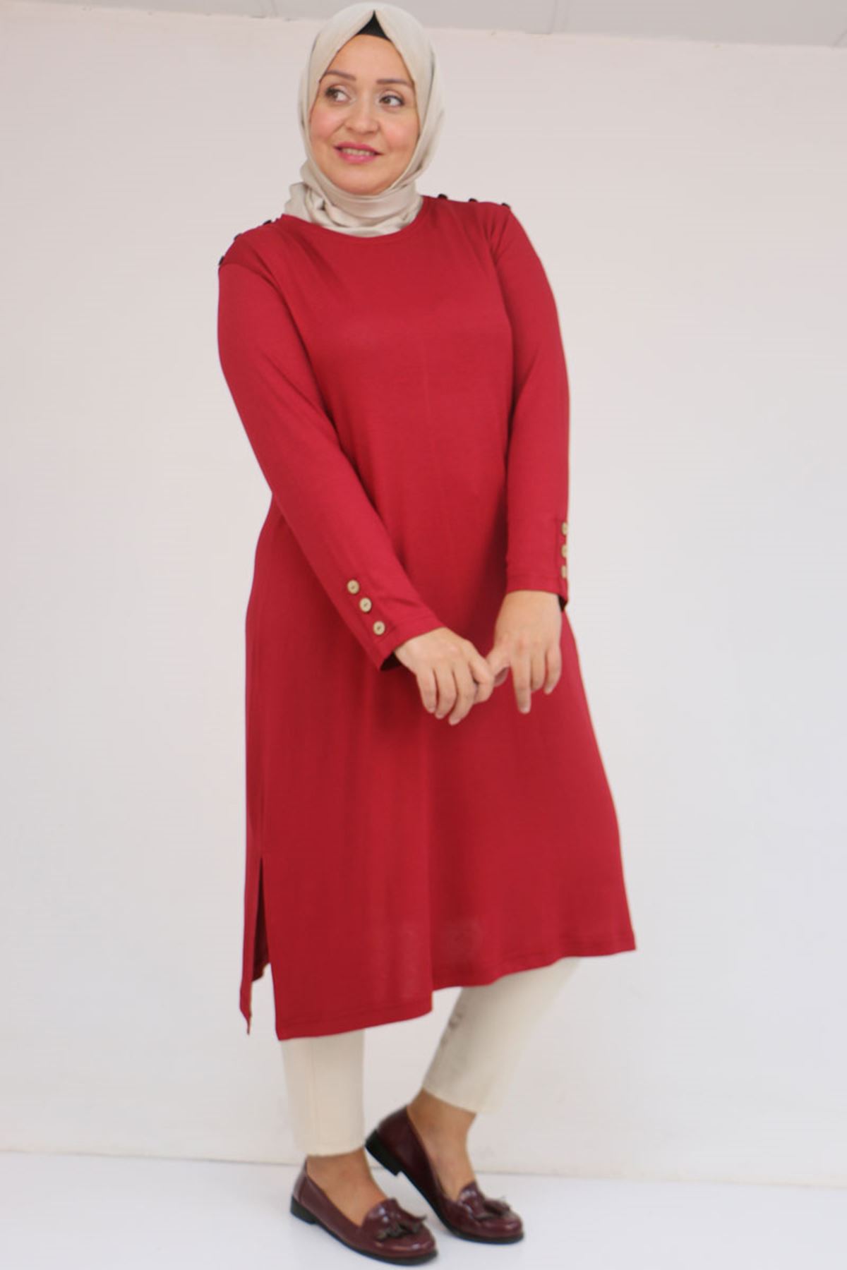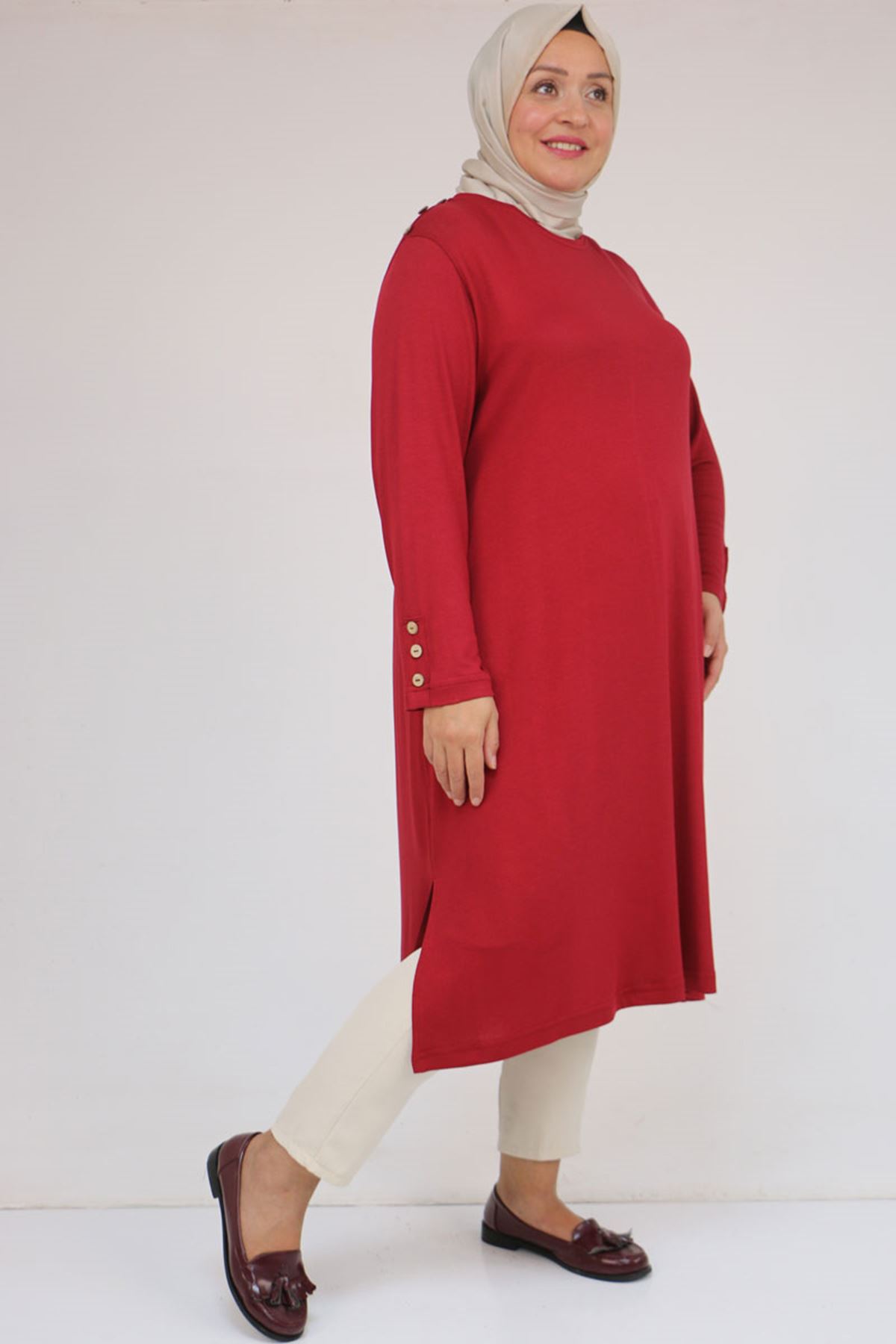 58116 Büyük Beden Kol Ve Omzu Düğme Detaylı Çilek Tunik - Bordo