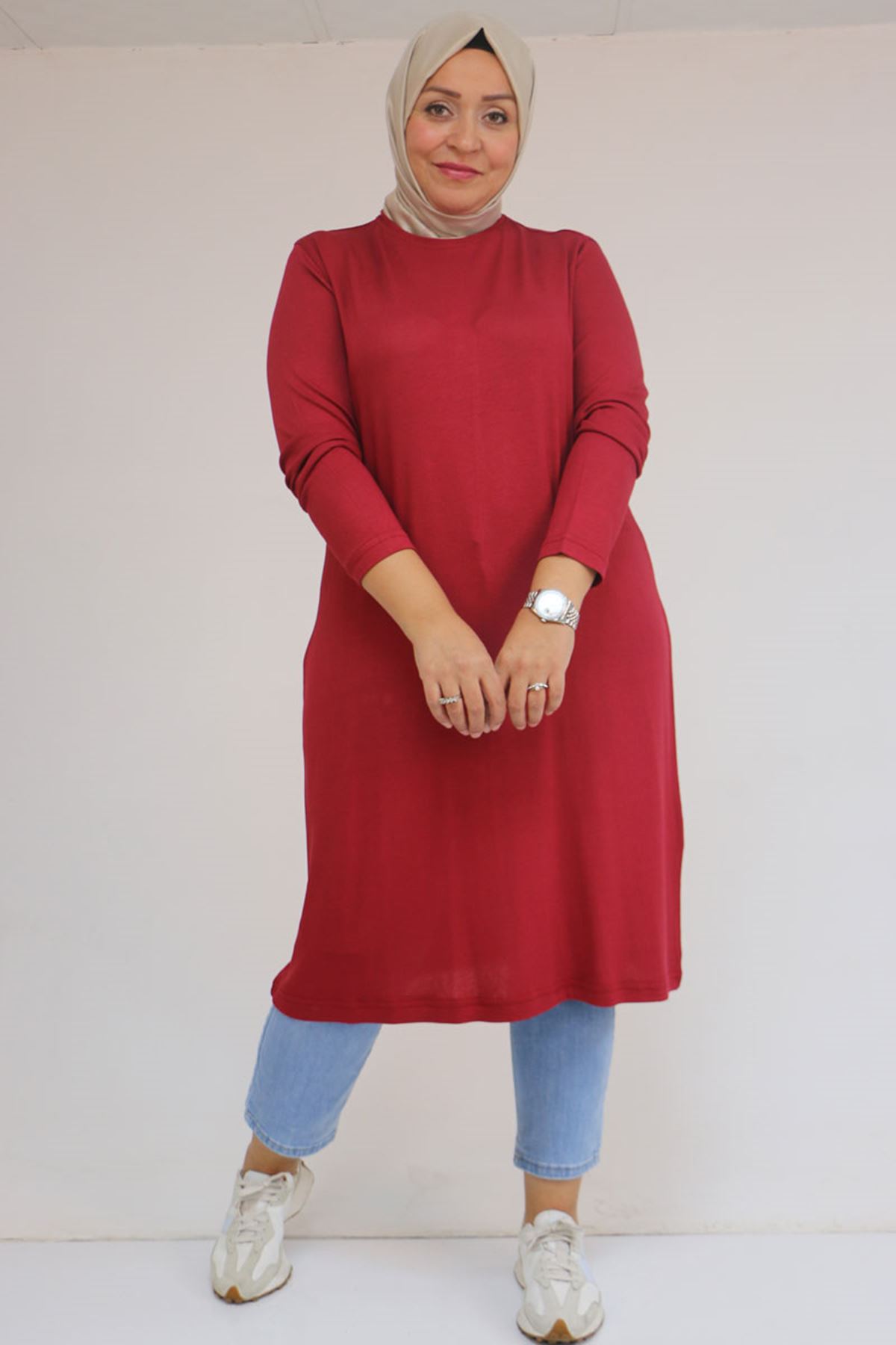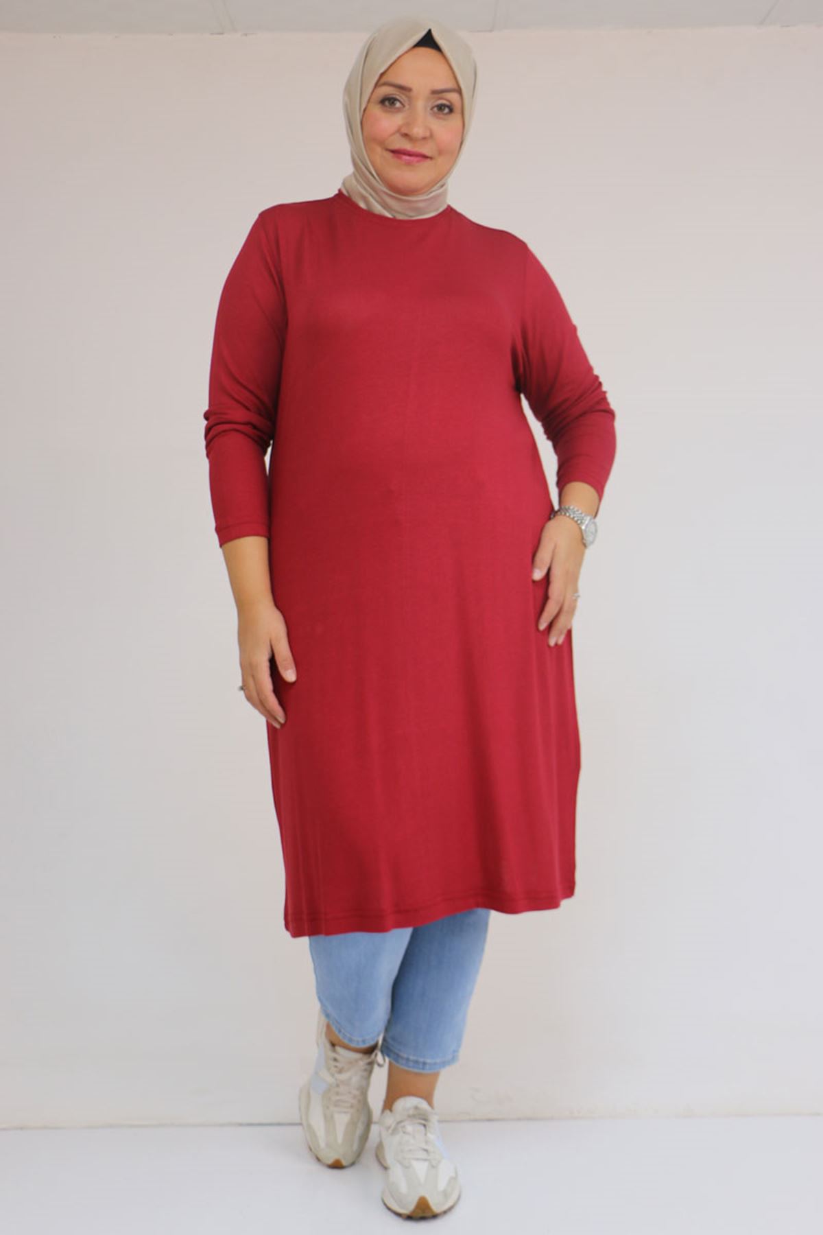 58122 Büyük Beden Basic Çilek Tunik - Bordo