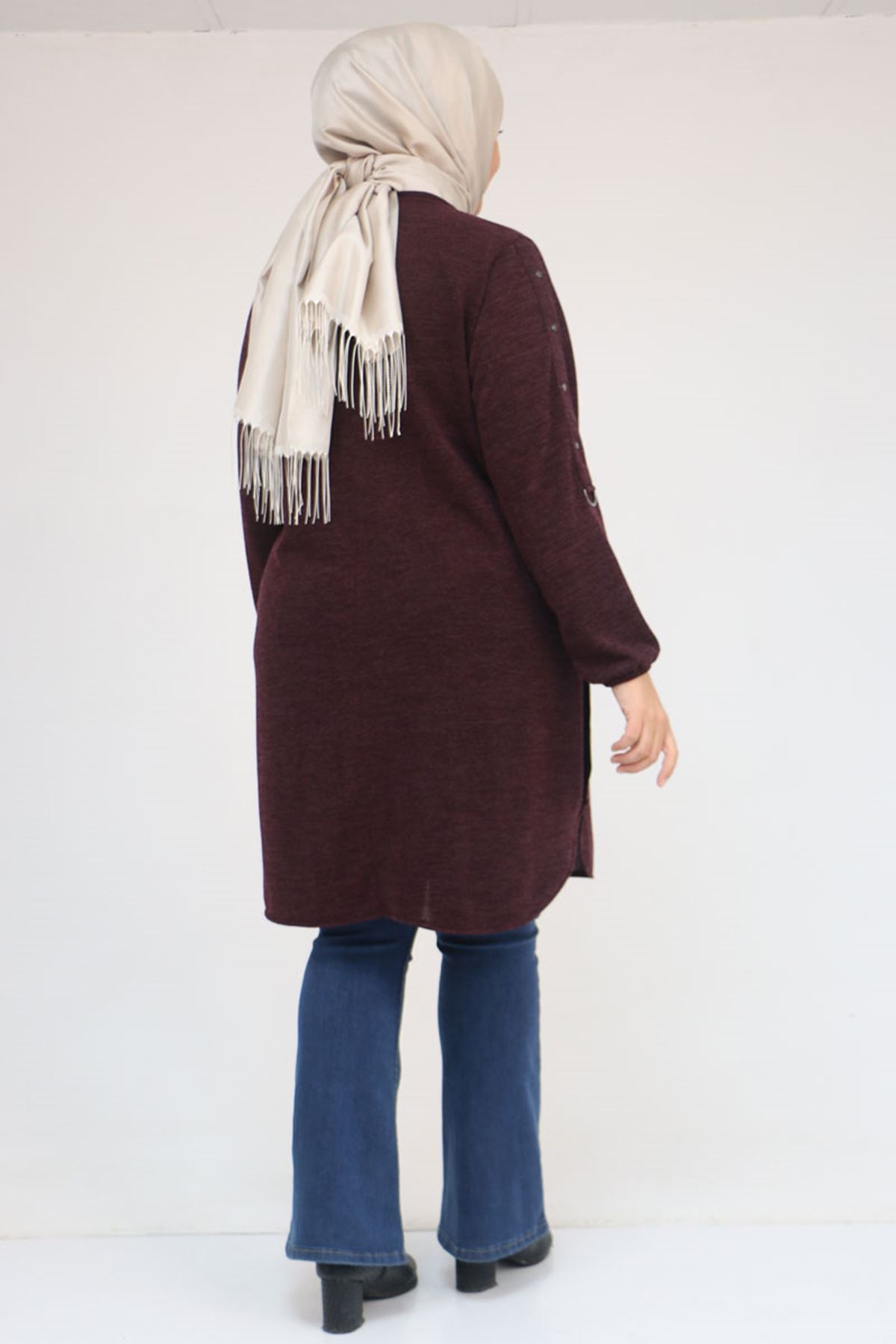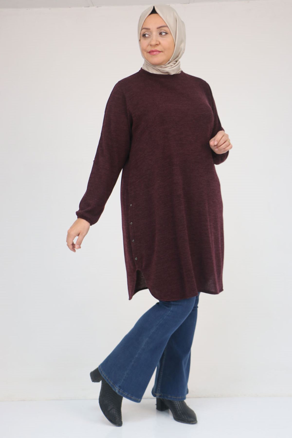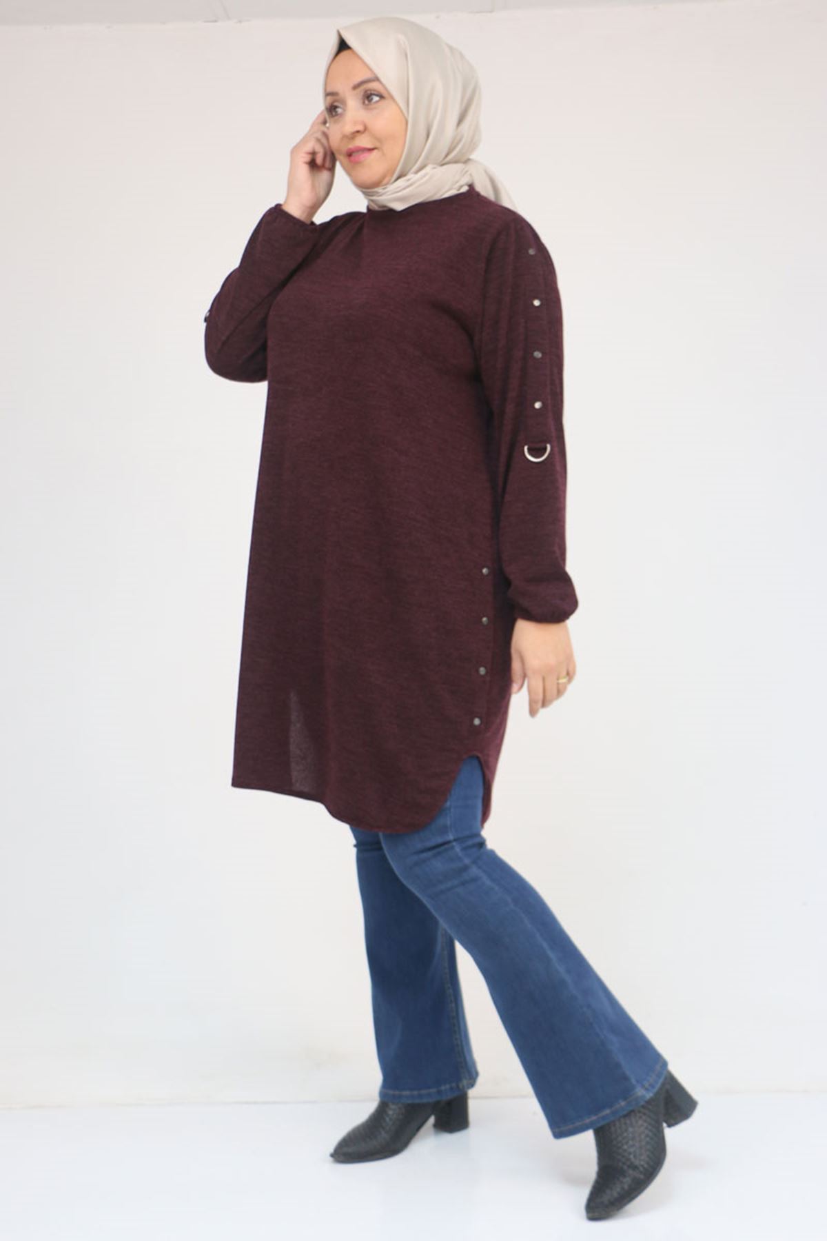 58131 Büyük Beden Kol Ve Etek Uçları Perçinli Mir Tunik - Mürdüm