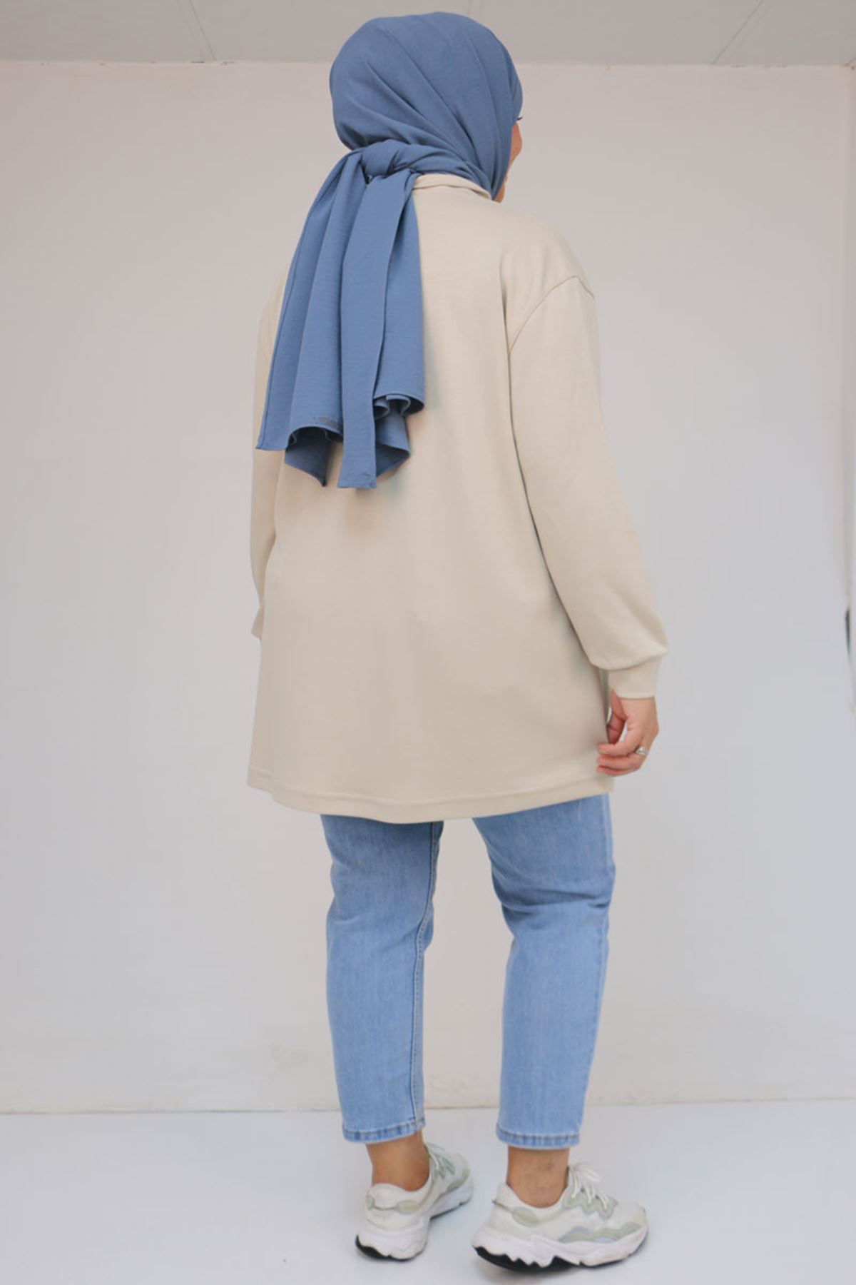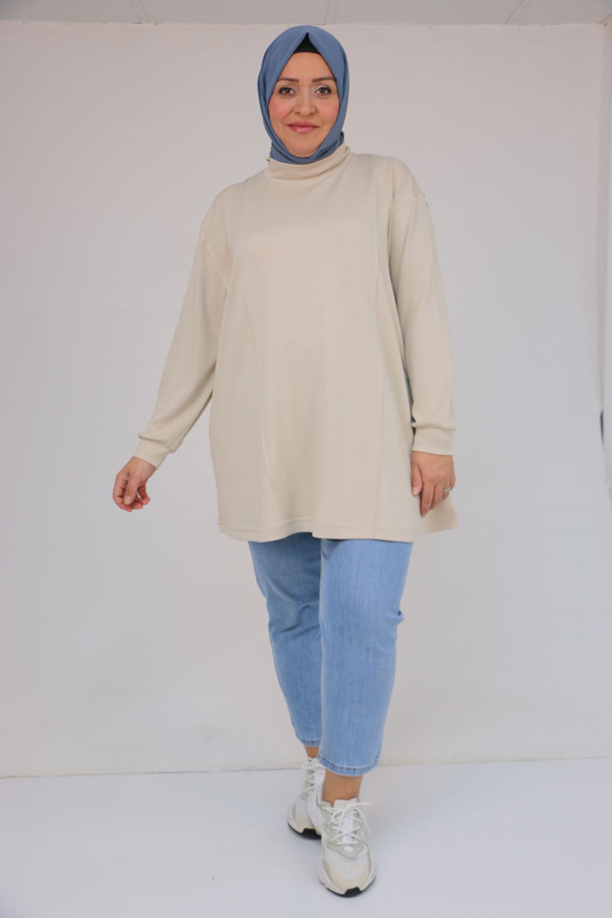 58134 Büyük Beden Boğazlı Yaka Modal Tunik - Bej