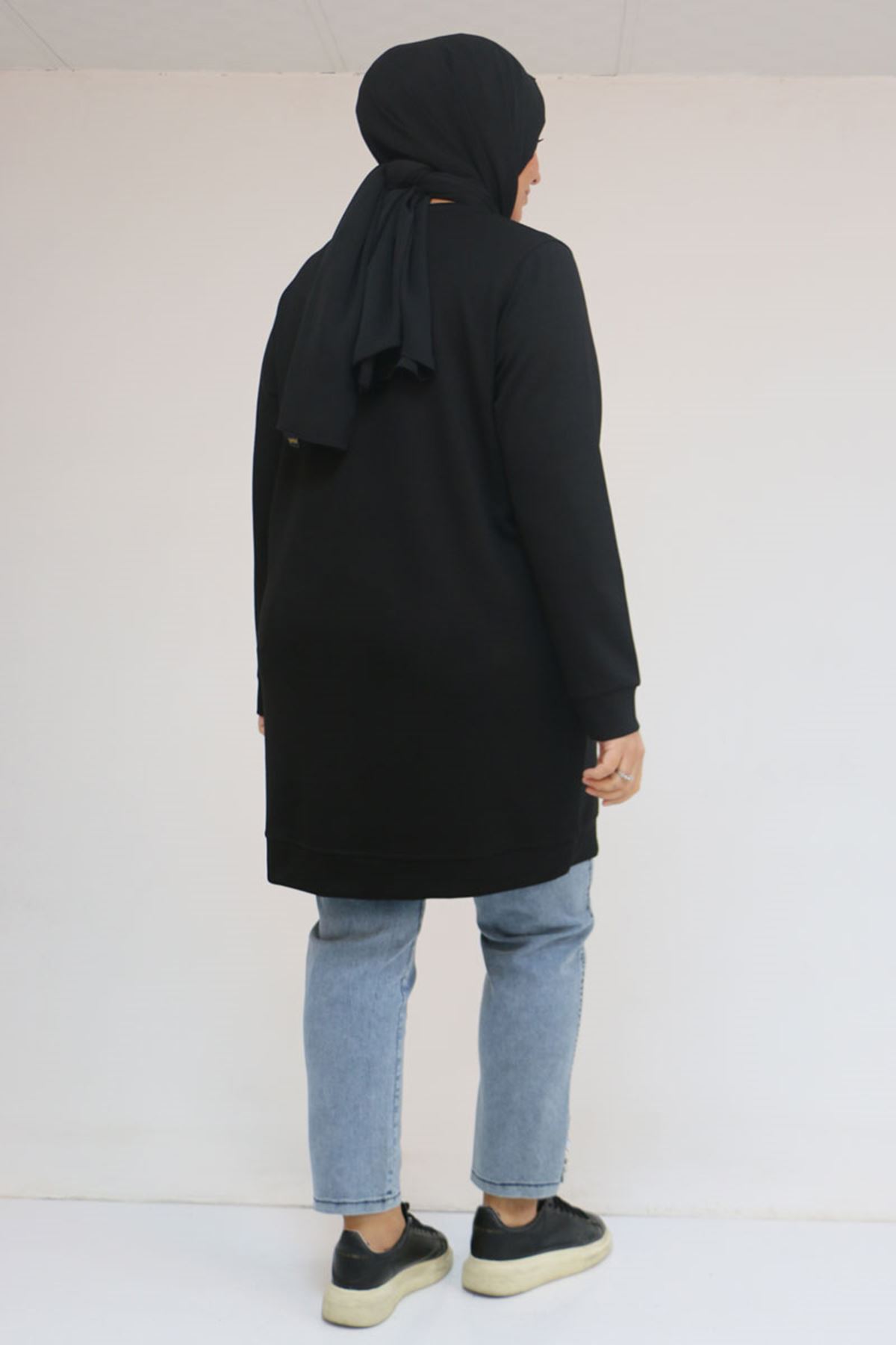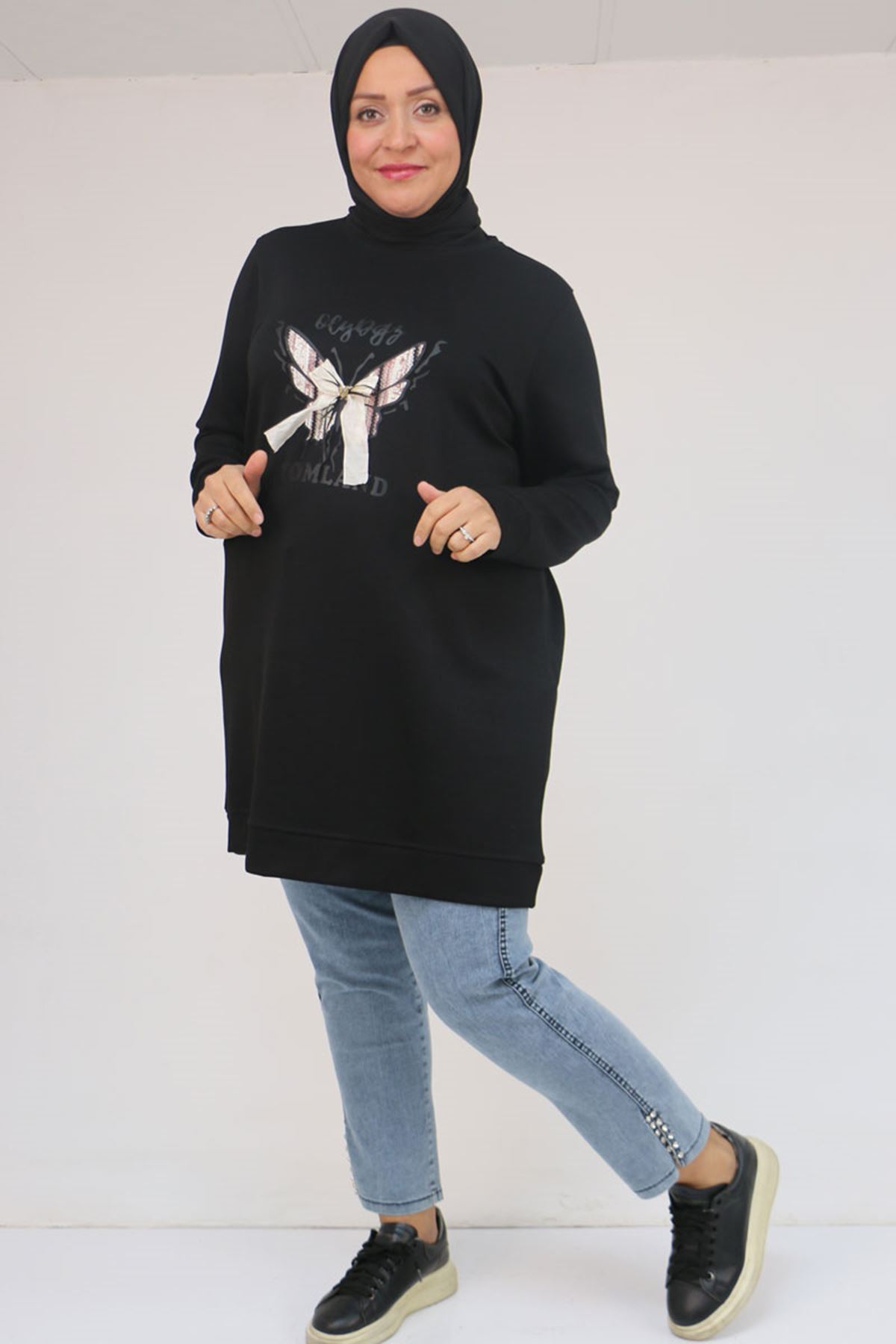 58145 Büyük Beden Kelebek Baskılı Modal Tunik - Siyah