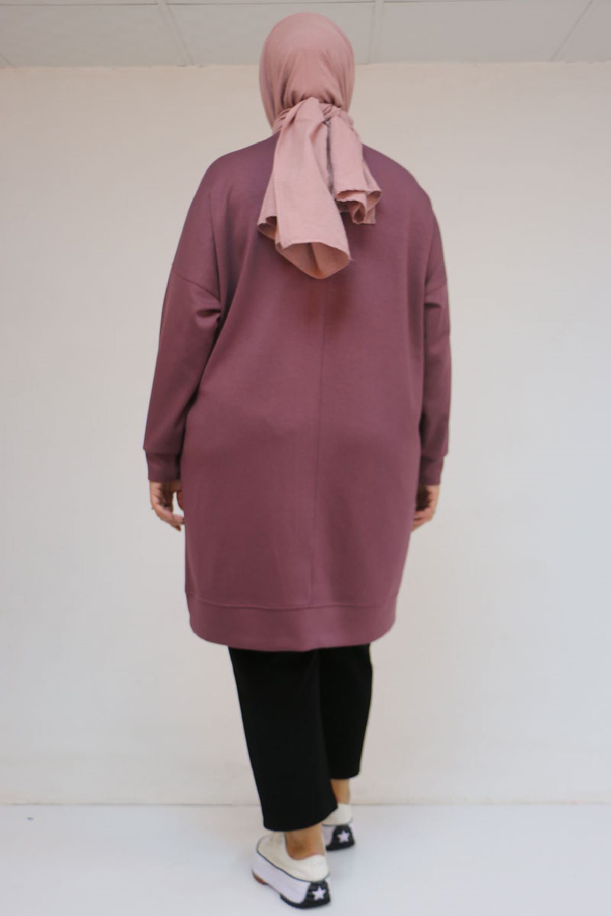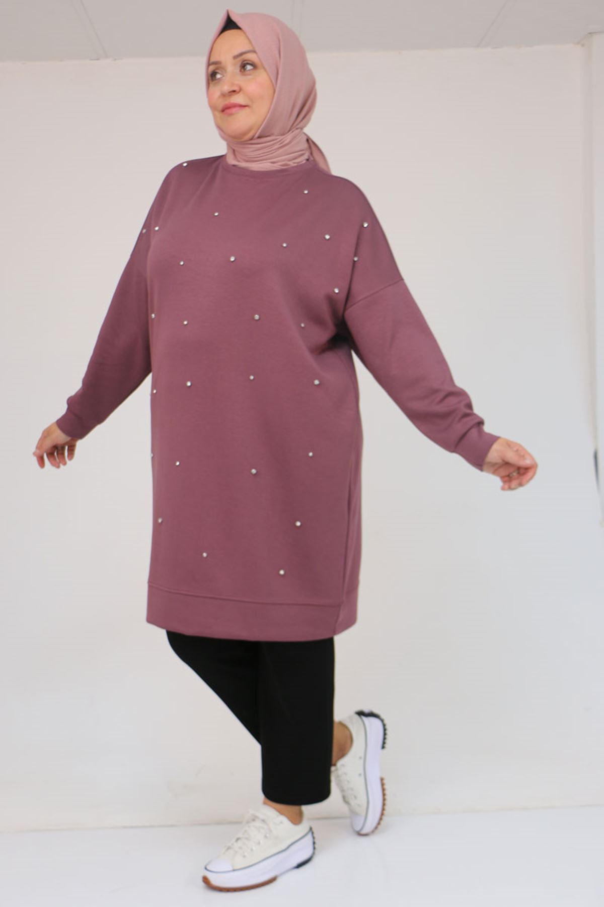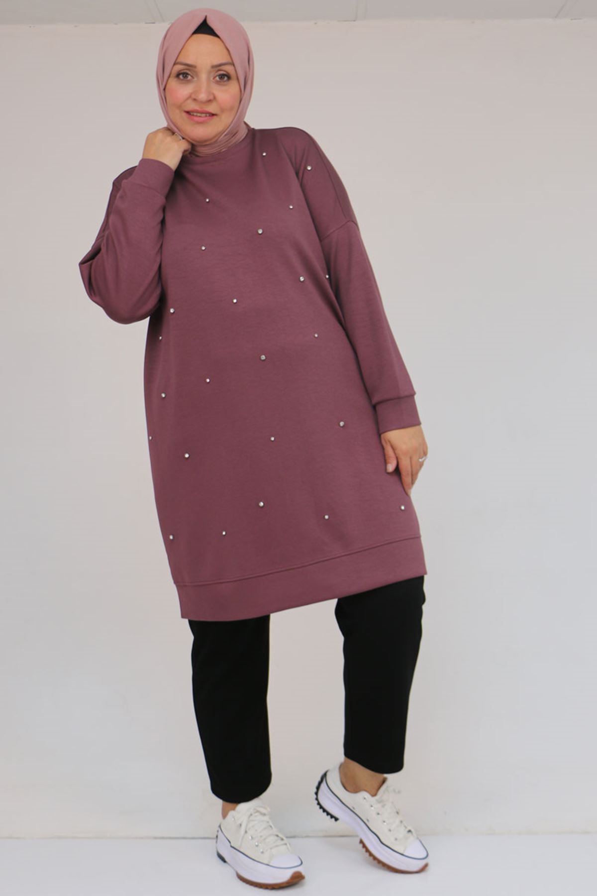 58157 Büyük Beden Beyoğlu Taş Çakmalı Modal Tunik - Gül Kurusu