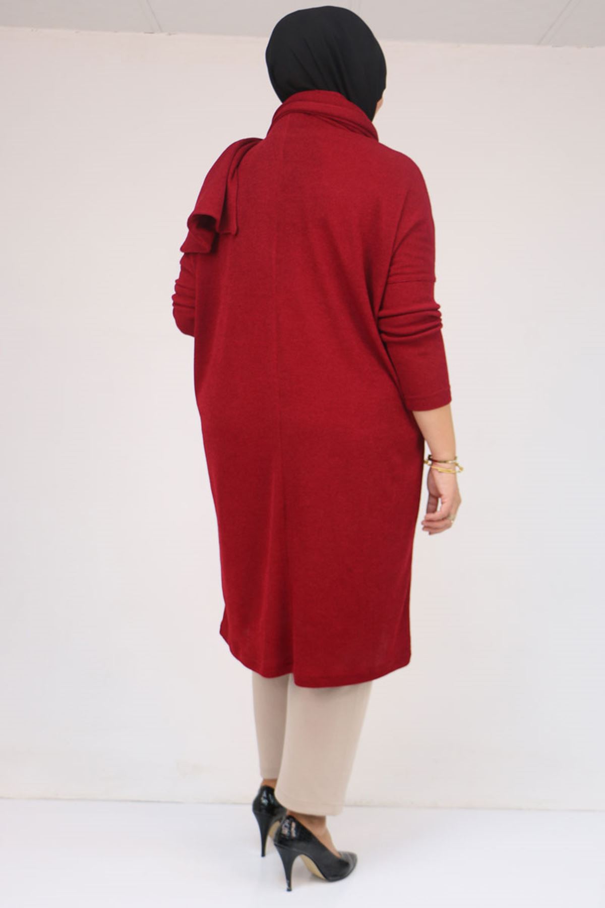 58158 Büyük Beden Atkı Modelli Mir Tunik - Bordo