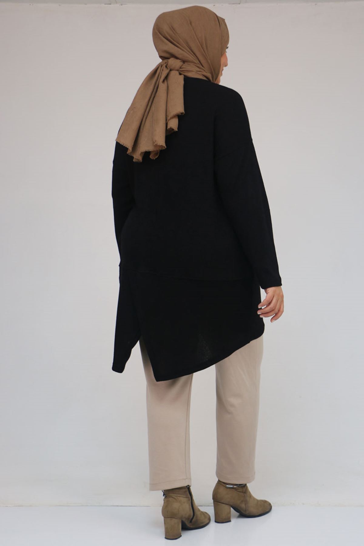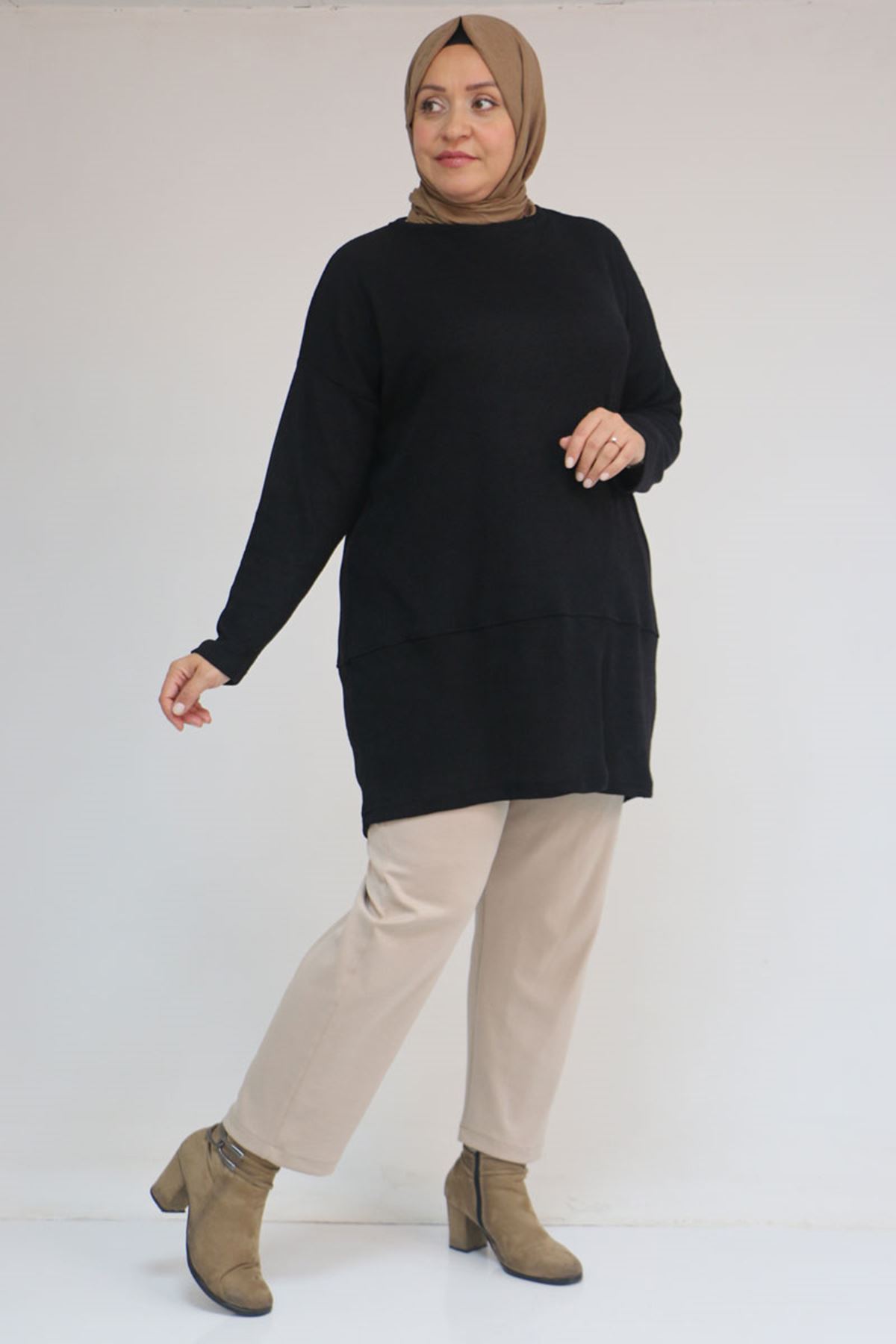 58166 Büyük Beden Makas Mir Tunik - Siyah
