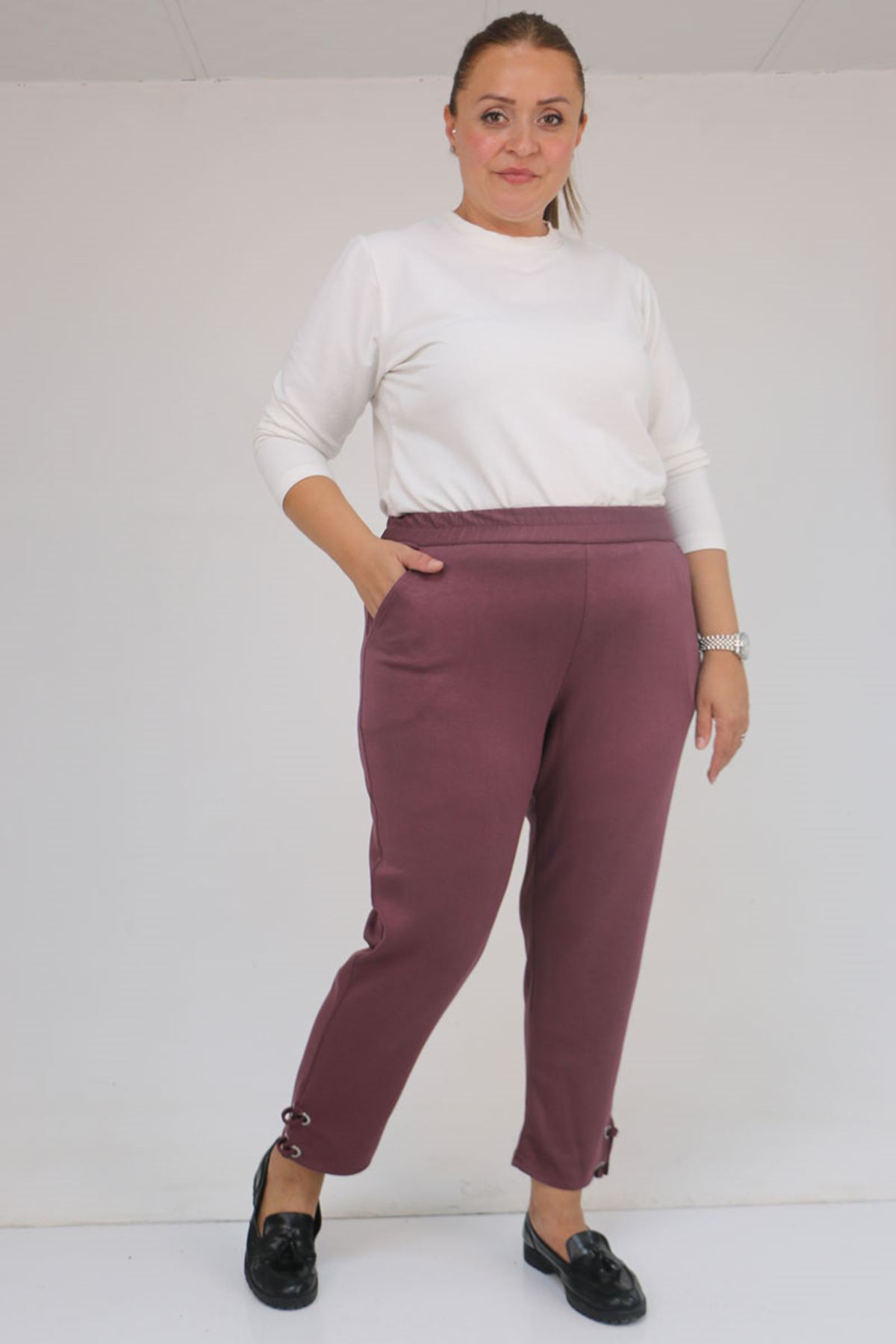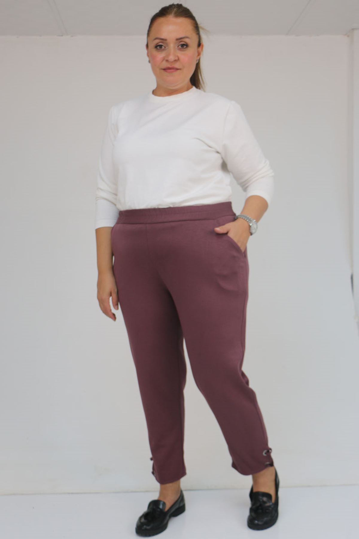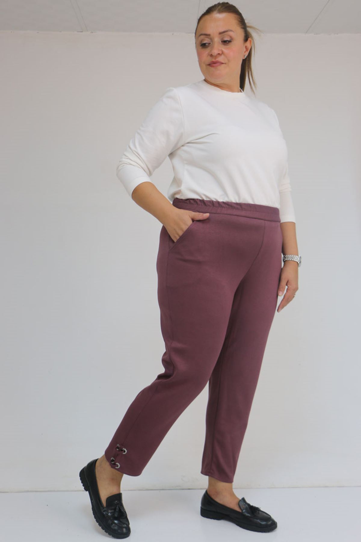 59012 Büyük Beden Paçasında Kuş Gözü Detaylı Modal Pantolon - Gül Kurusu