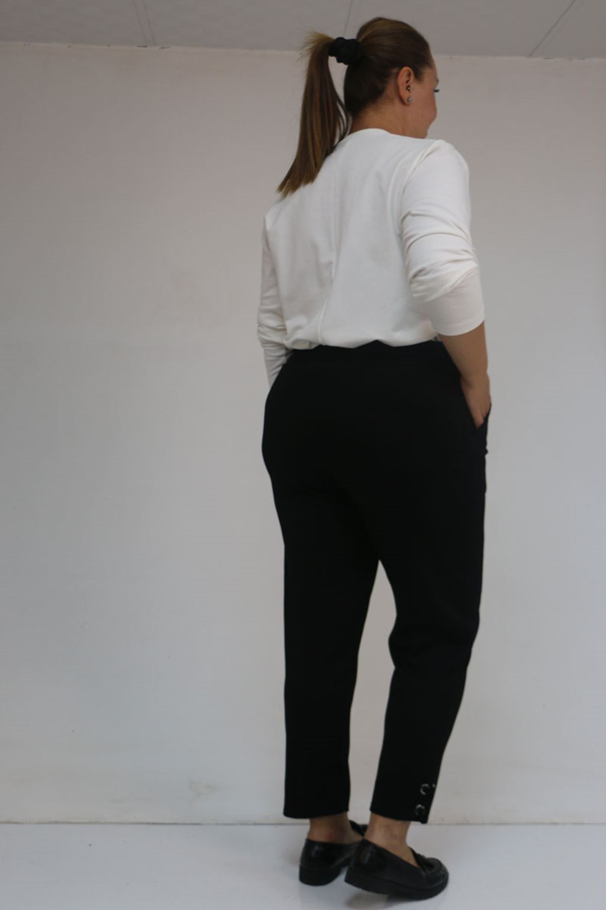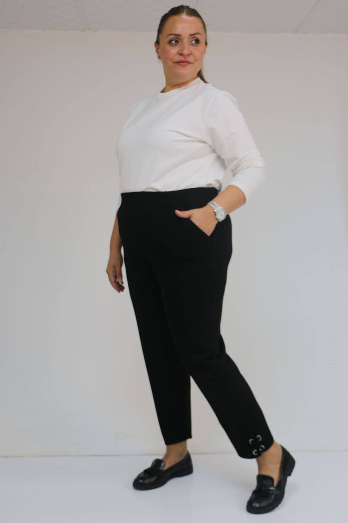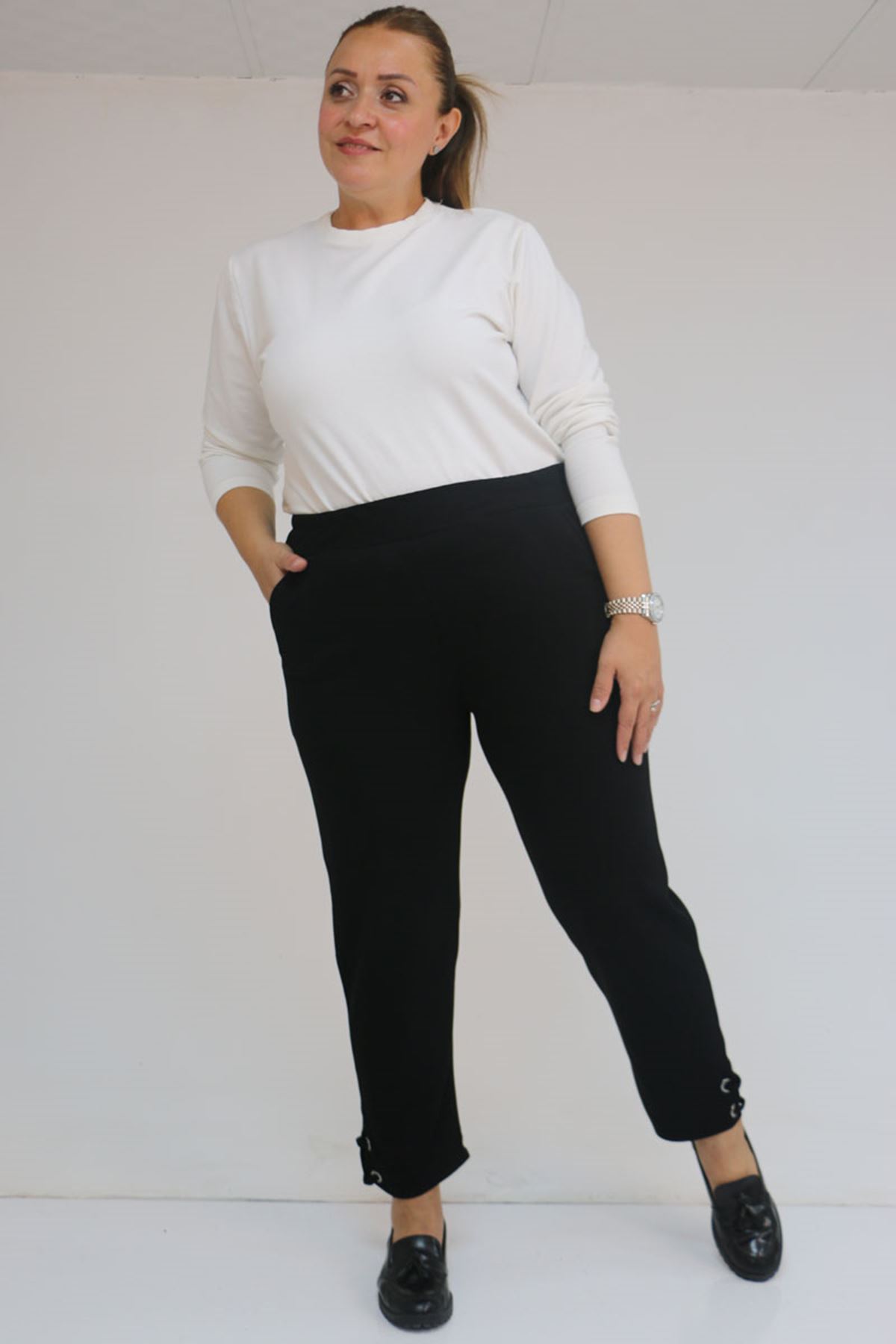 59012 Büyük Beden Paçasında Kuş Gözü Detaylı Modal Pantolon - Siyah