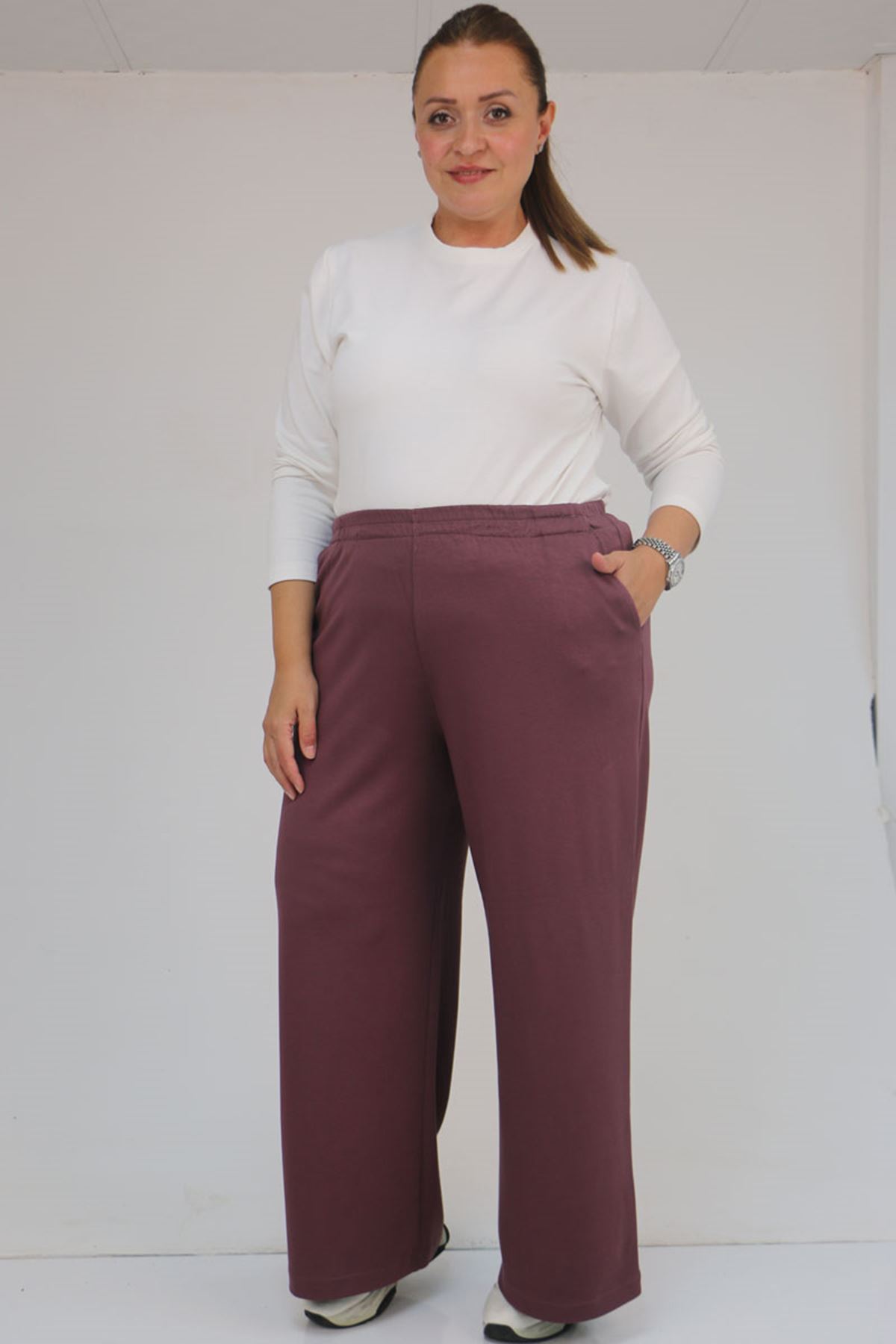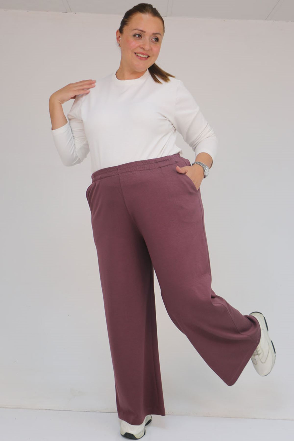 59026 Büyük Beden Beli Lastikli Modal Pantolon - Gül Kurusu