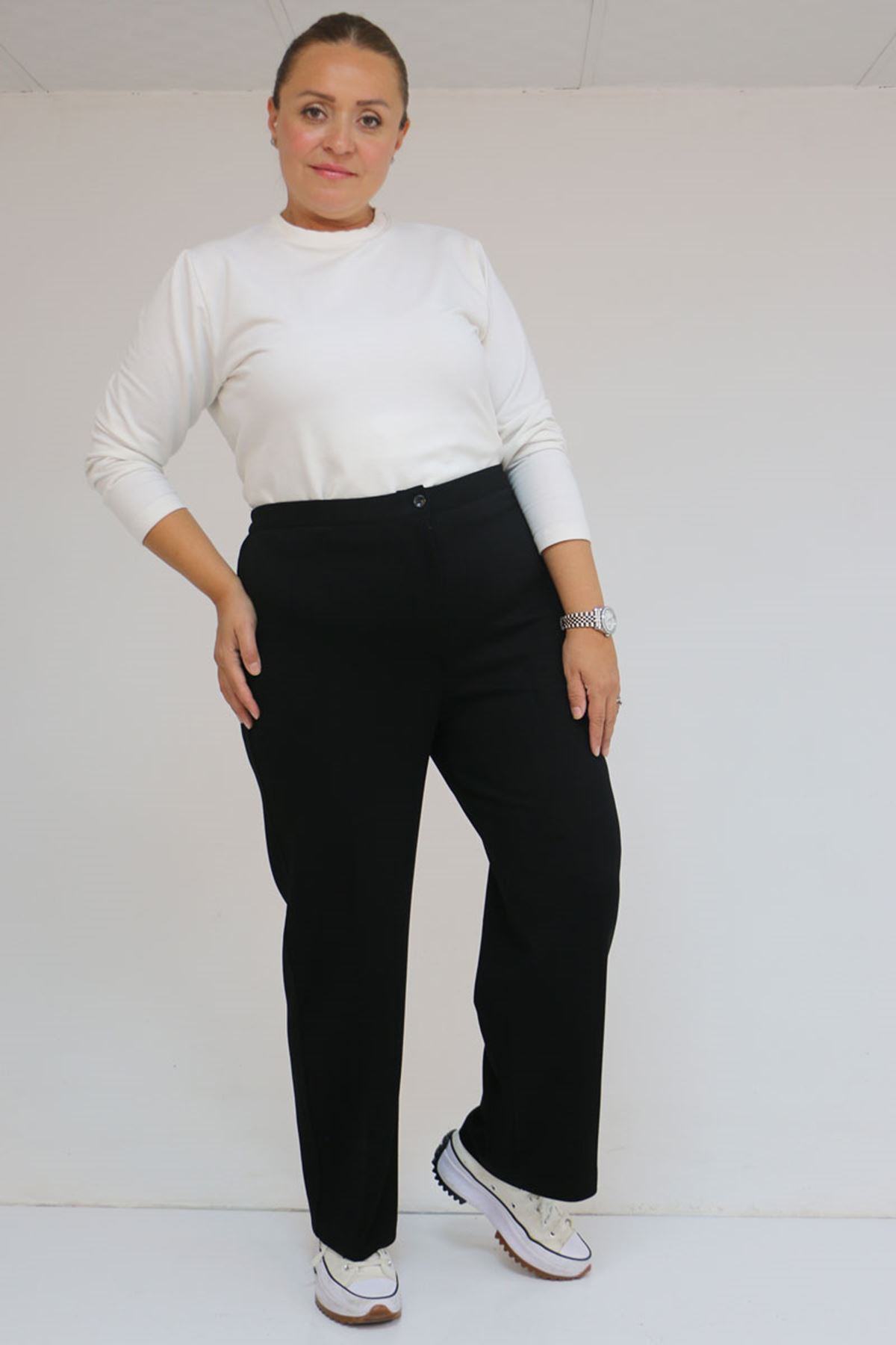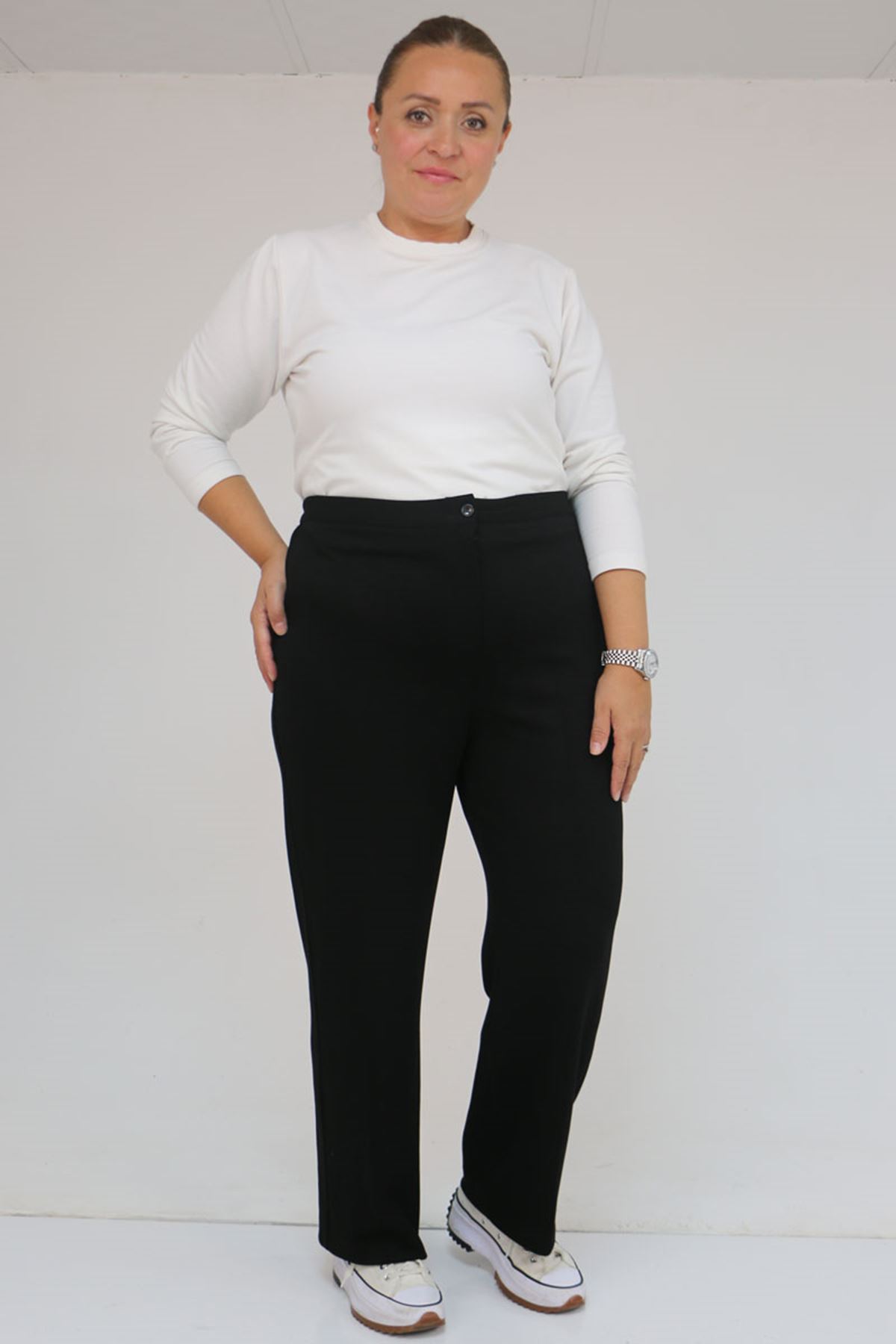 59030 Büyük Beden Düğmeli Fermuarlı Modal Pantolon - Siyah