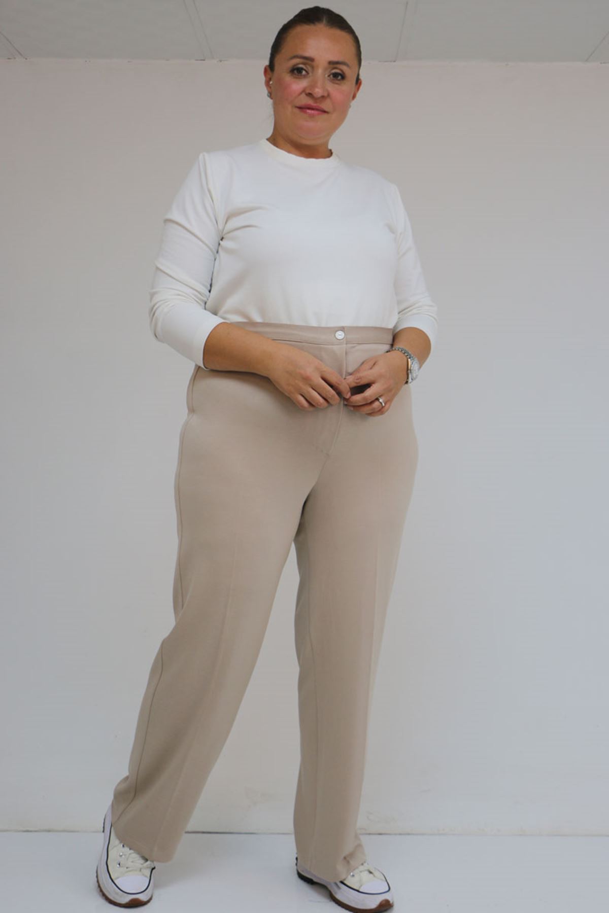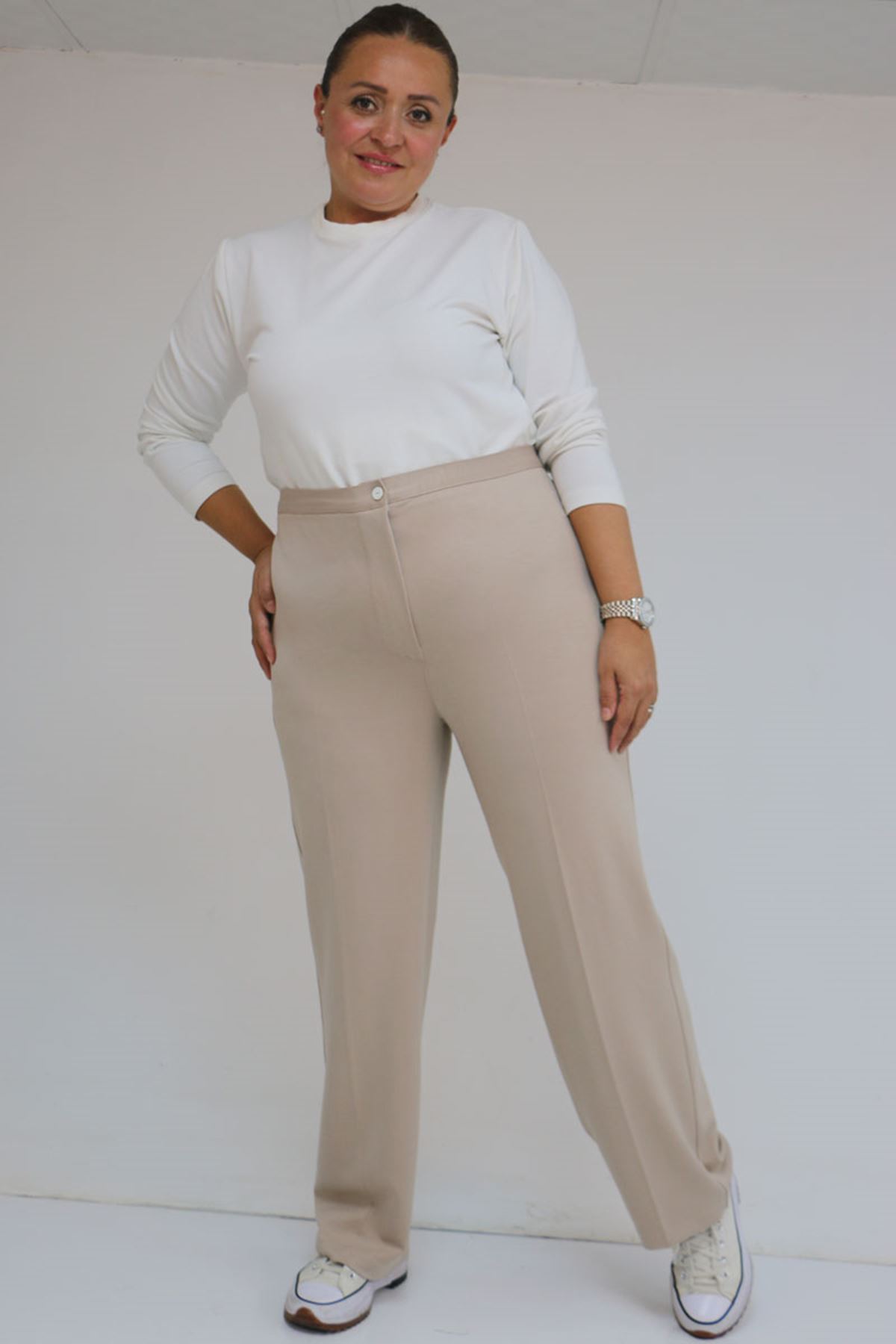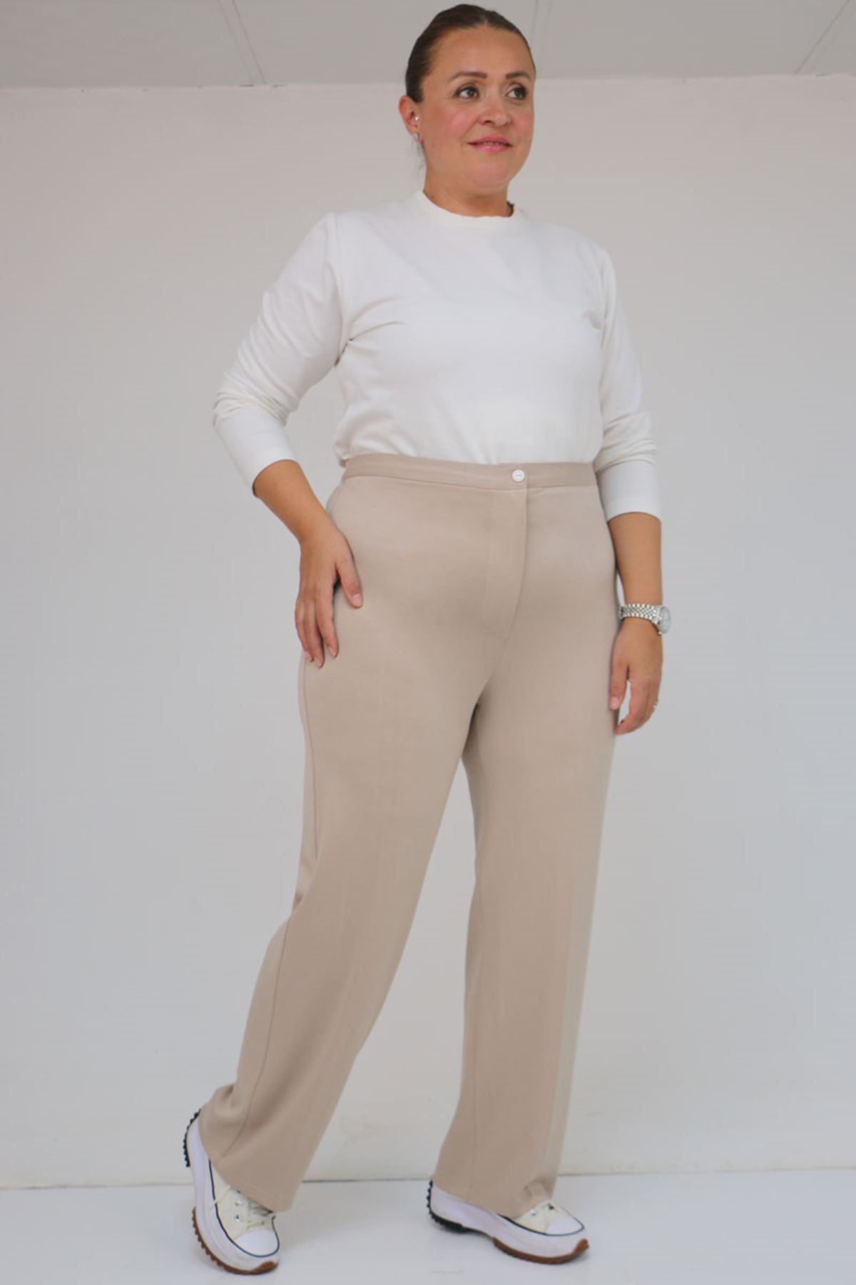 59030 Büyük Beden Düğmeli Fermuarlı Modal Pantolon - Vizon