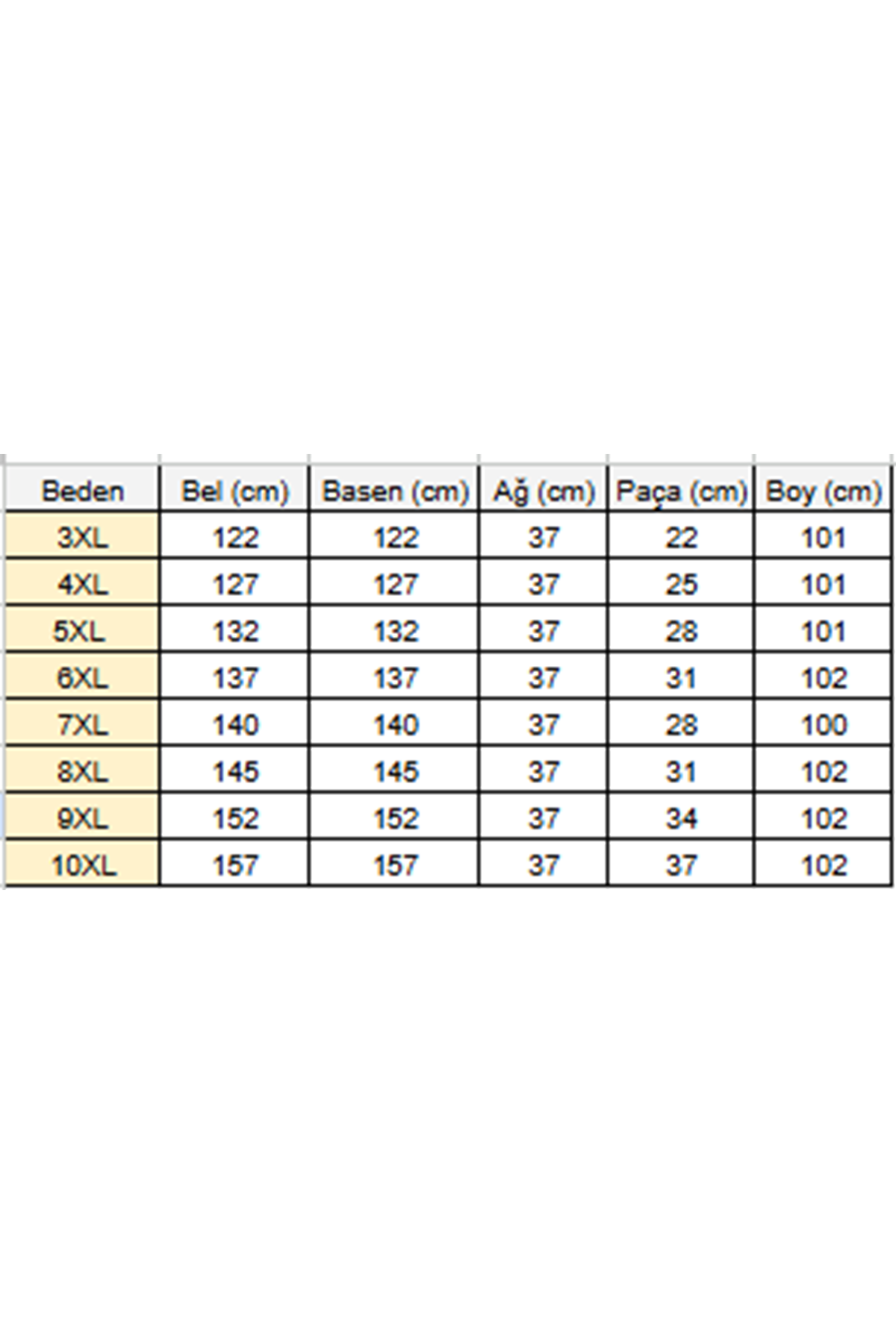 BEL GENİŞLİĞİ :88 cm GÖĞÜS GENİŞLİĞİ :103 cm BASEN :118 cm